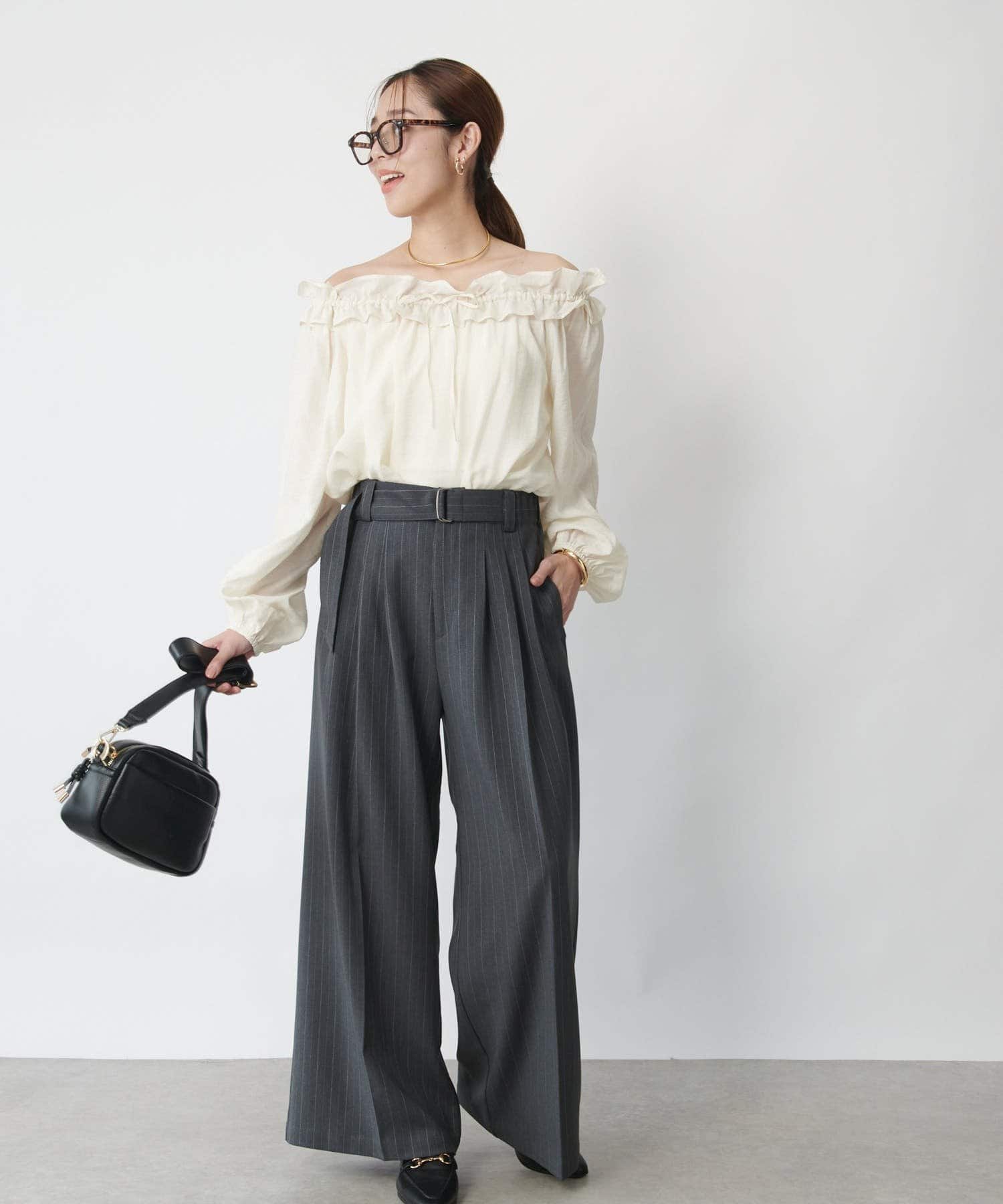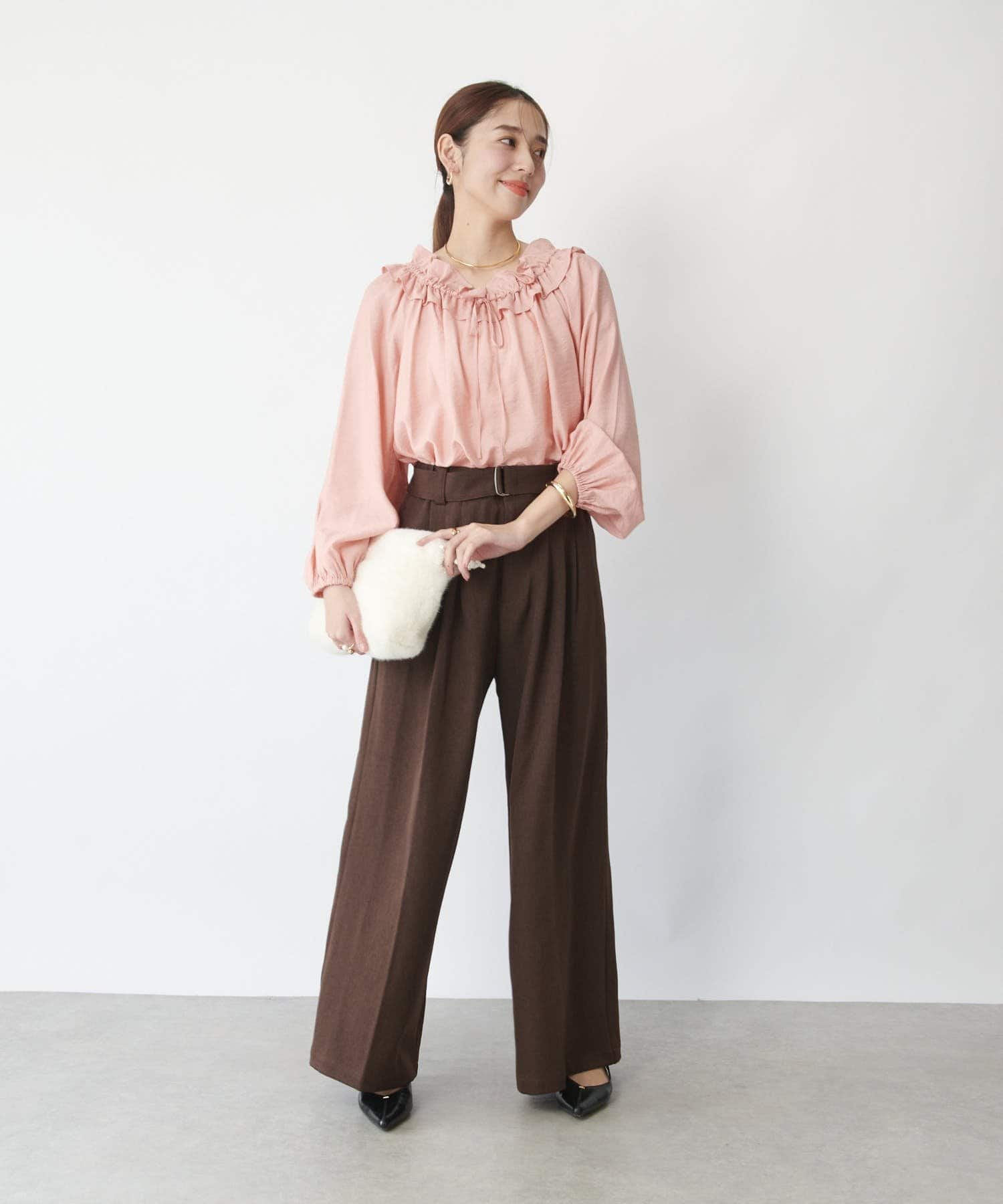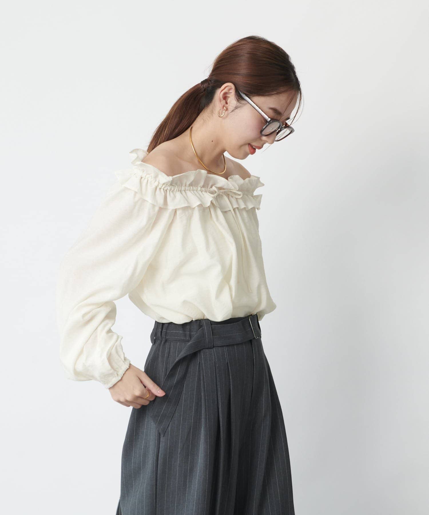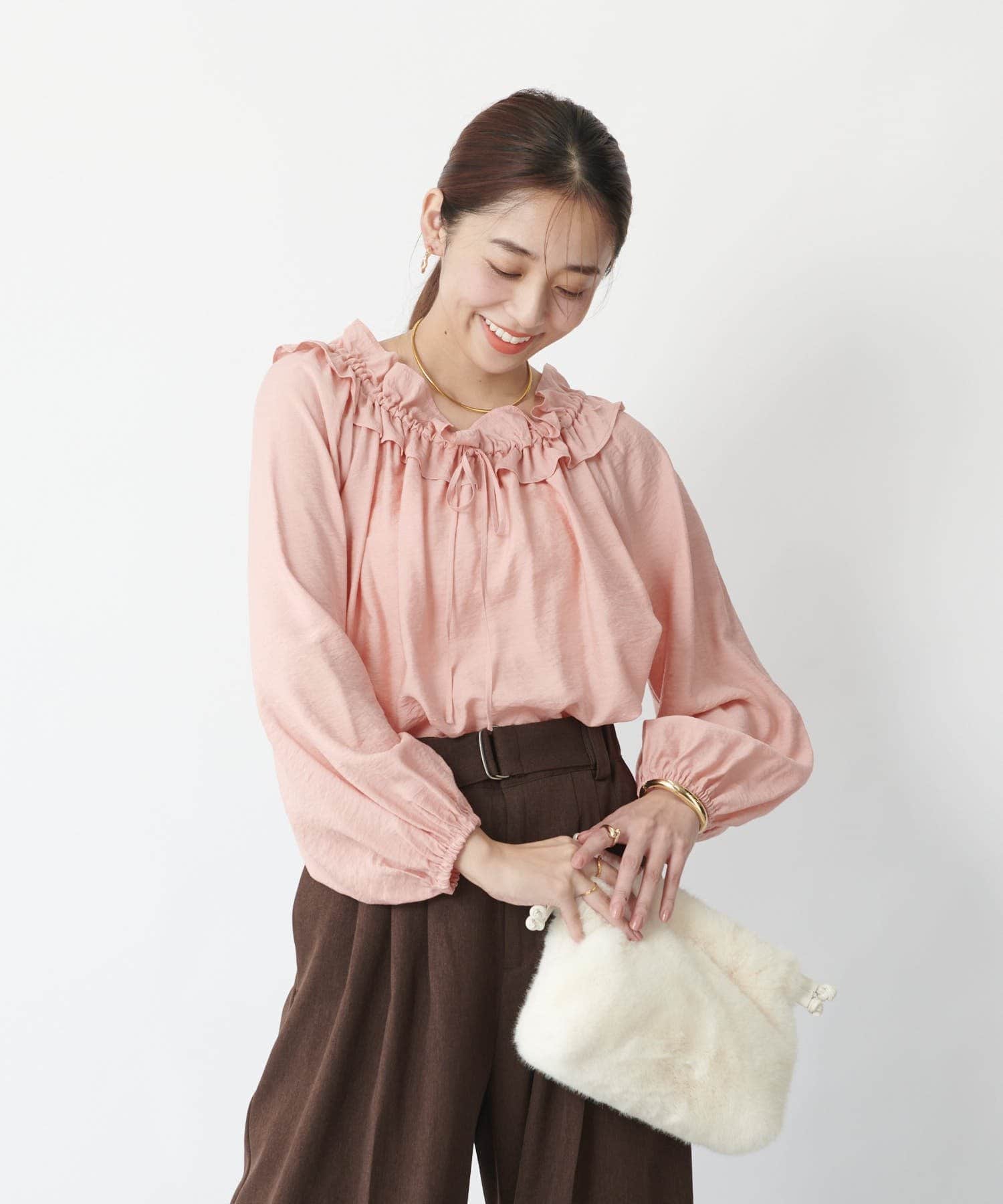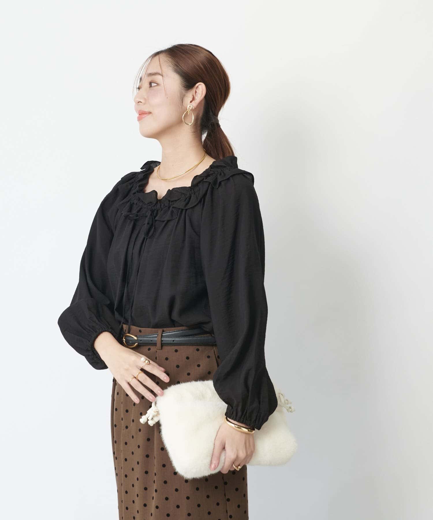 ・ネックラインを飾る繊細なフリルが顔まわりを華やかに、そして上品に見せてくれます◎