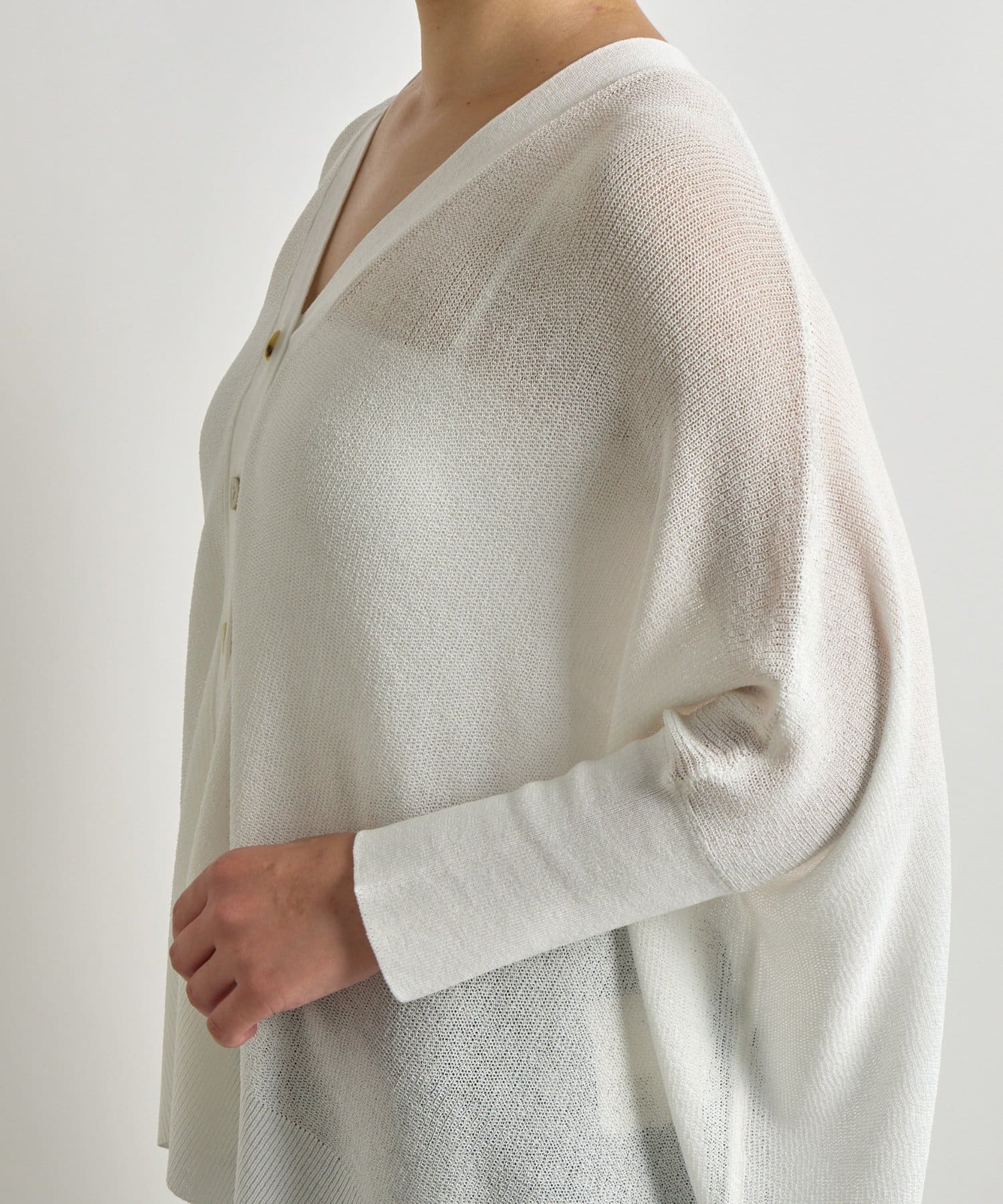 ・サラサラとした肌当たりの素材で仕立てられ、夏でも快適に着用いただけるカーディガン。