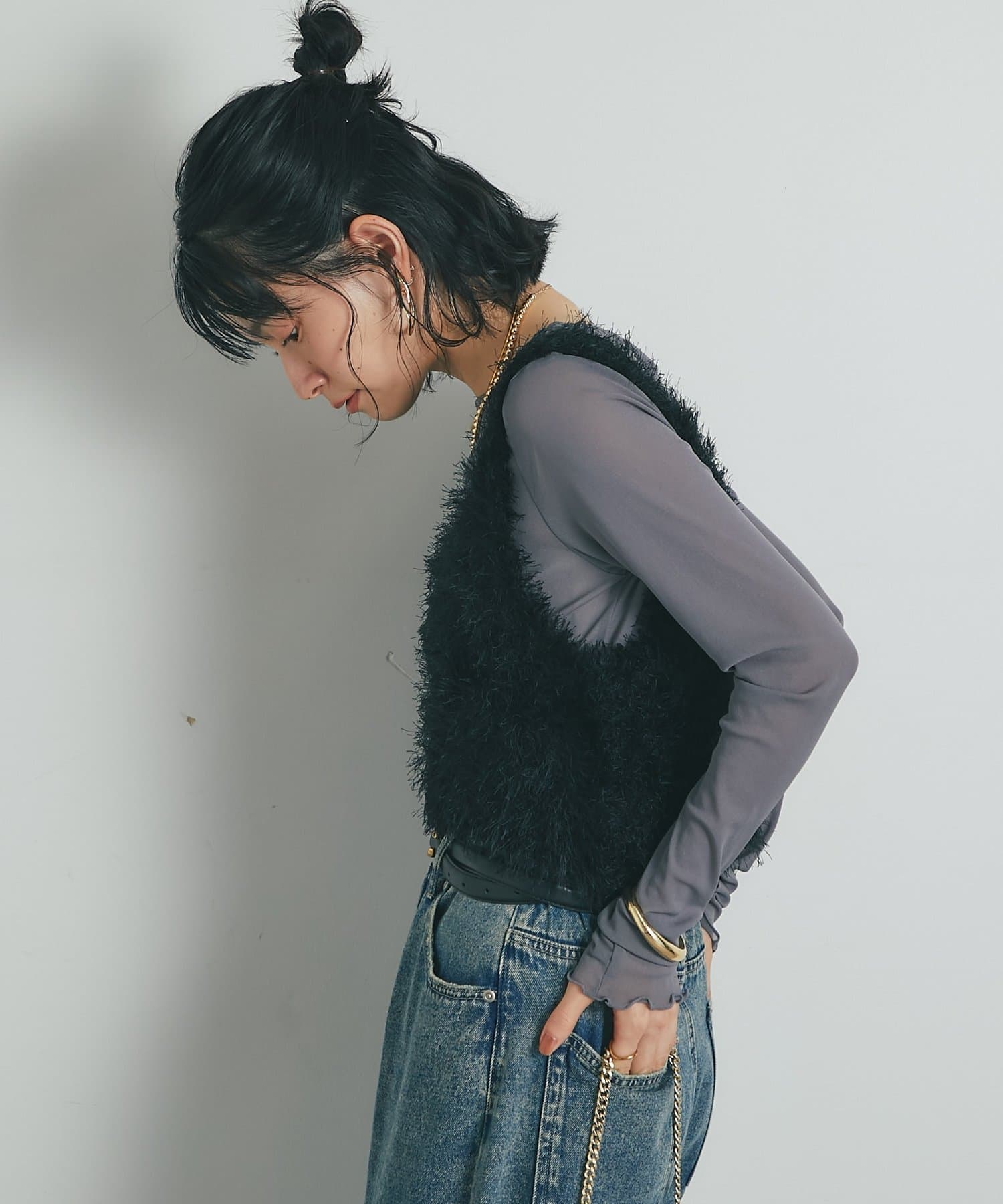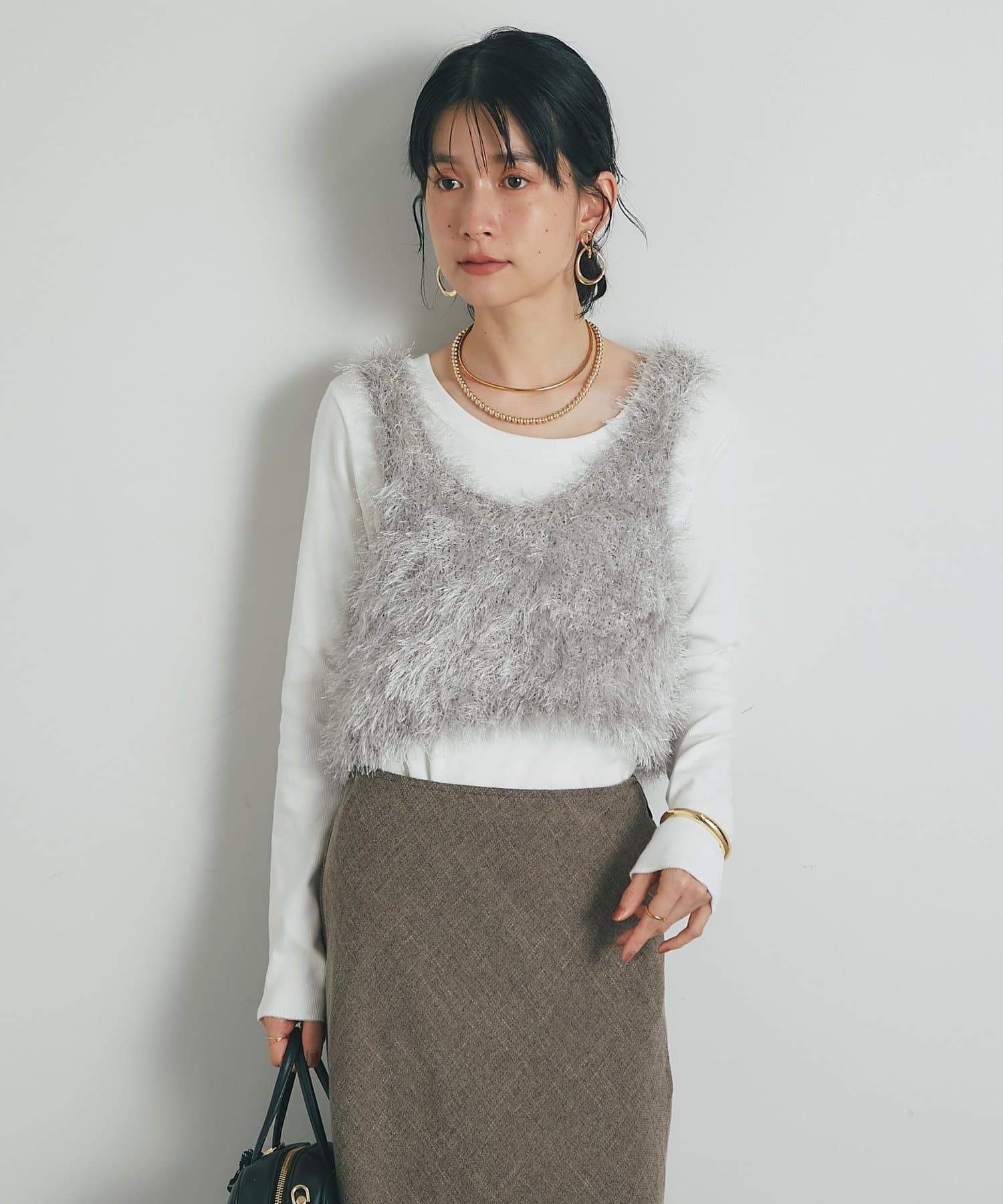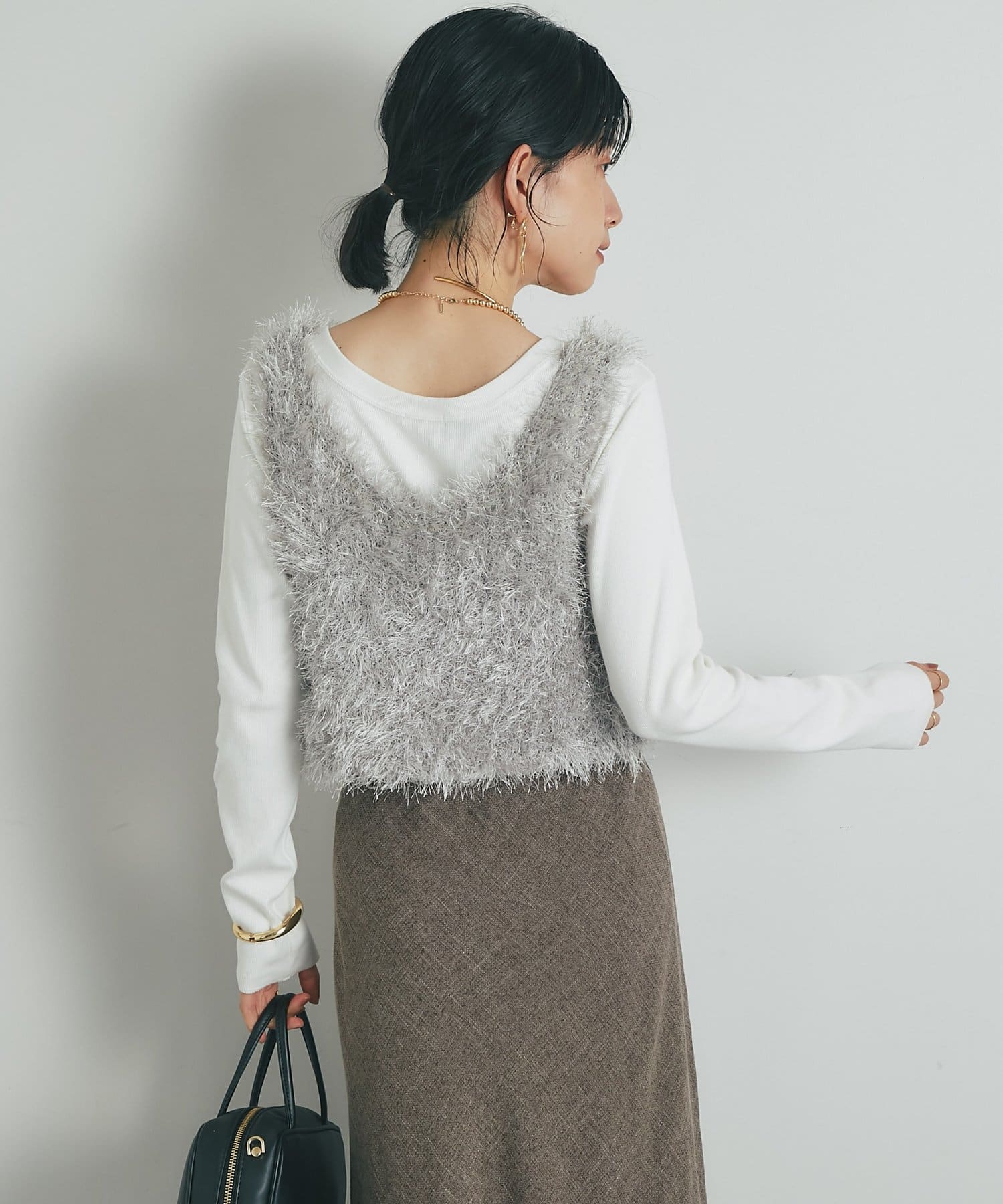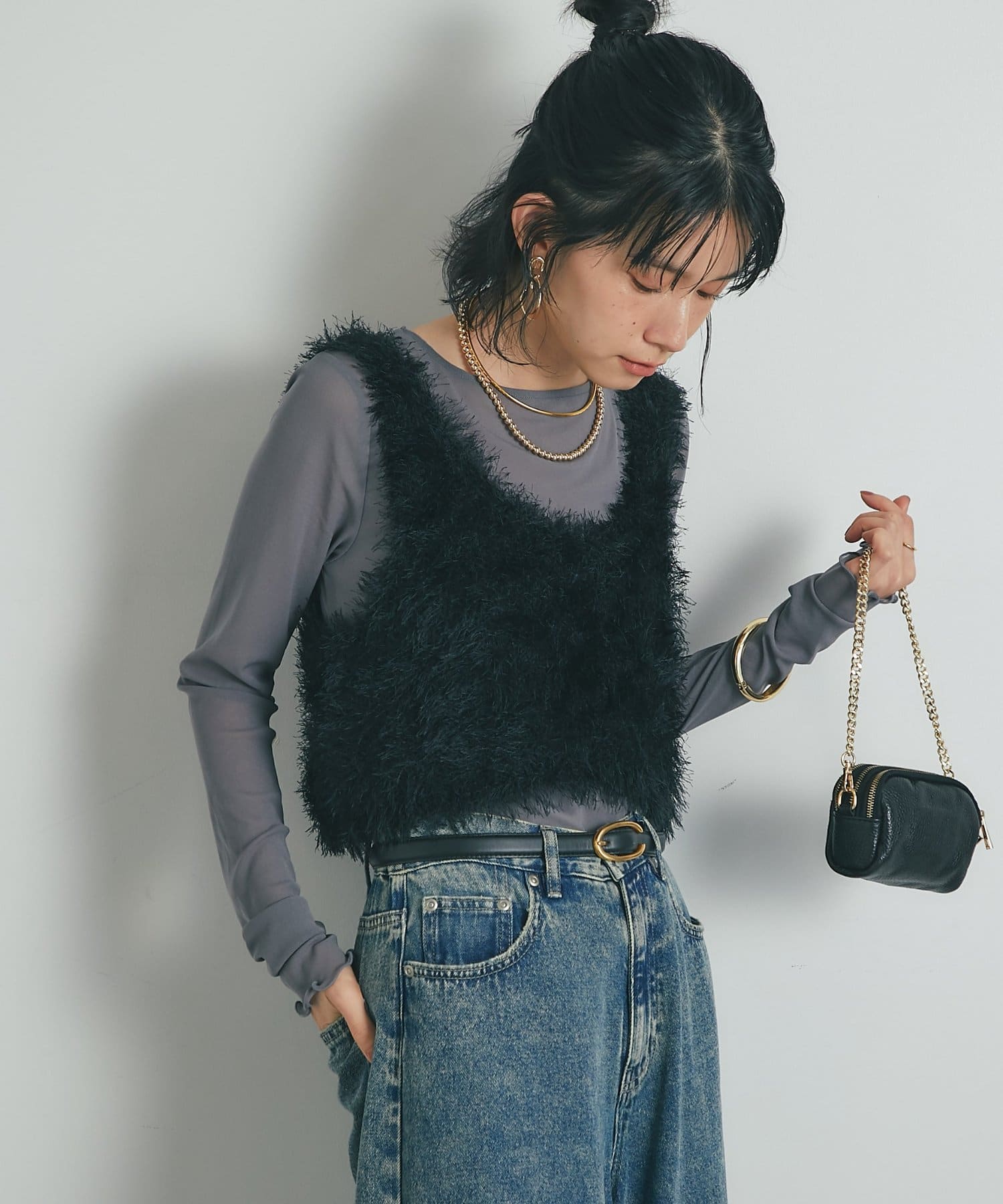 ・ふんわりとしたシャギー素材がスタイリングを華やかに。