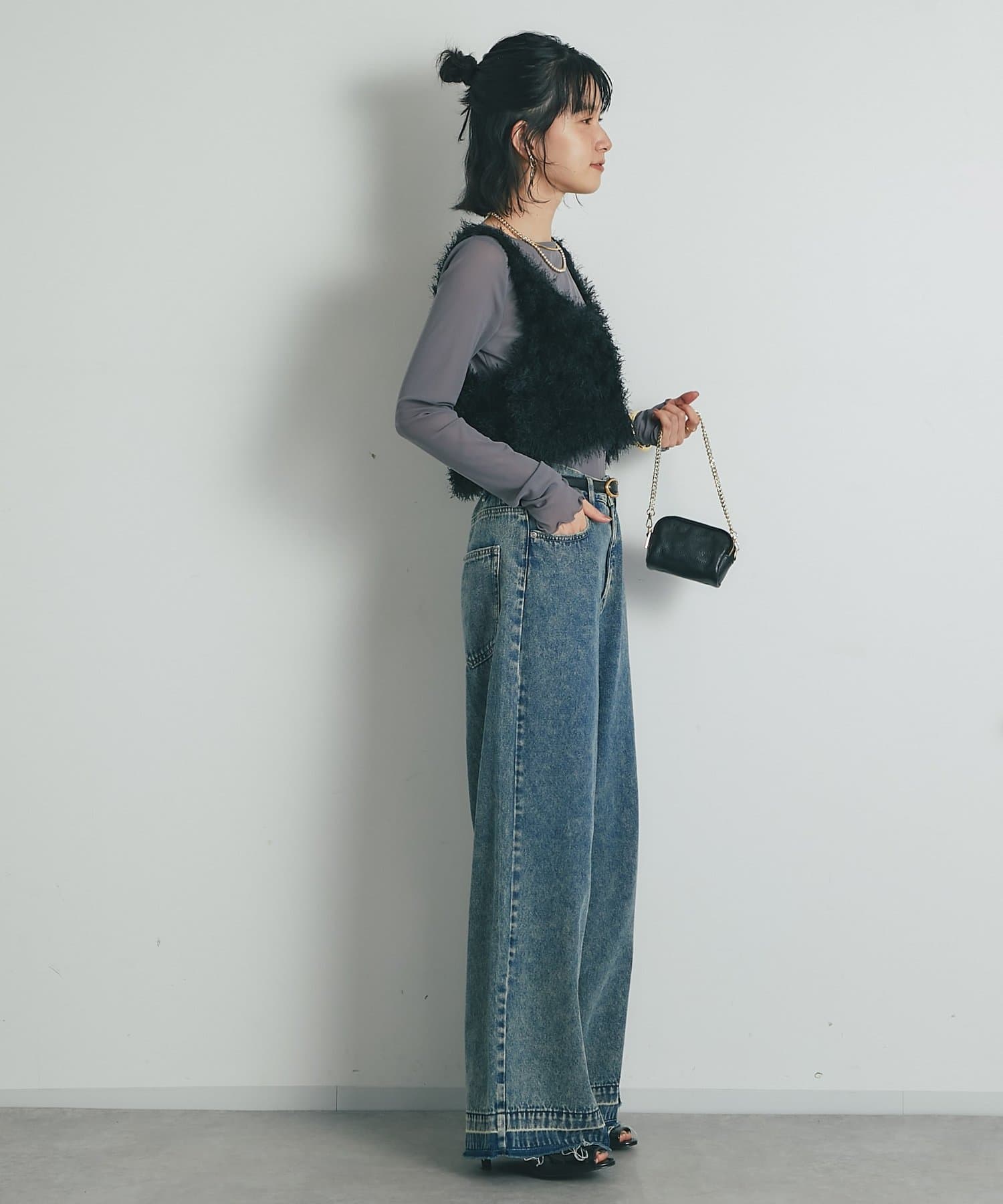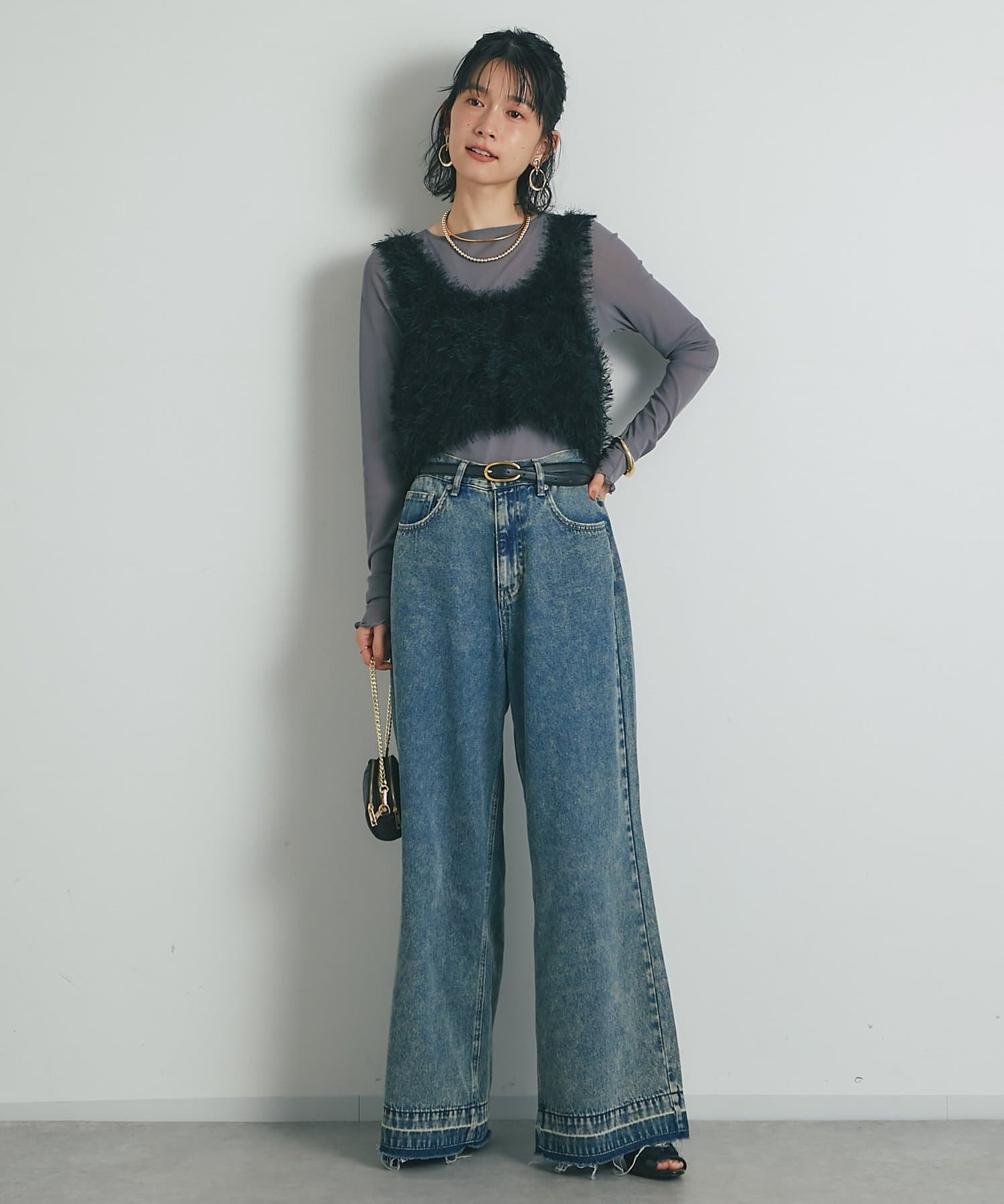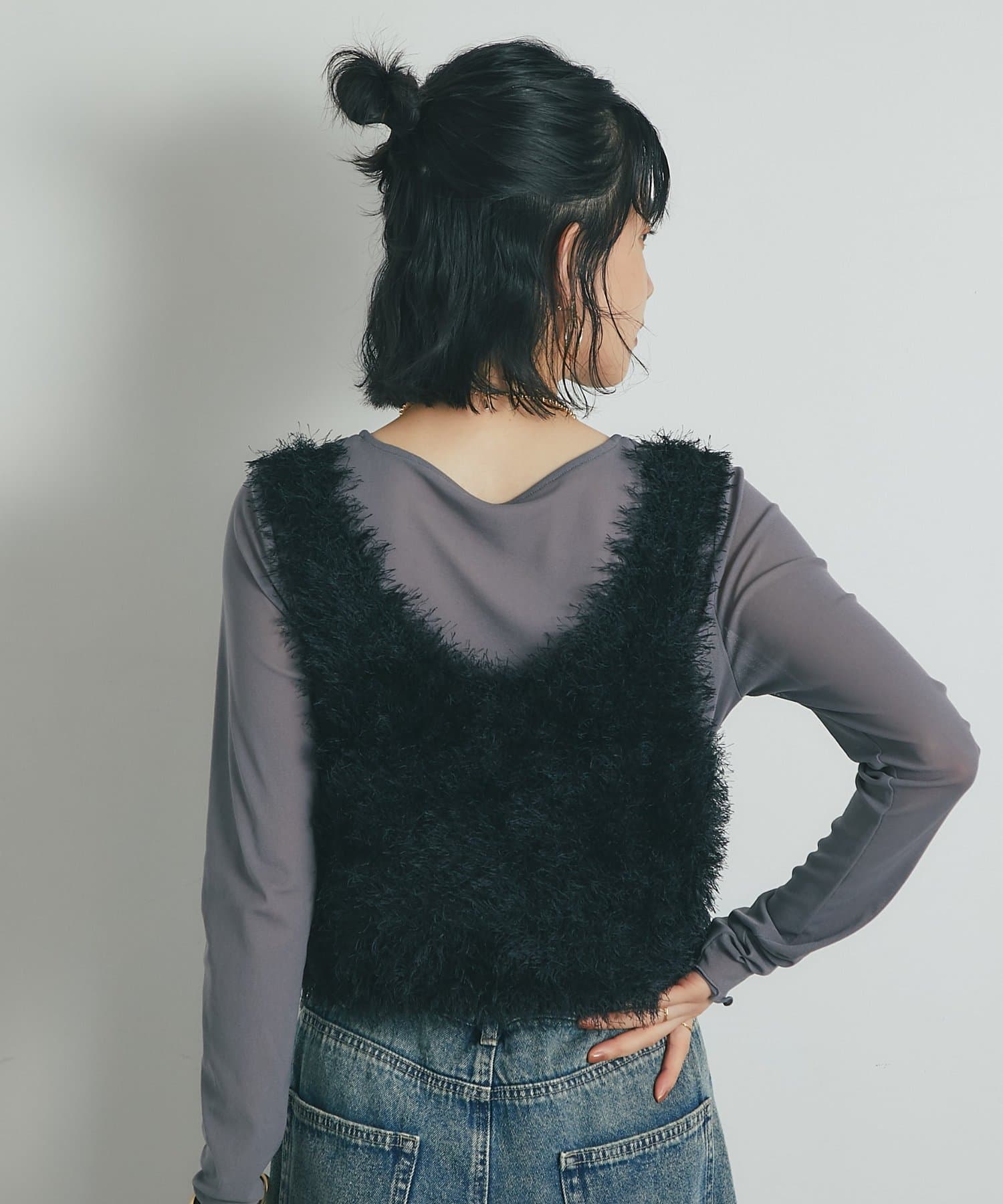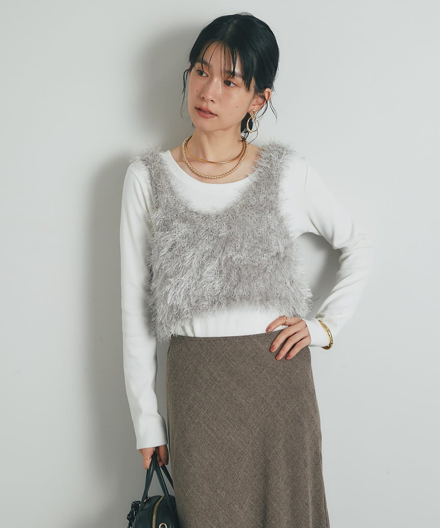 ・ふんわりとしたシャギー素材がスタイリングを華やかに。