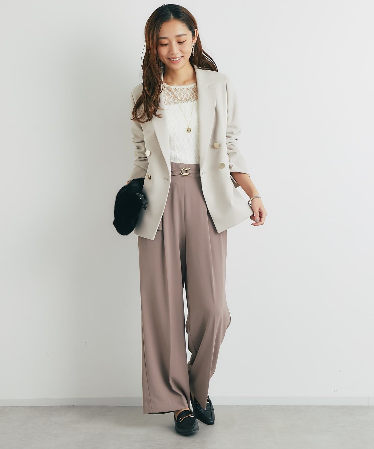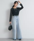 あえてデニムやワイドパンツと合わせると、カジュアルダウンしたミックススタイルも楽しめます。
