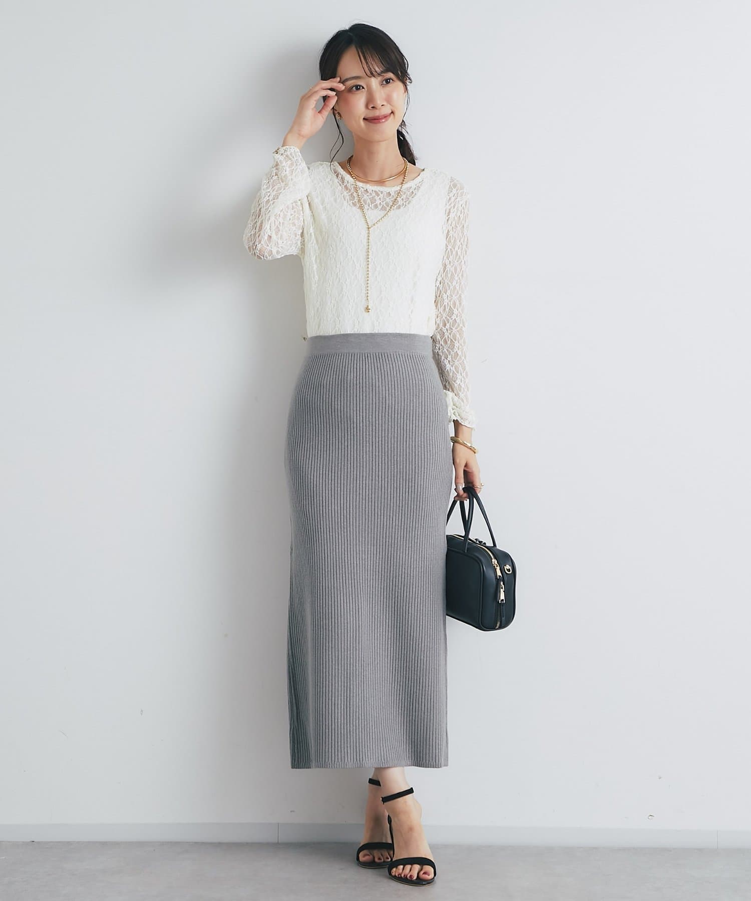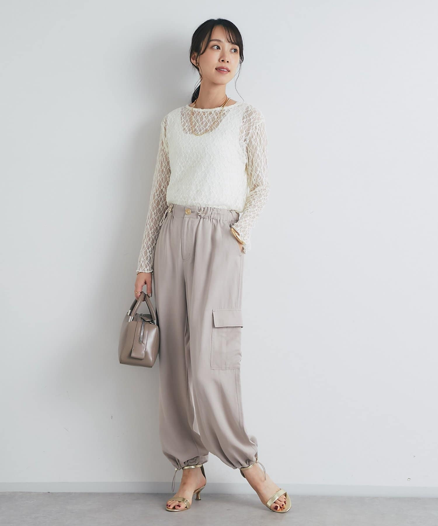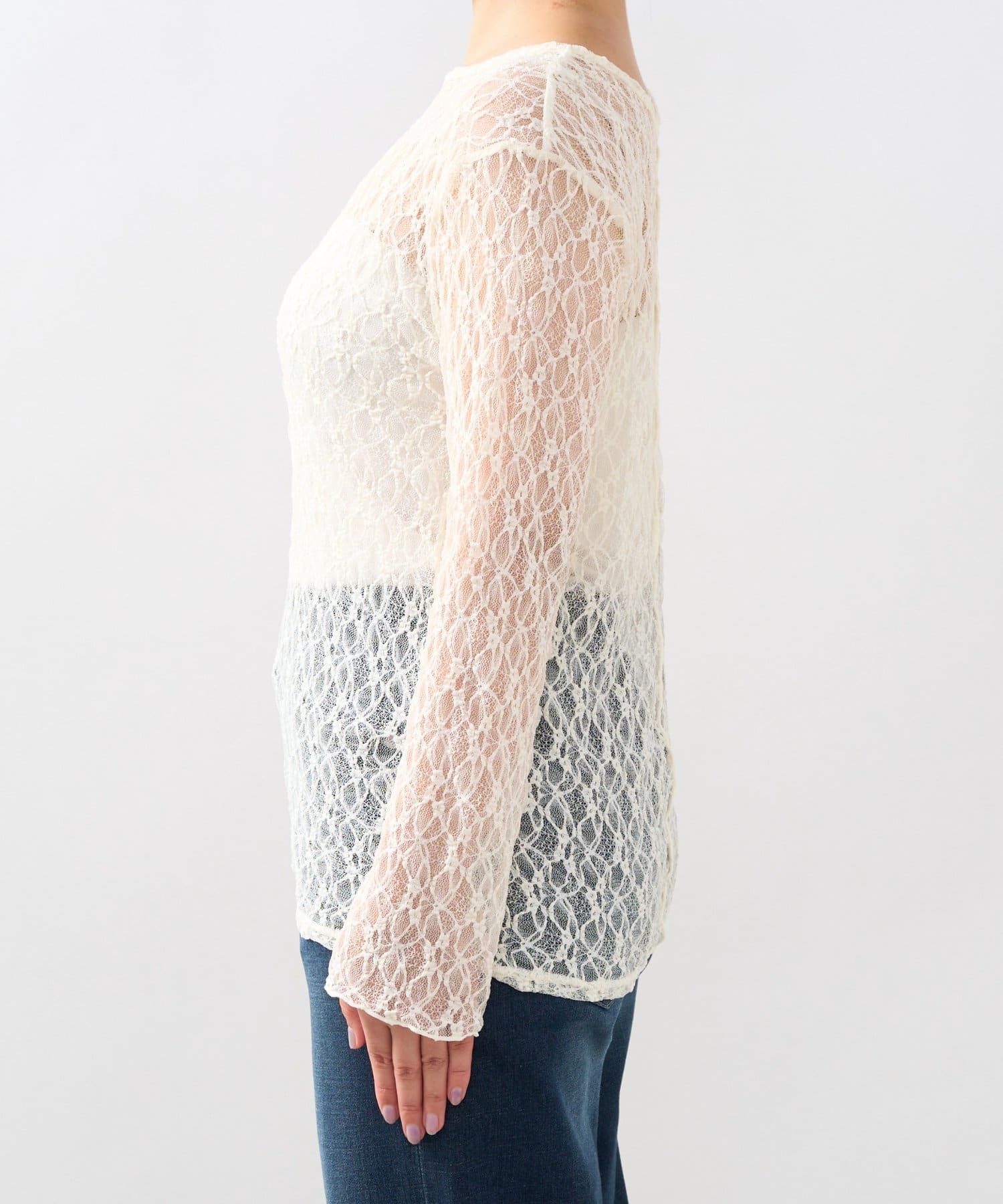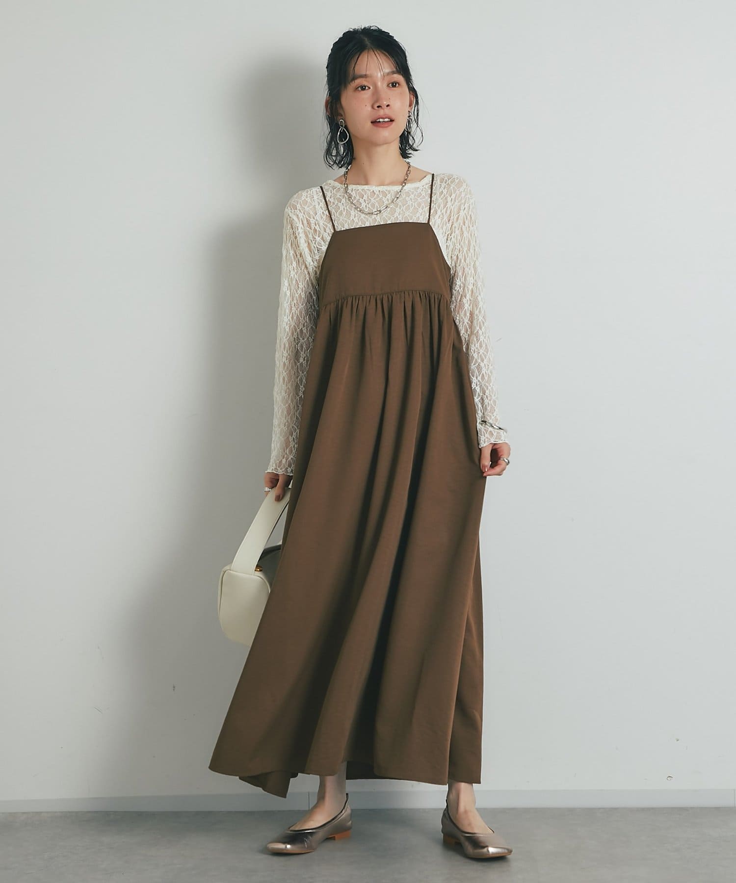 インナーにキャミソールやタンクトップを合わせて、レースの透け感を楽しむレイヤードスタイルがおすすめです。