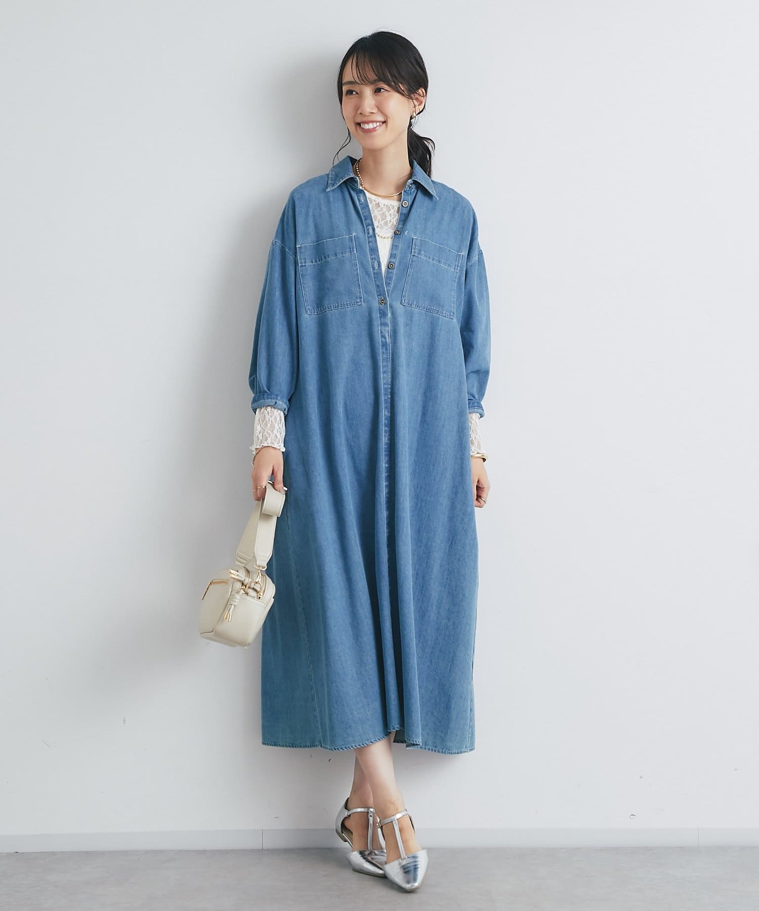 《着るだけで大人カジュアル》デニムシャツワンピース