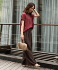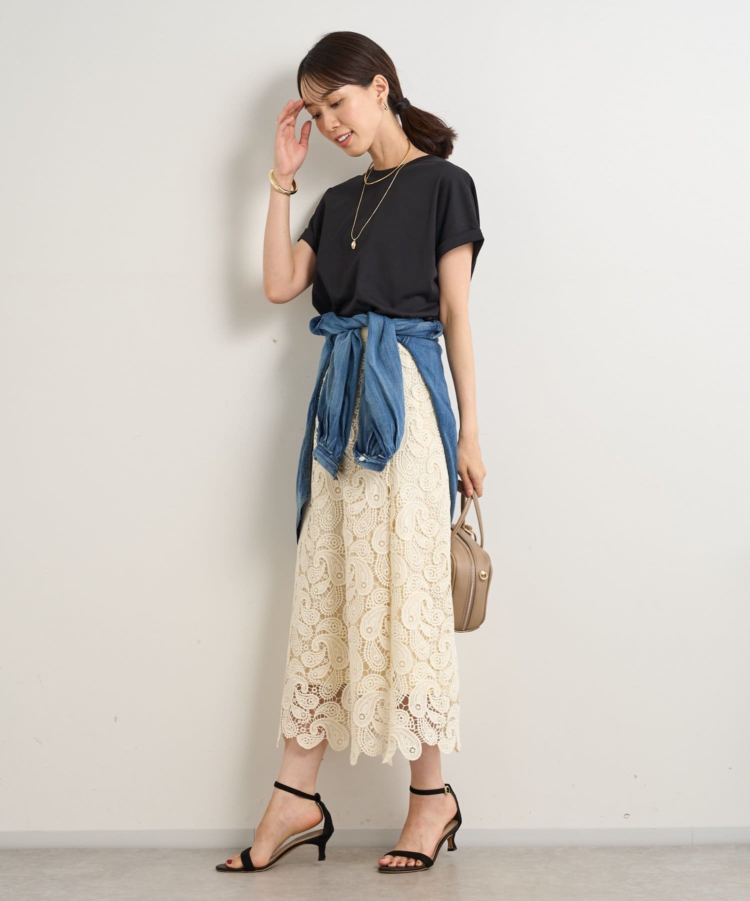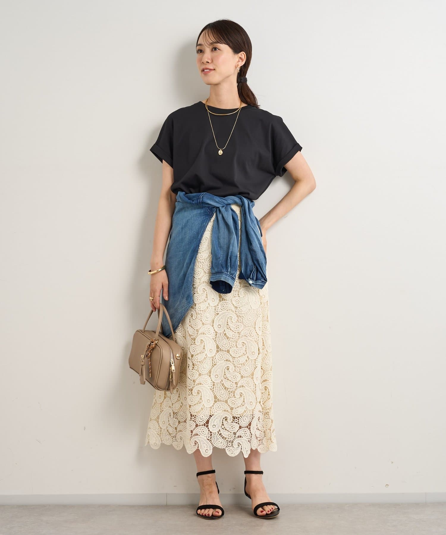 フレアスカートなど、綺麗めボトムを合わせるときちんと感のある雰囲気にも。