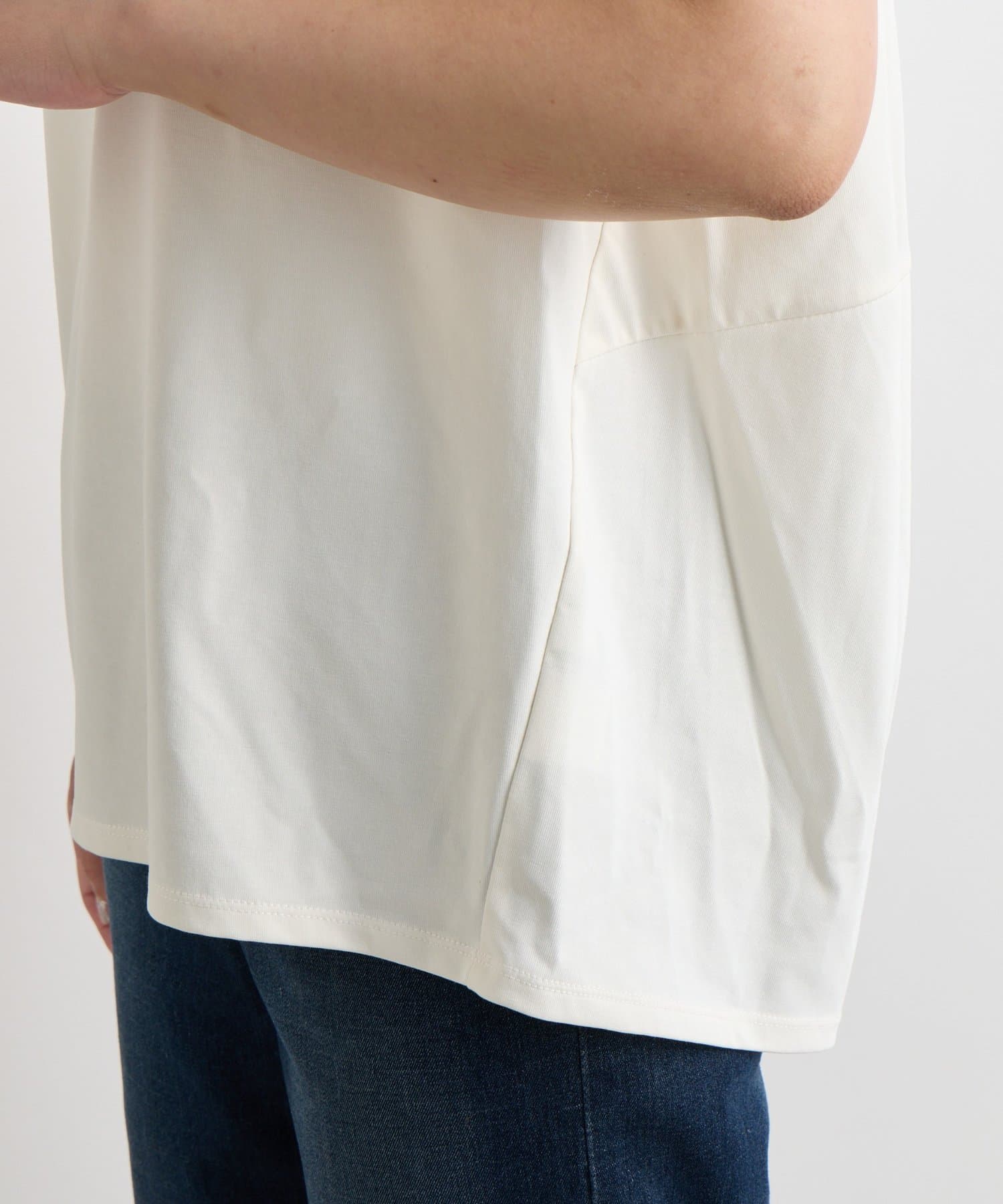 程よく身幅にゆとりのある作りですので、ボディーにフィットしすぎないシルエットになります。