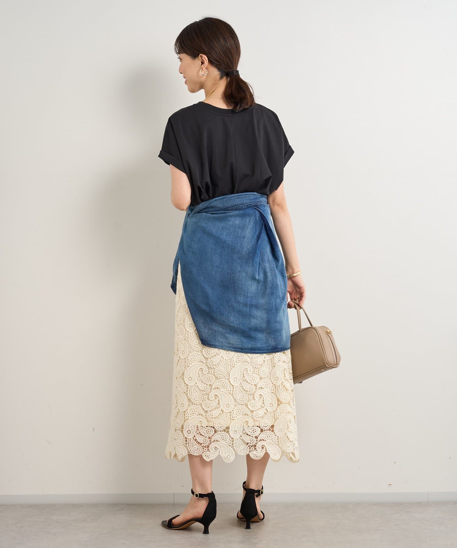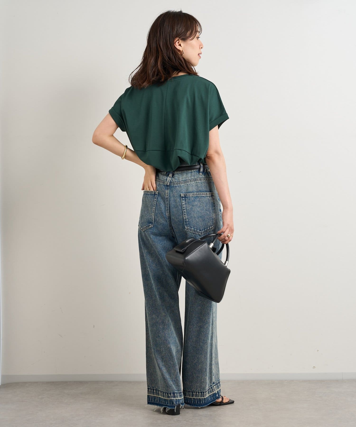 前着丈のほうがやや短めの作りですので、トップスインしなくてももこなれ感のある雰囲気に決まります◎