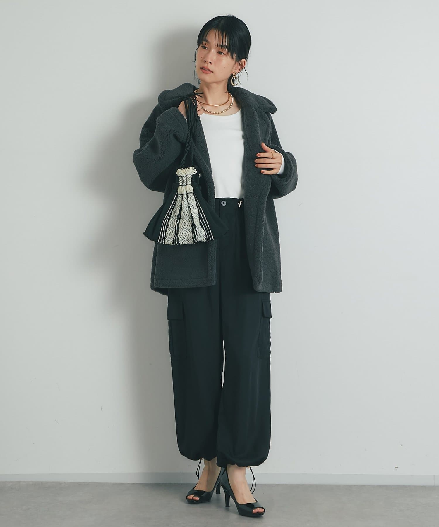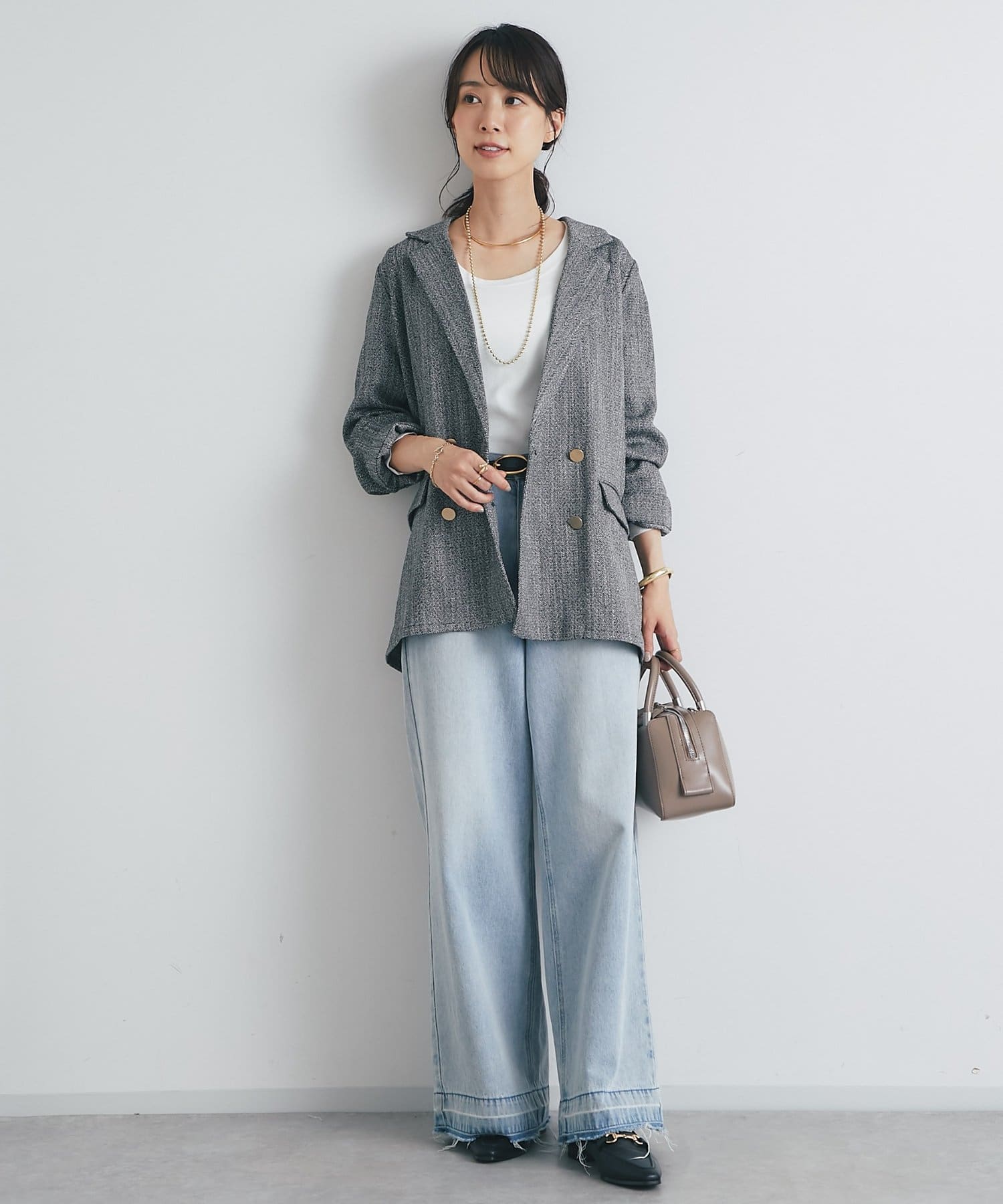袖口を少し捲って、袖をクシュっとさせると程よくこなれ感をプラスしてくれます。