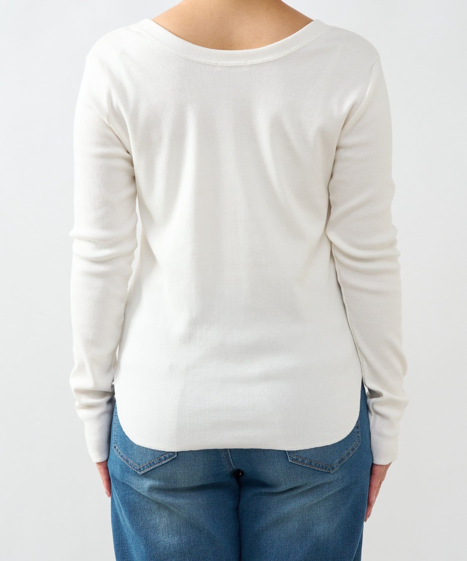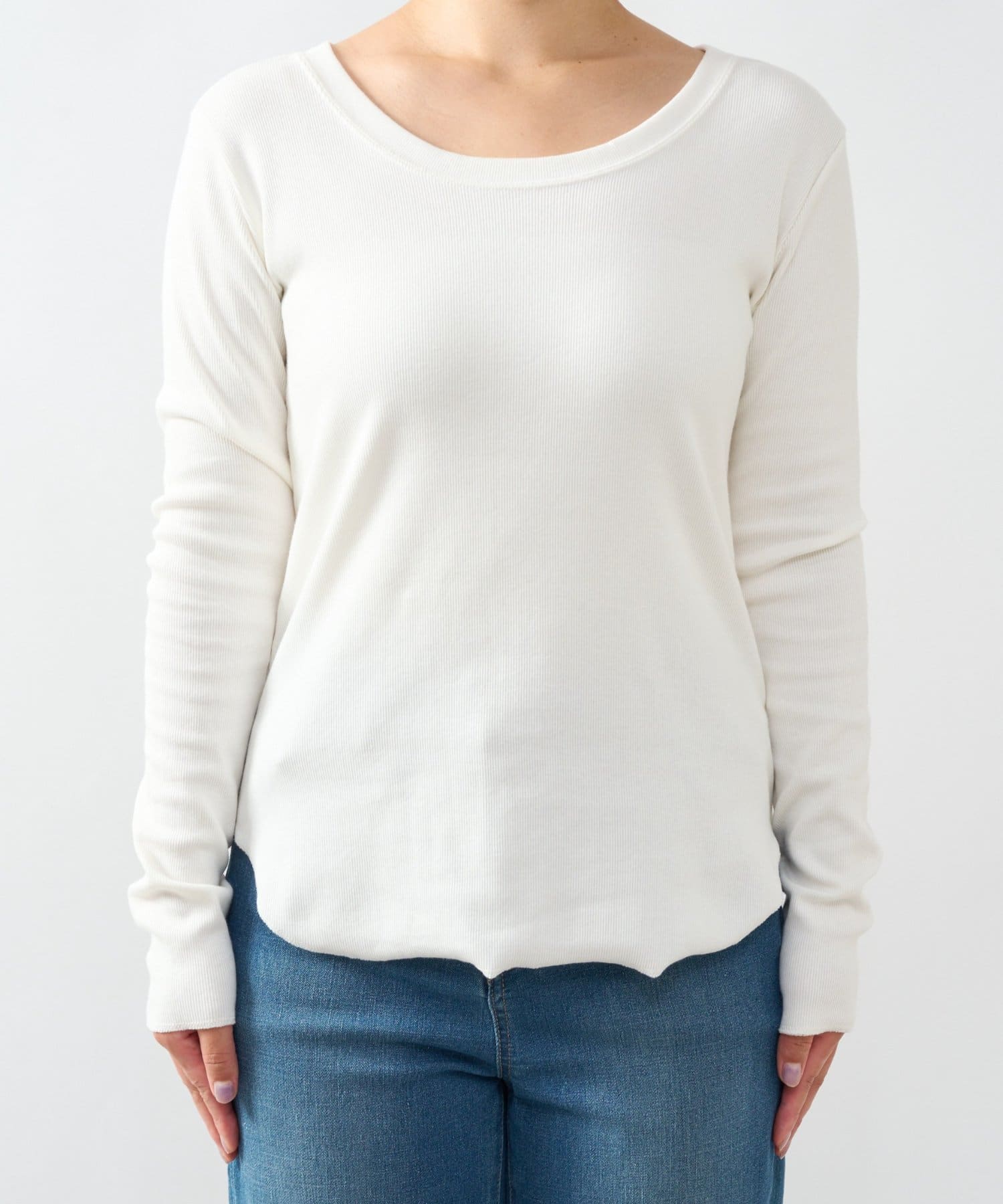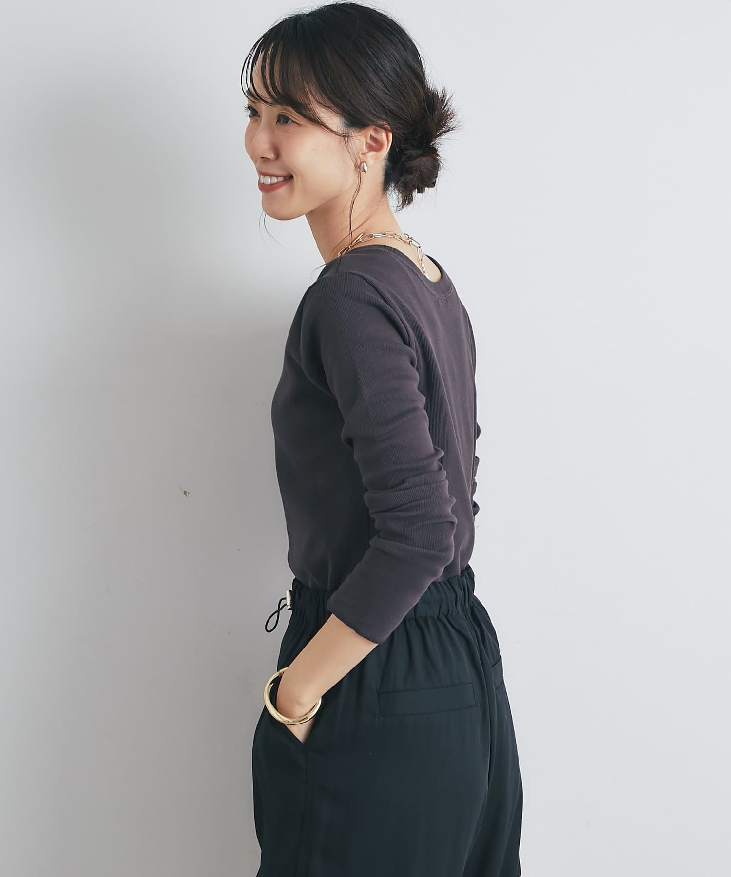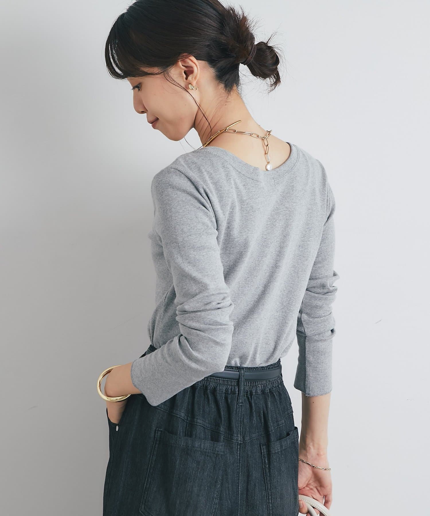 またリブ生地なのでシンプルなボトムを合わせてもカジュアル過ぎない印象に。
