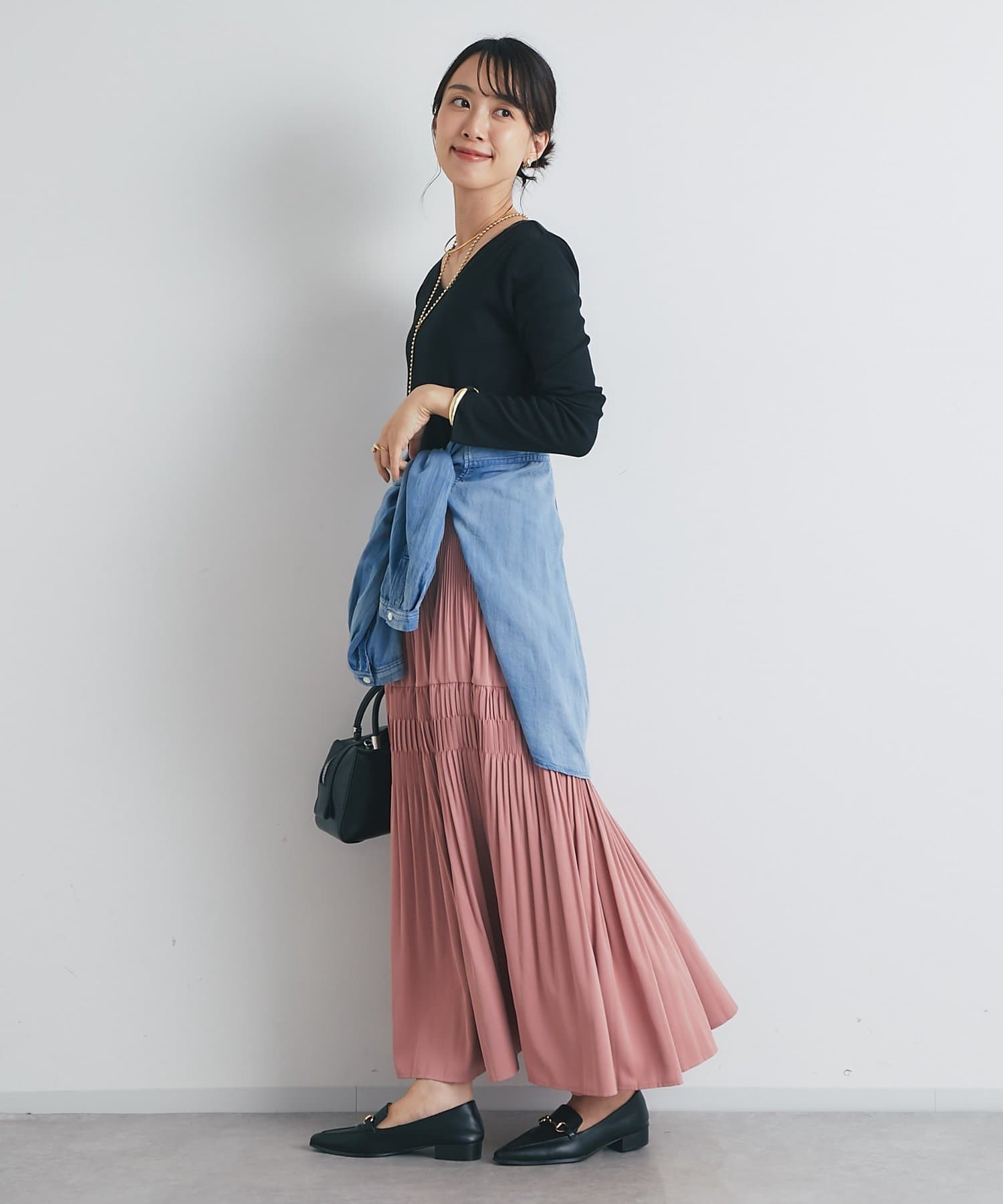 カジュアルなデニムスタイルから、きれいめなスカートスタイルまで、幅広いコーディネートにマッチします。