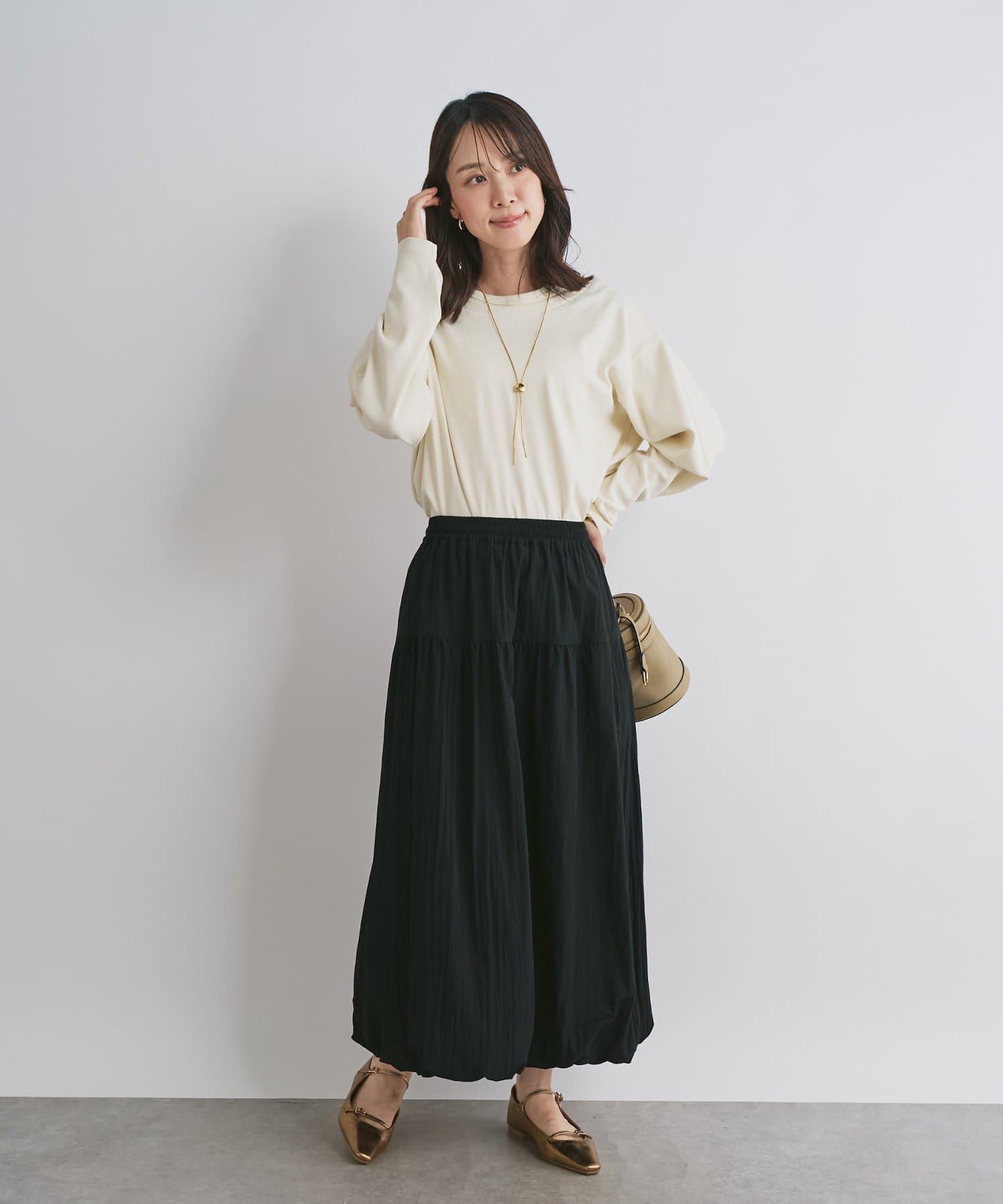 カジュアルなデニムから、きれいめスカートまで、どんなボトムスとも相性抜群。