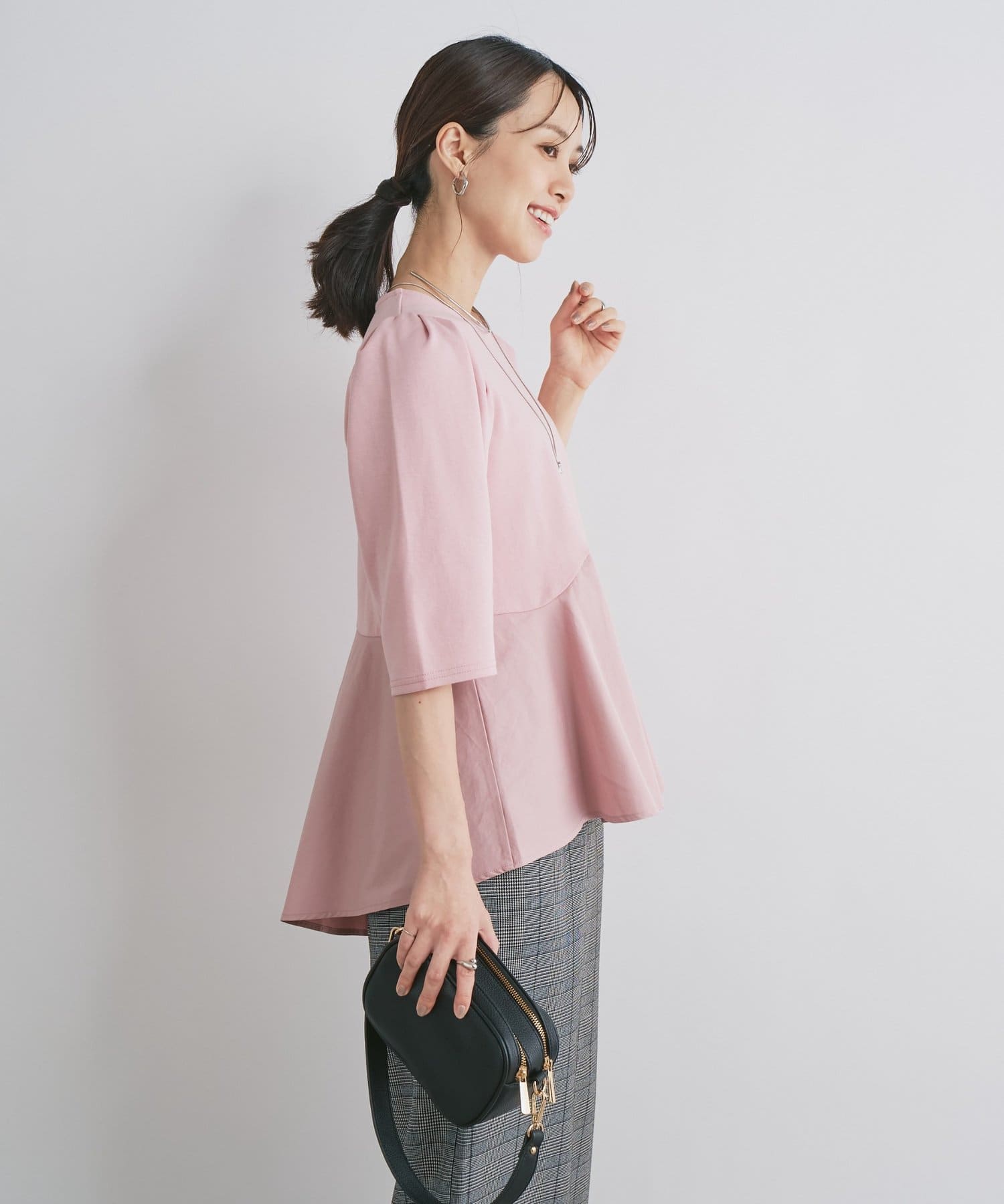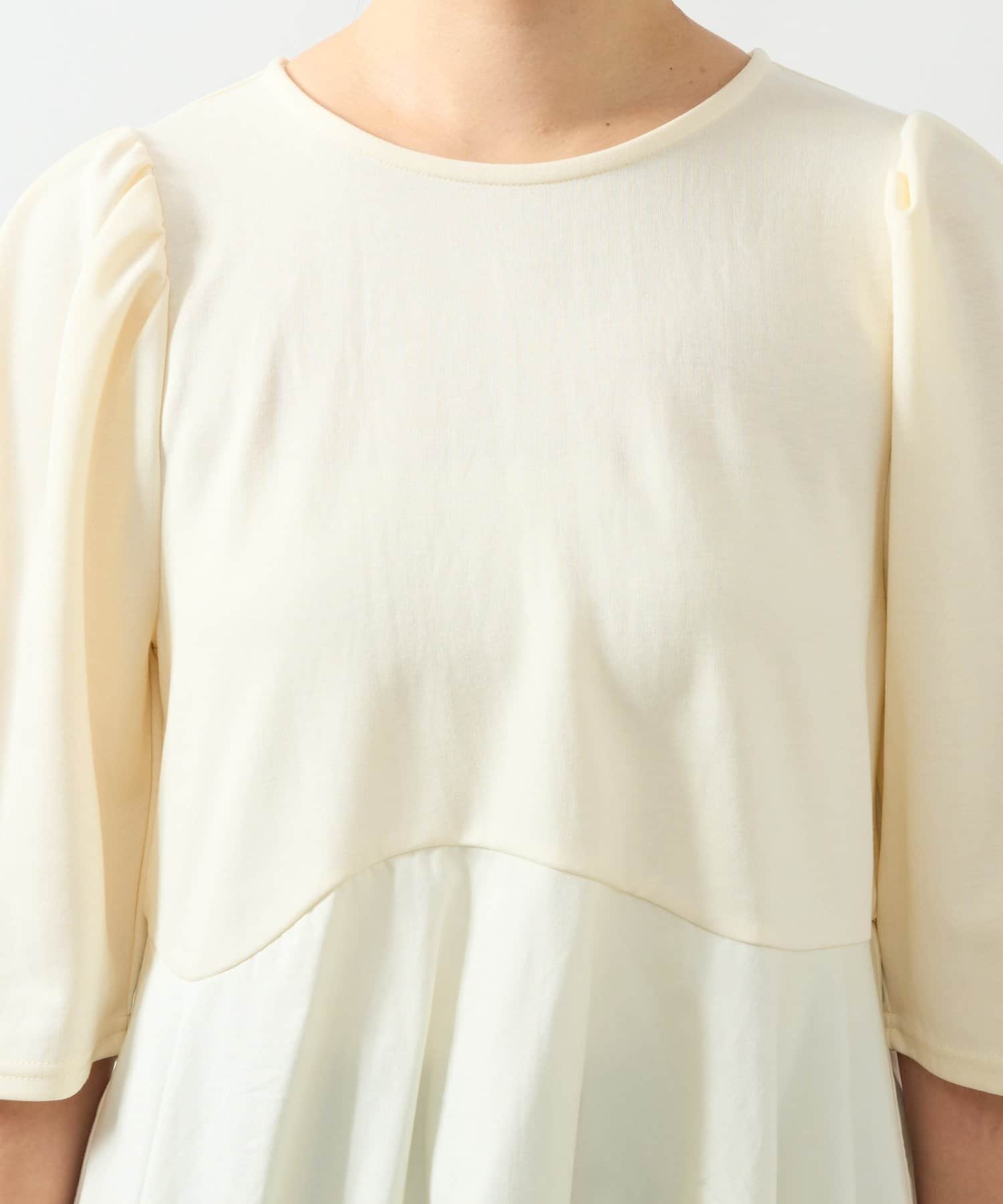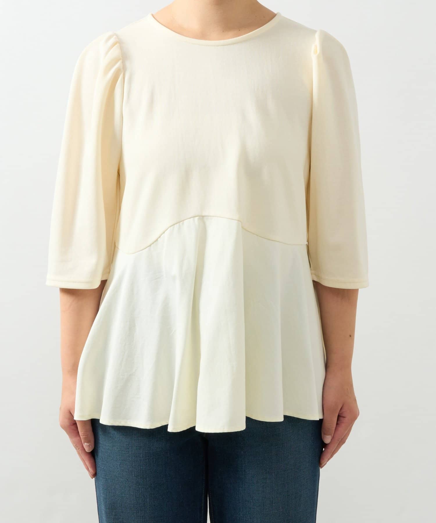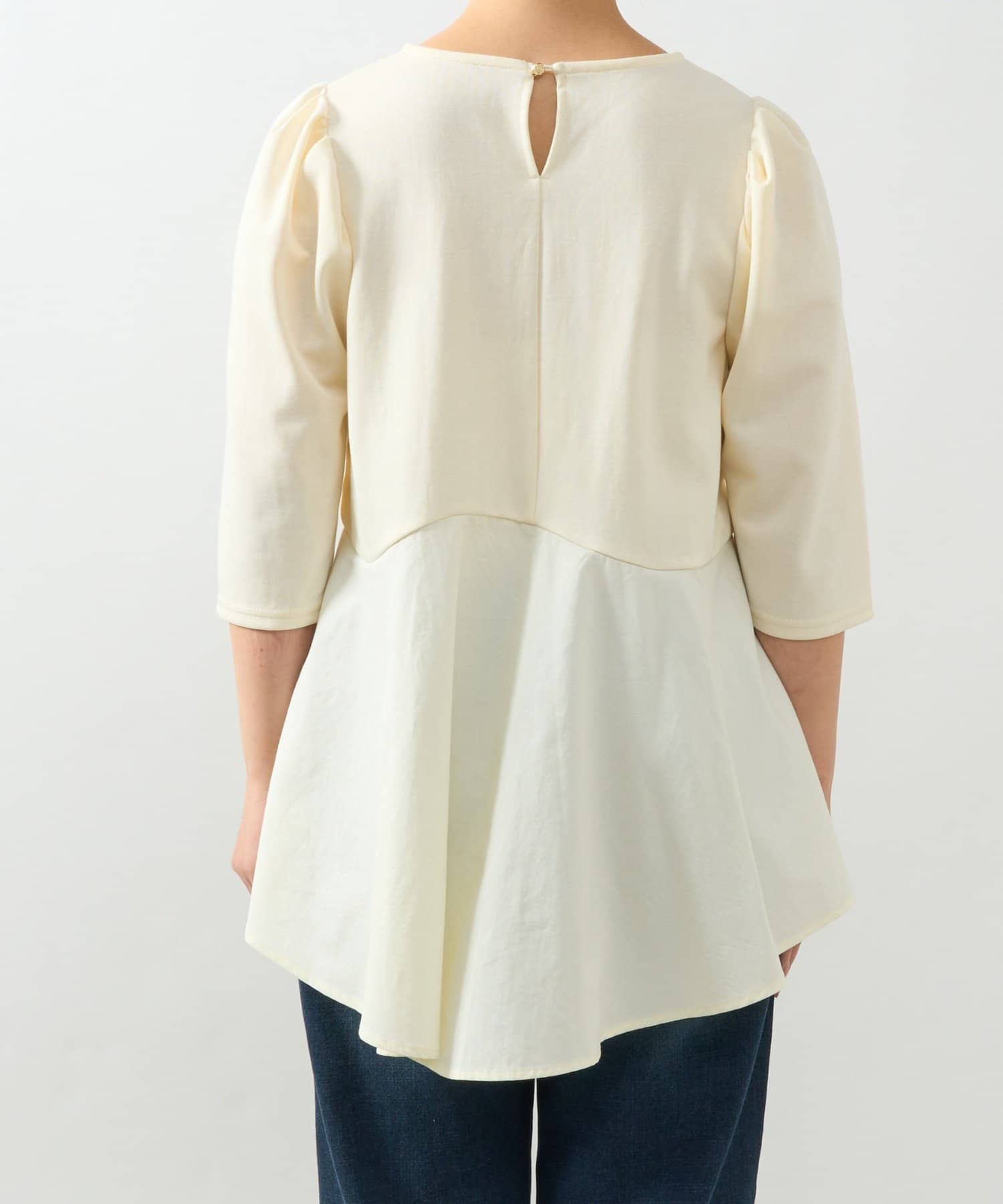 《大人可愛い雰囲気に◎》異素材切替フレアプルオーバー