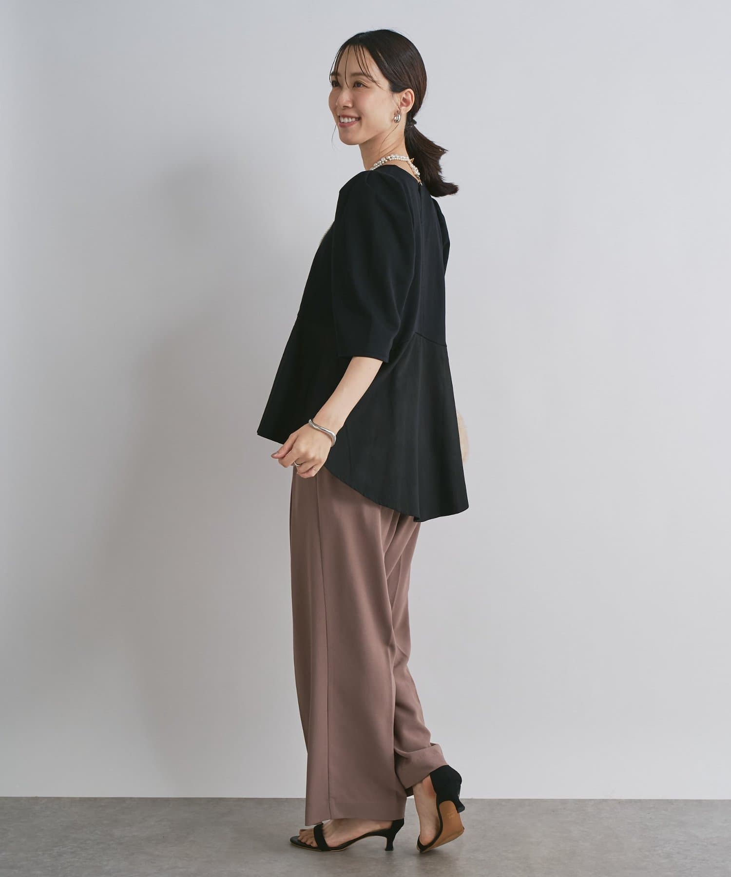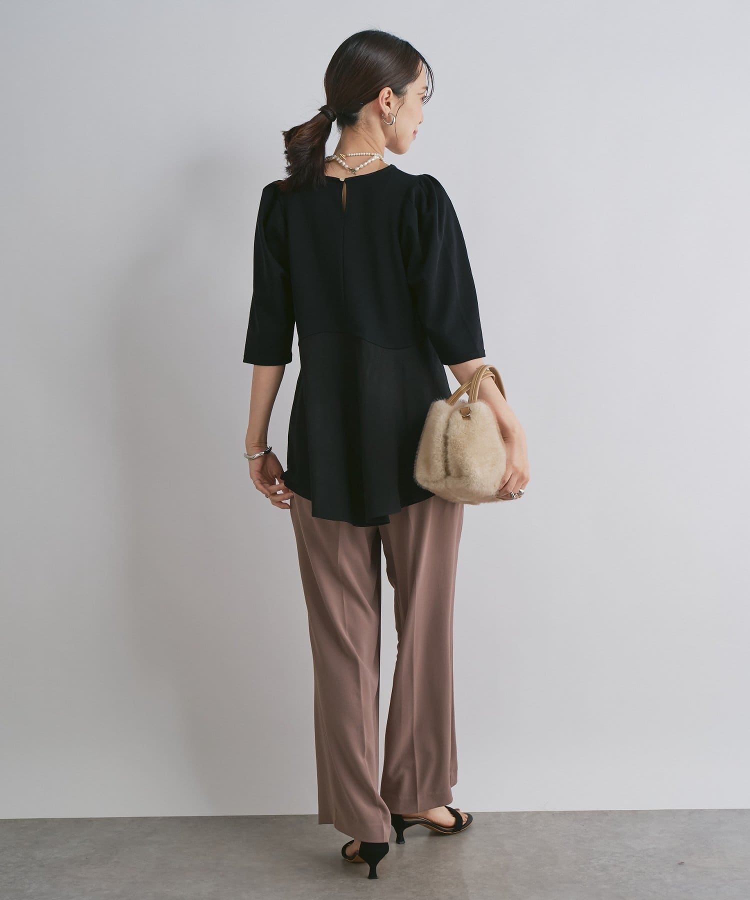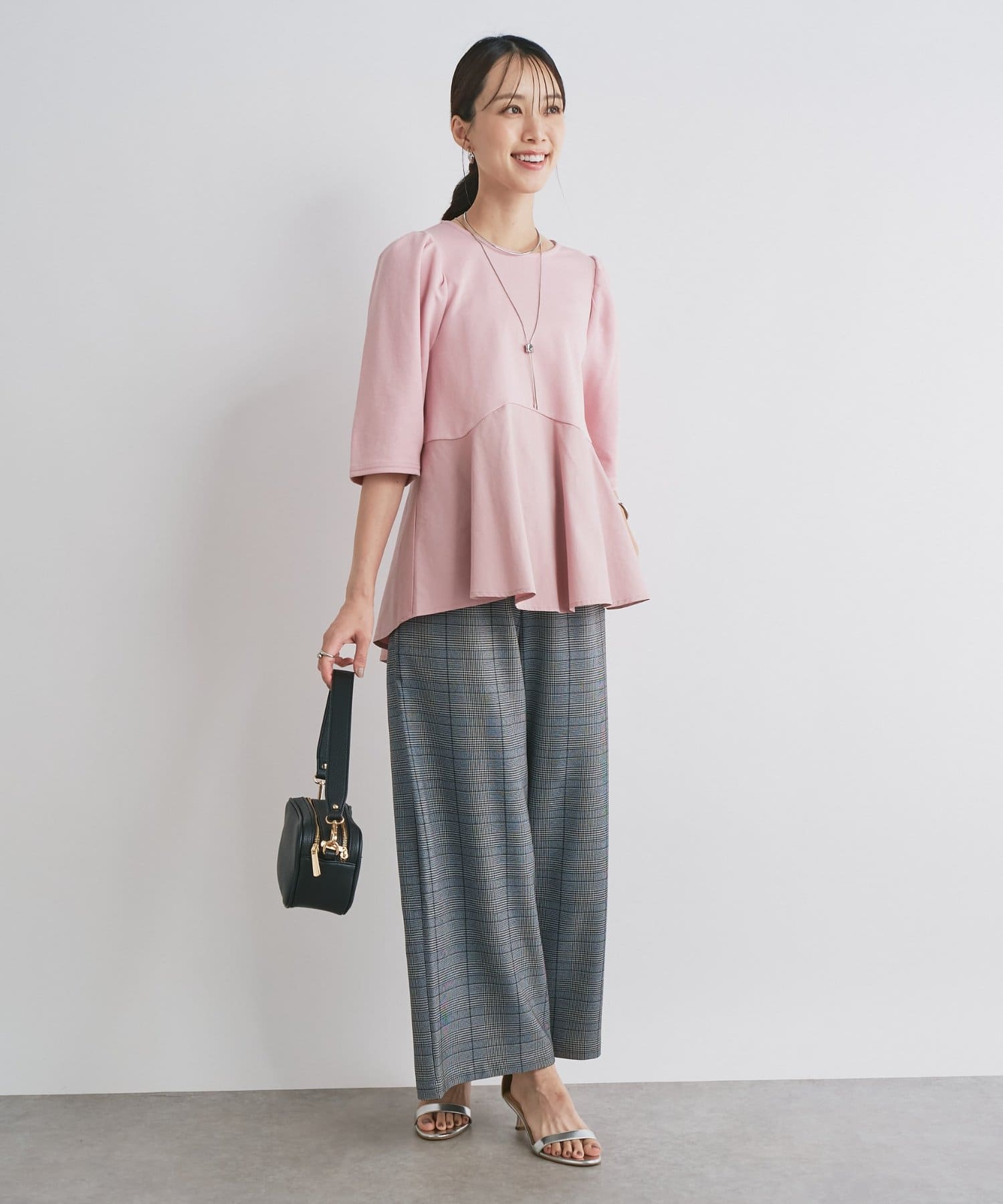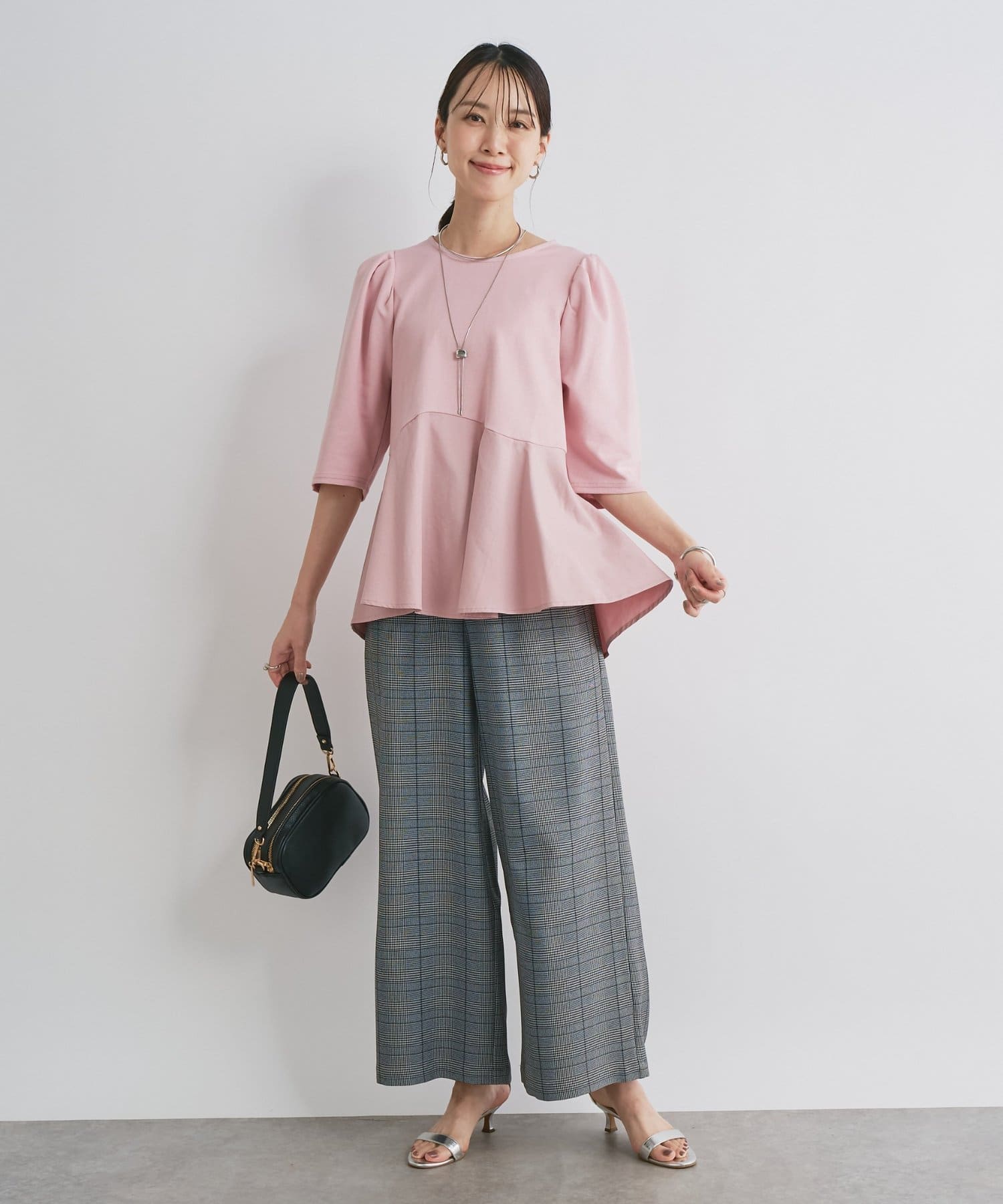きれいめなパンツやスカートと合わせて、オフィスにも着ていける上品なスタイルに。