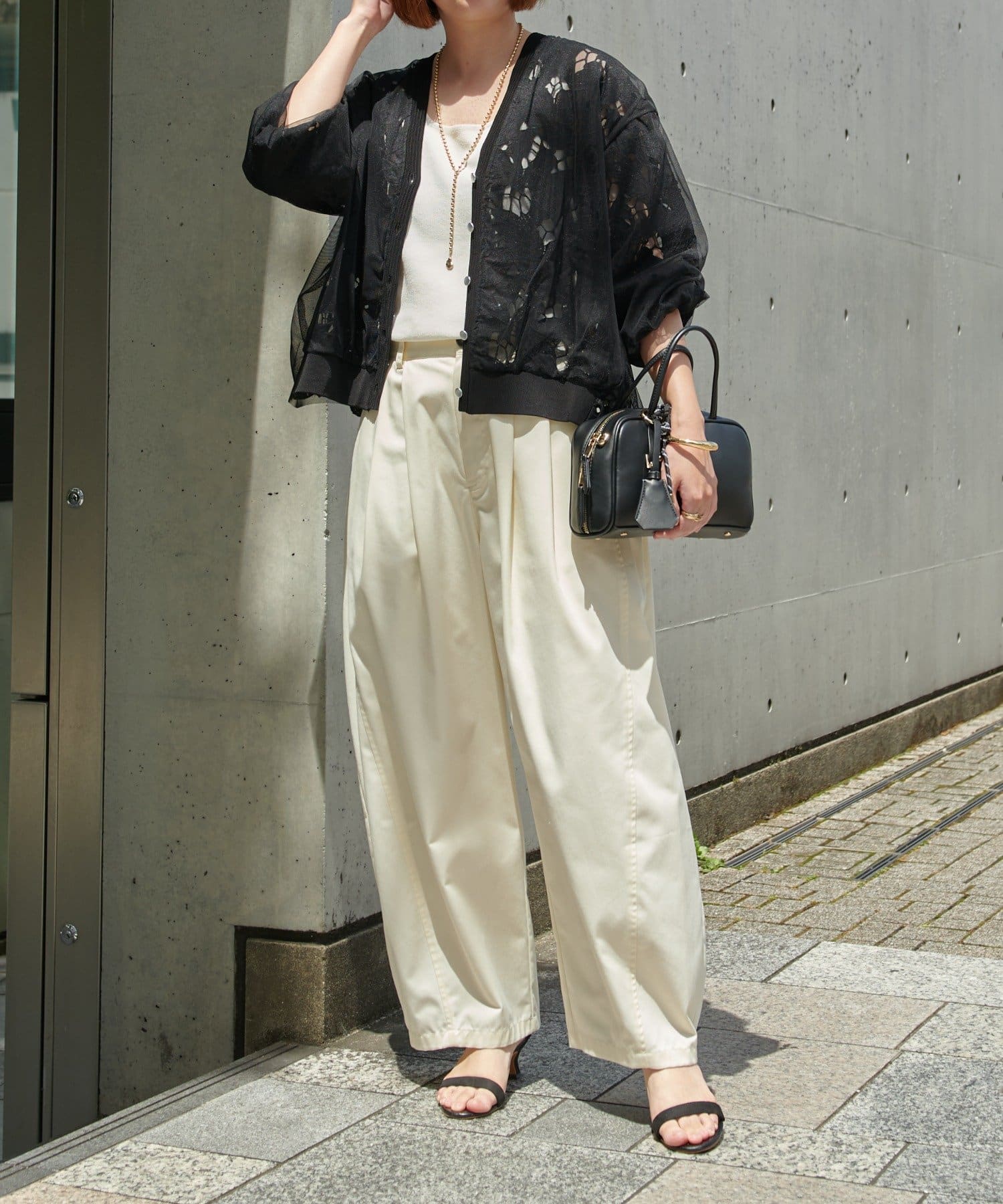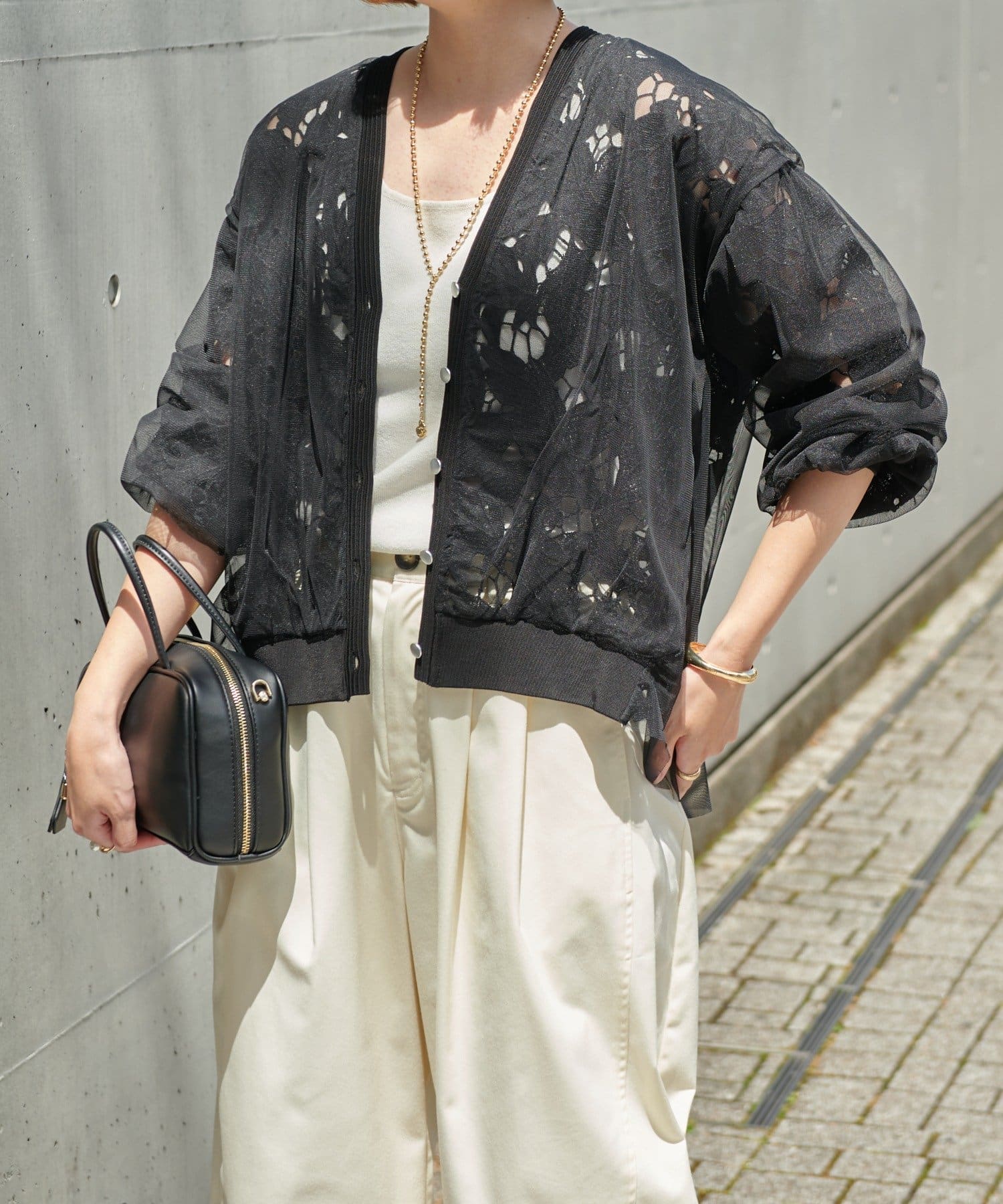 ・シアー感で抜け感もあり、大人なフェミニンスタイルが叶うカーディガン。