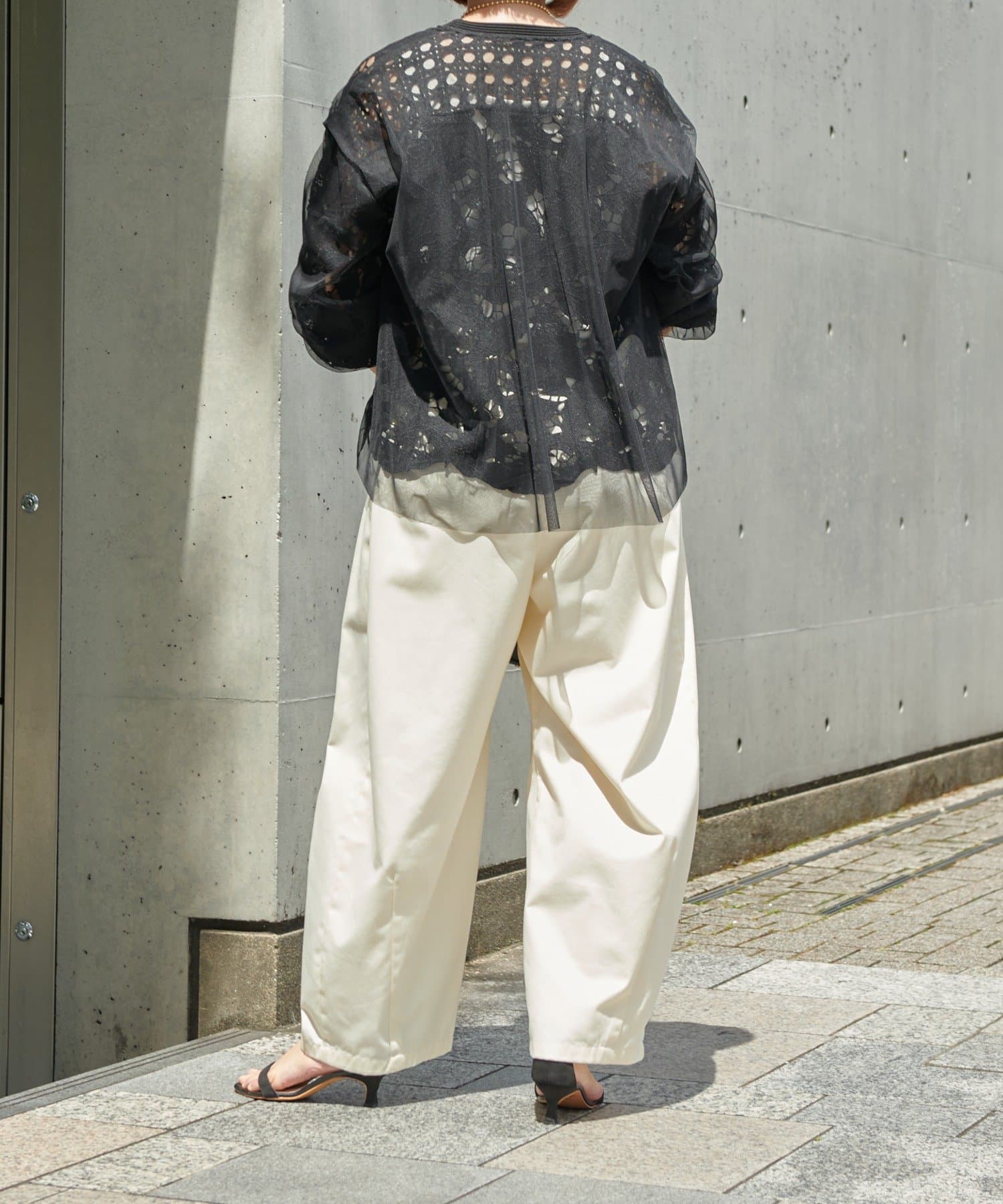 タンクトップの上に重ねて透け感を楽しむのも、