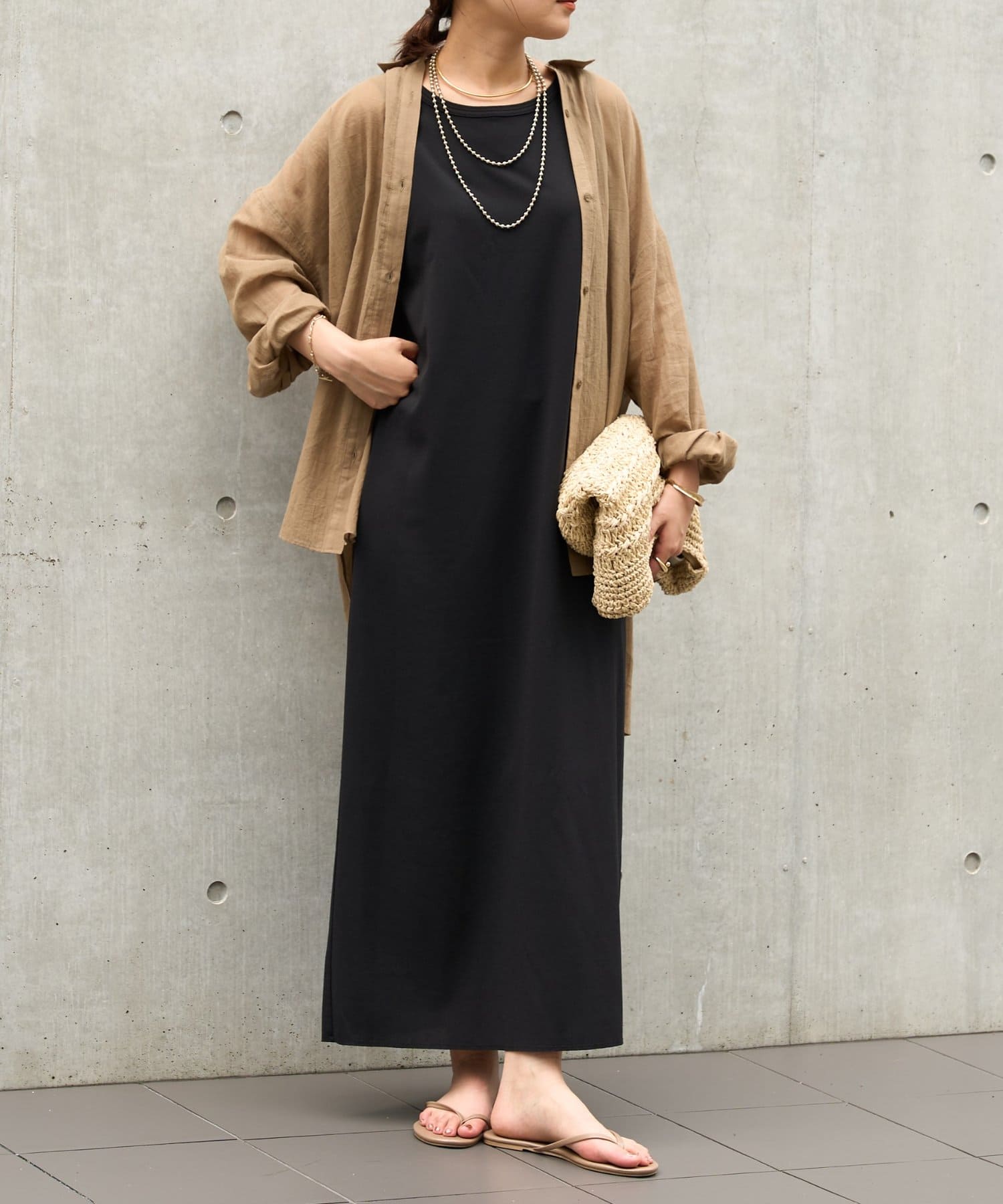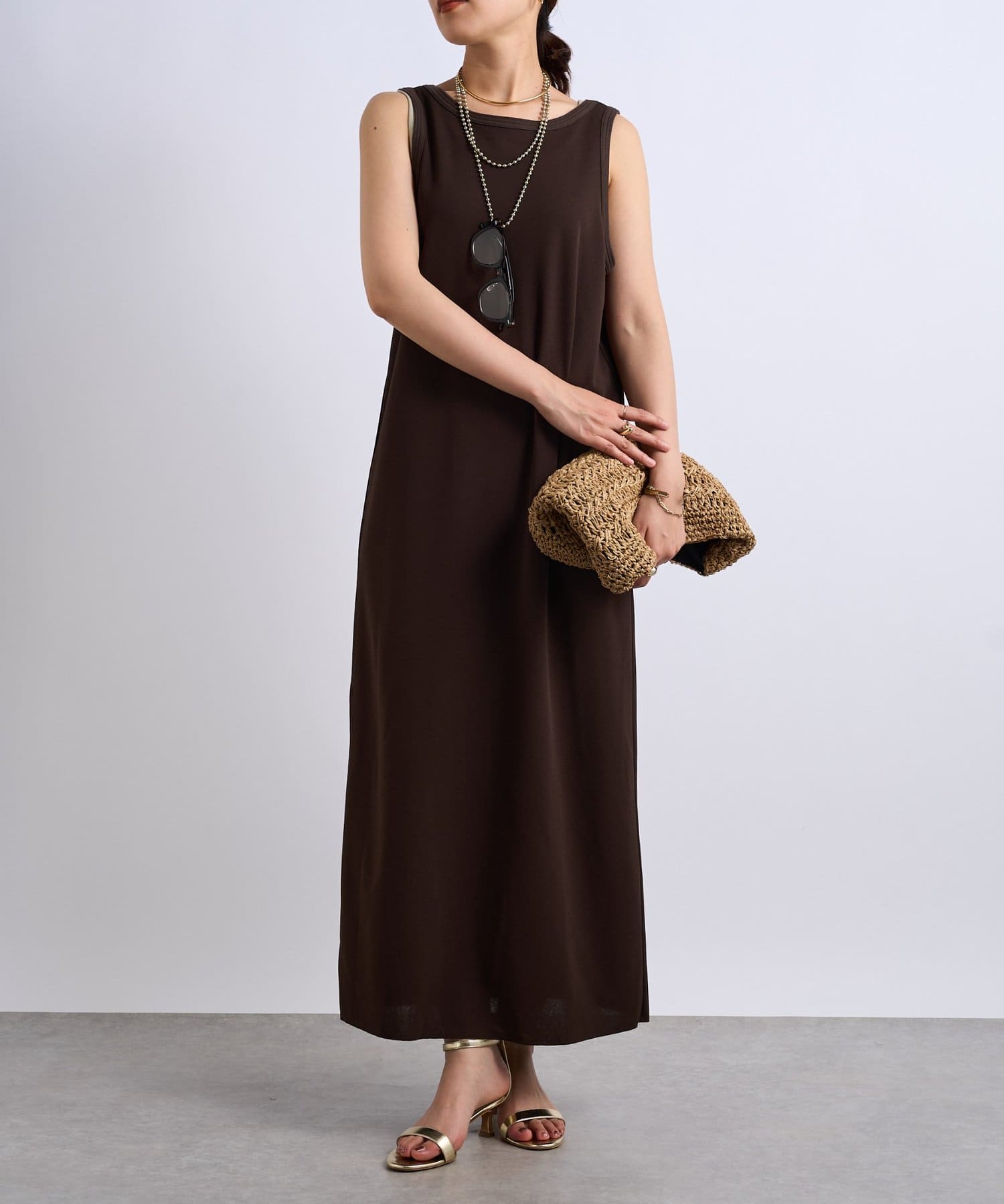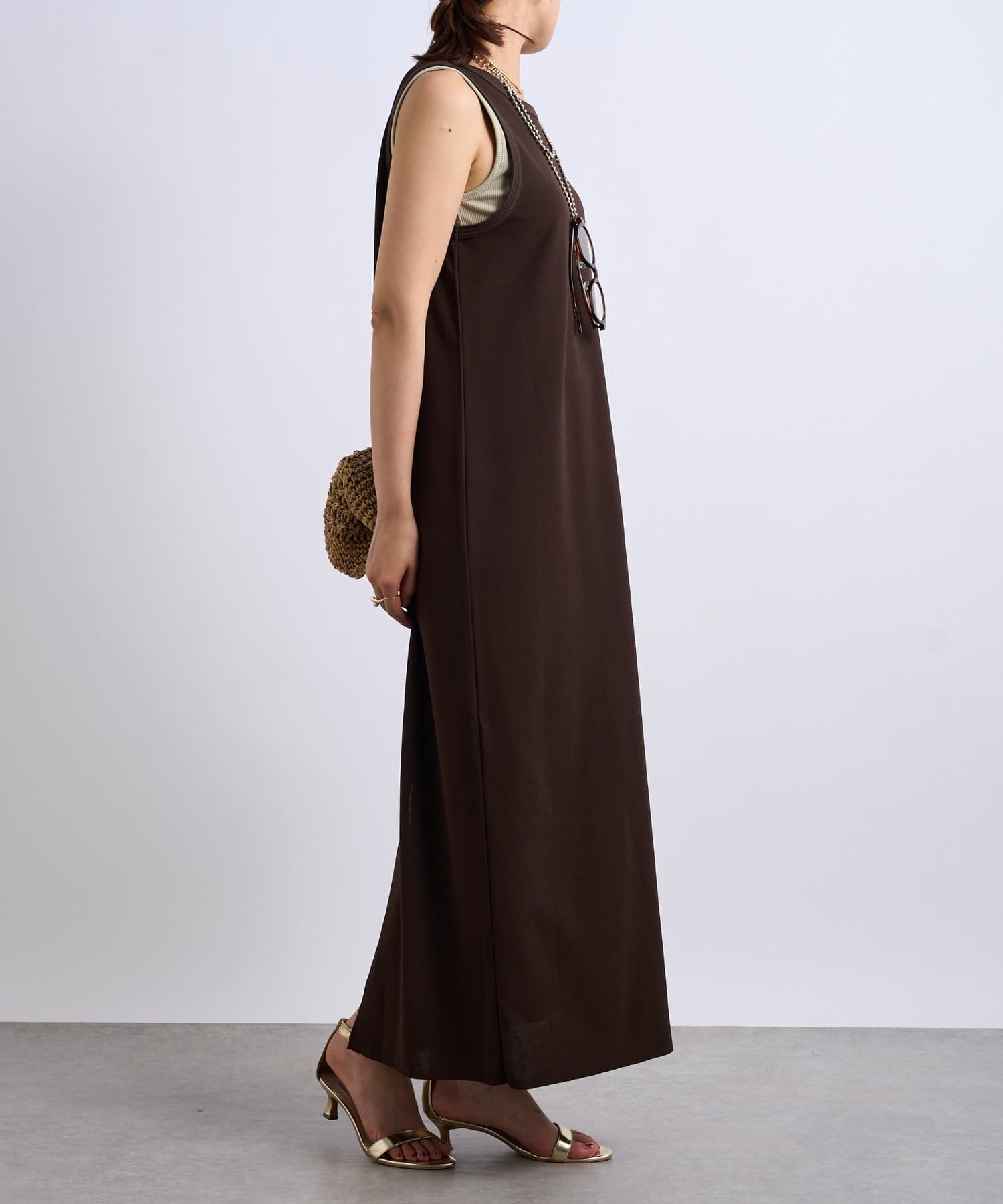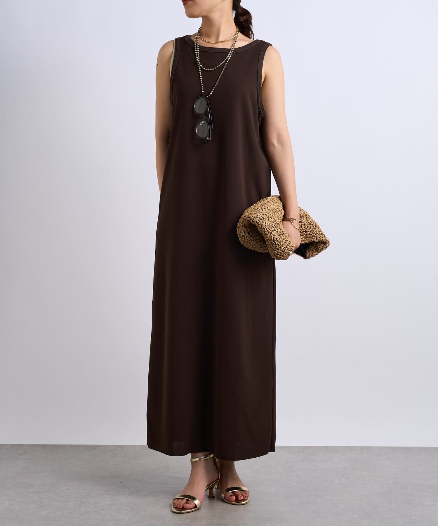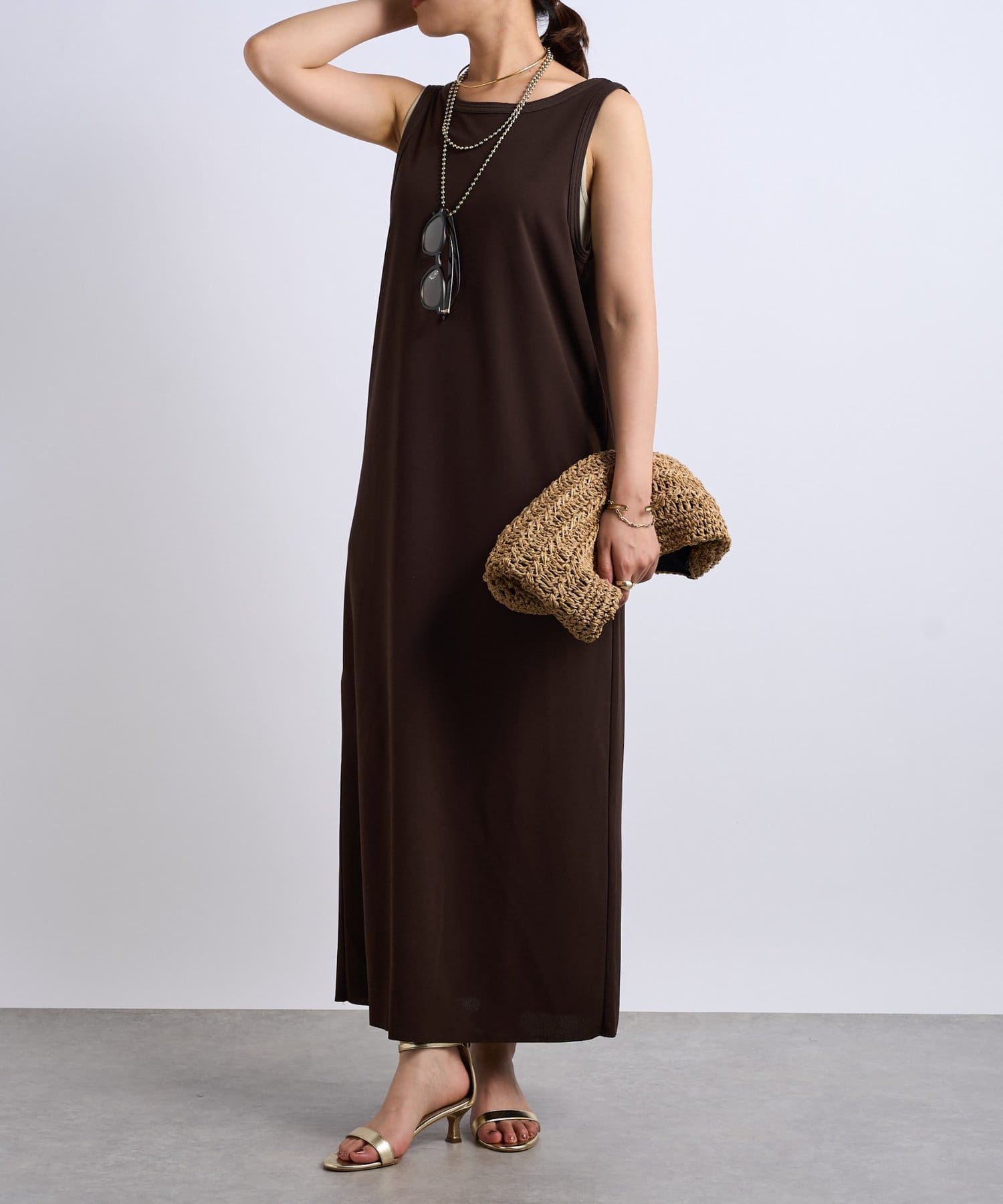 《オンオフ使える》カットジョーゼットタンクワンピース