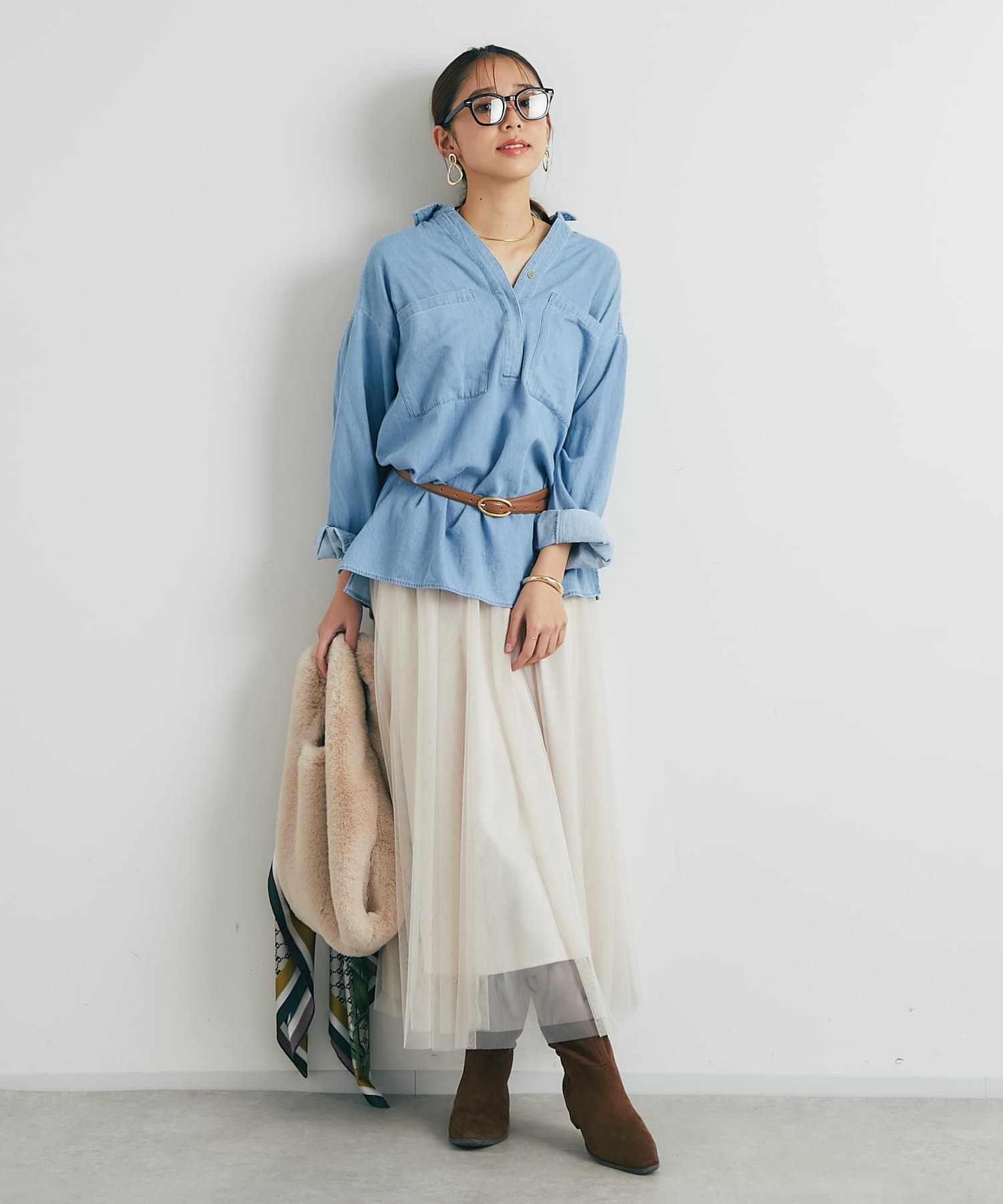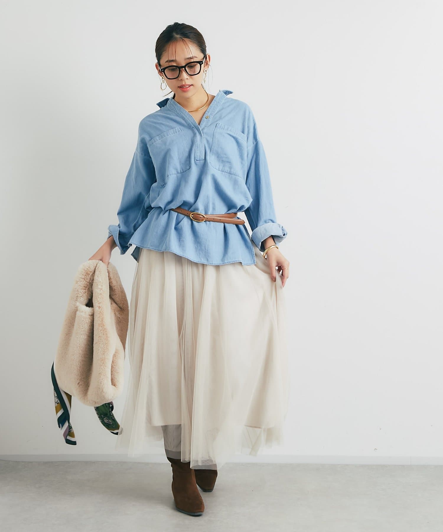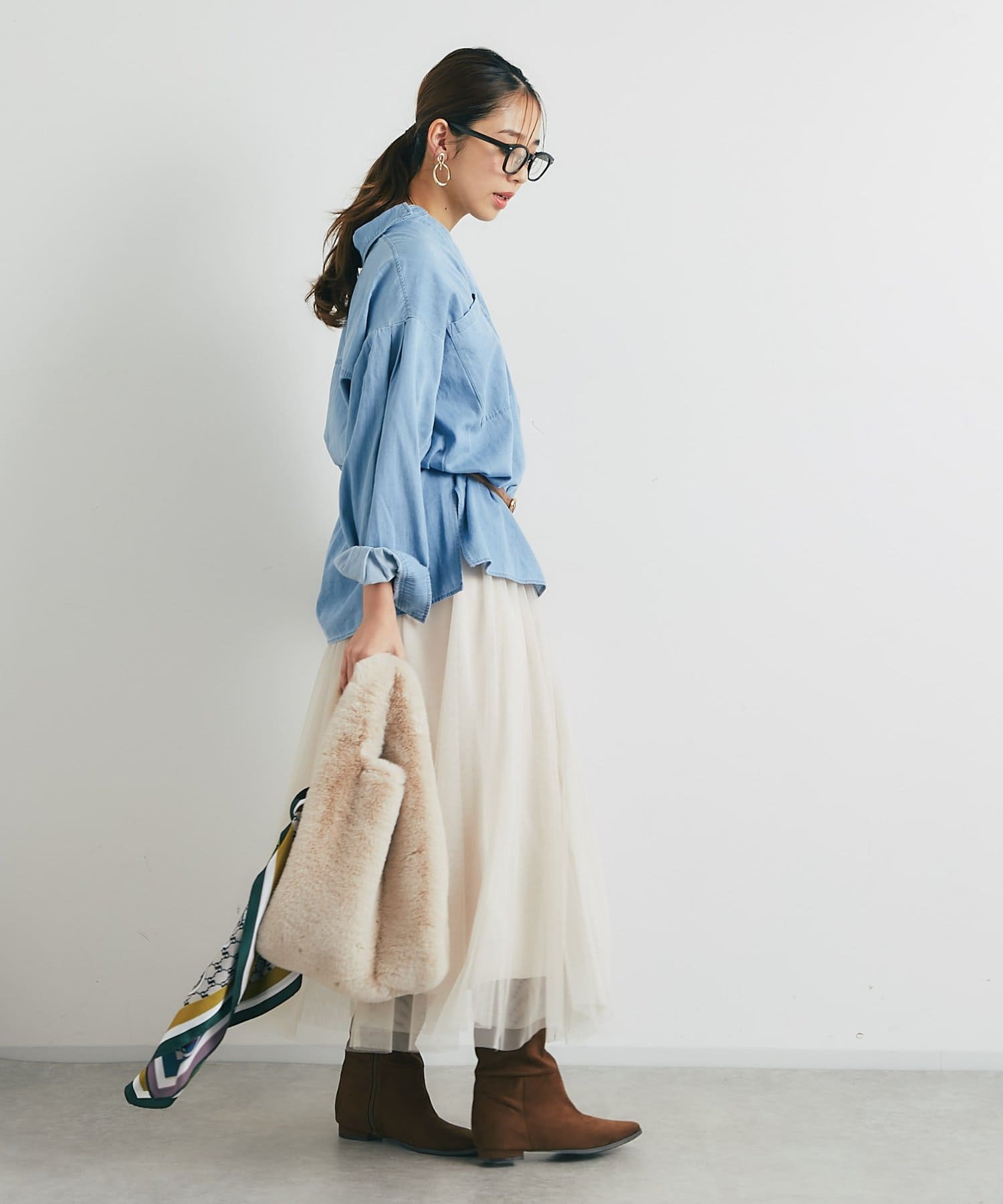 綺麗めブラウスやカットソーを合わせて、とびっきりフェミニンなスタイリングを楽しむのもおすすめです。