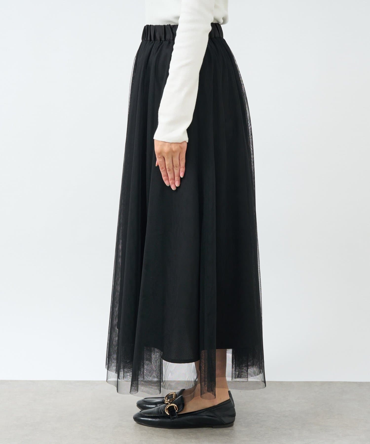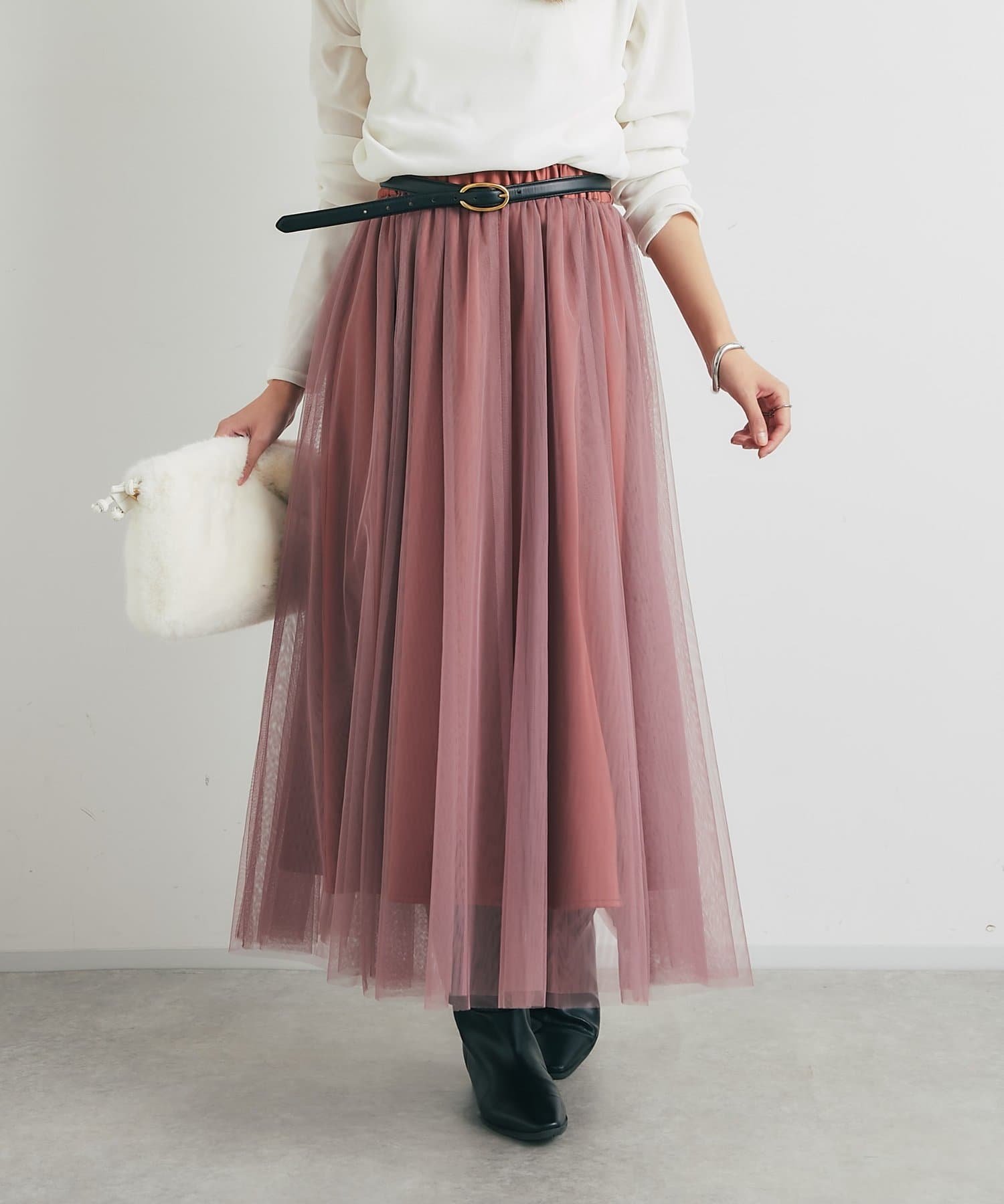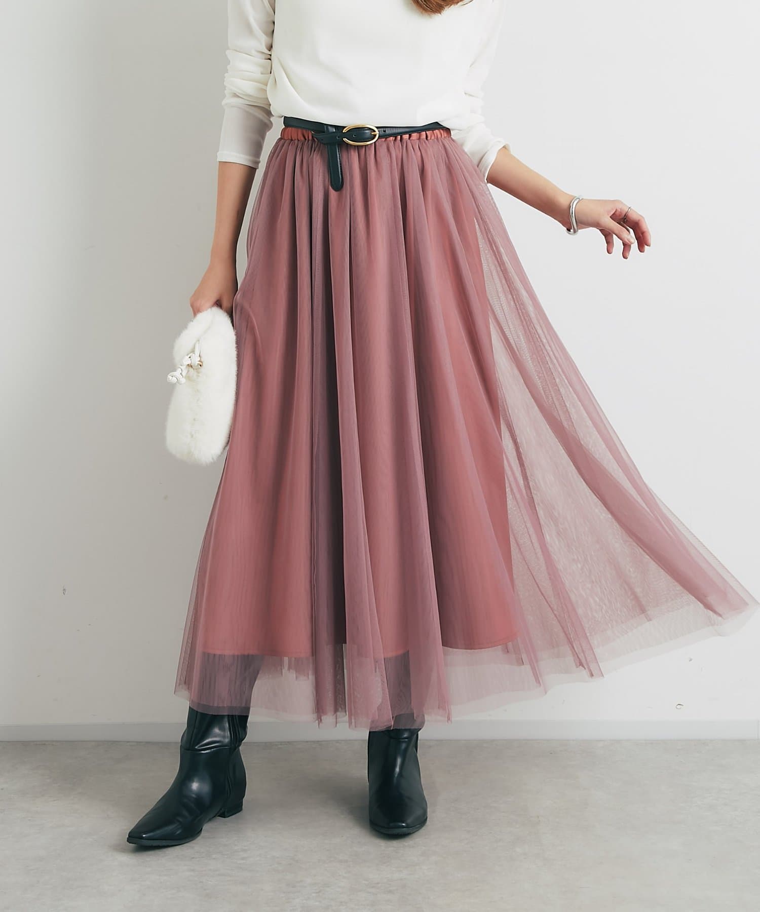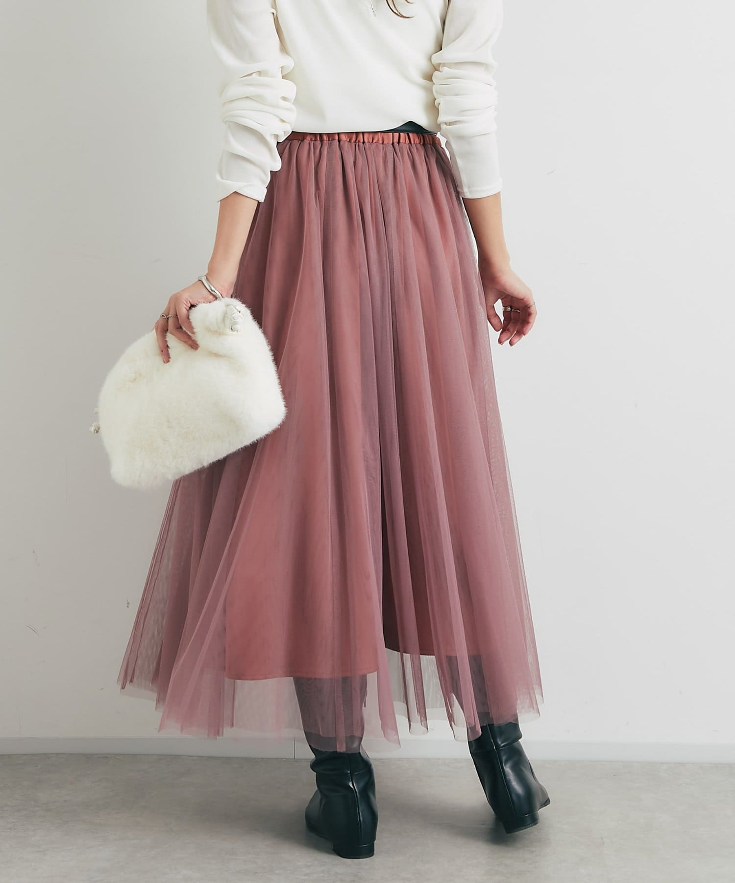 ・繊細なチュールを重ねた、ふわりと軽やかなシルエットで大人可愛い雰囲気のスカート♪