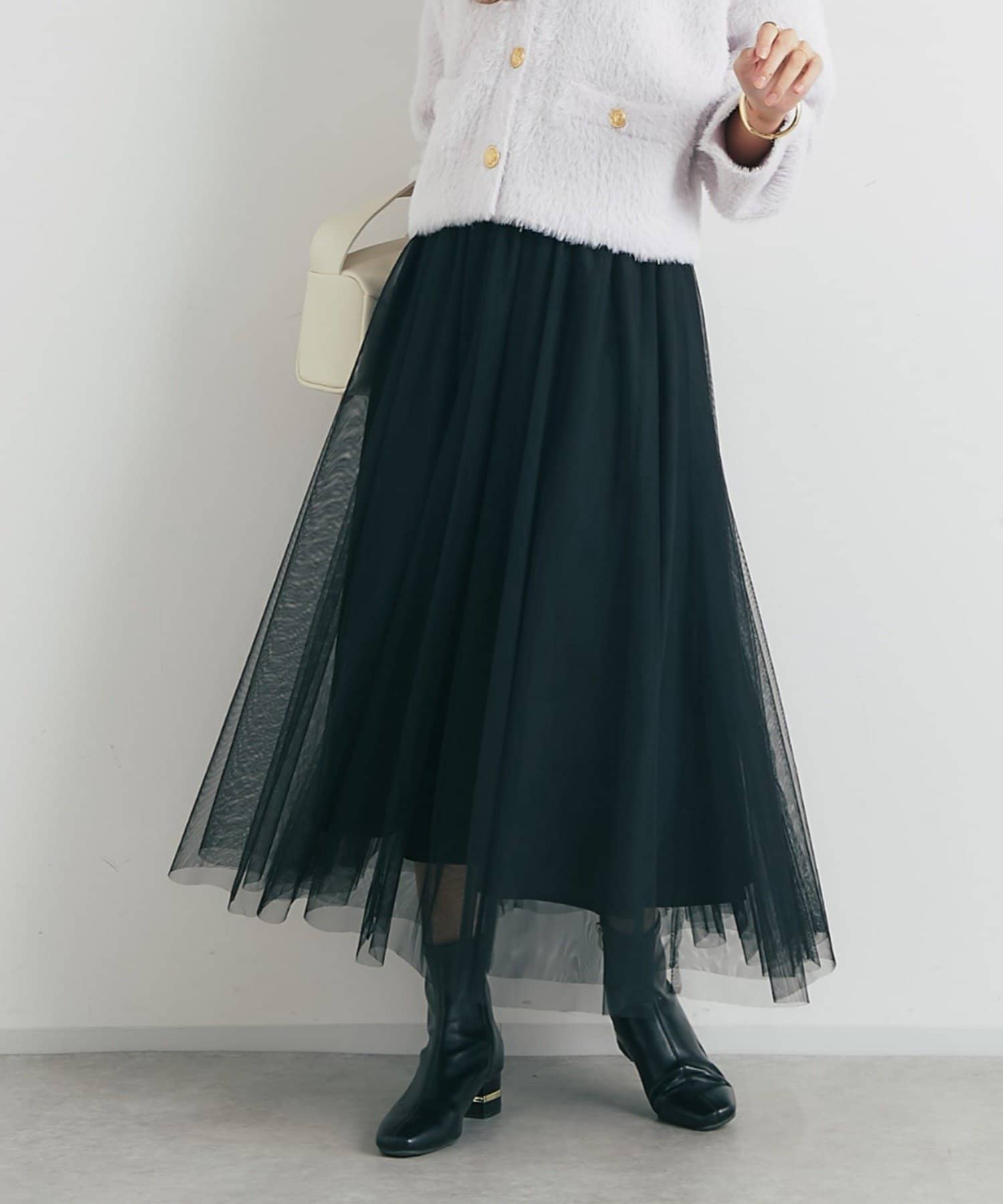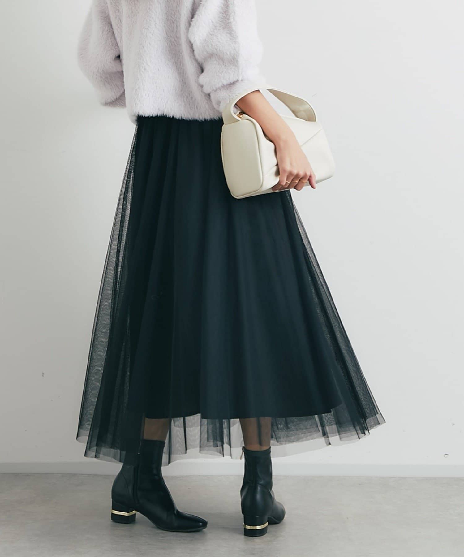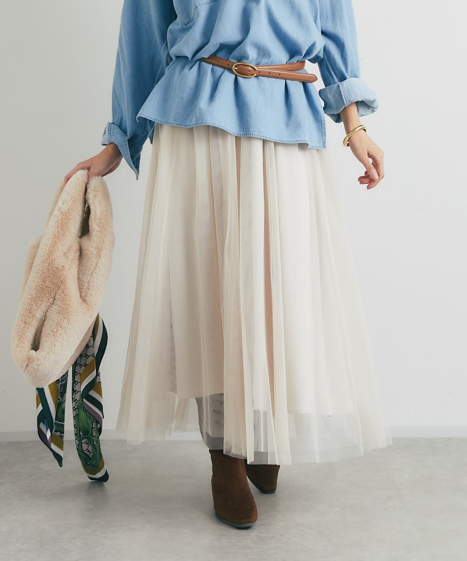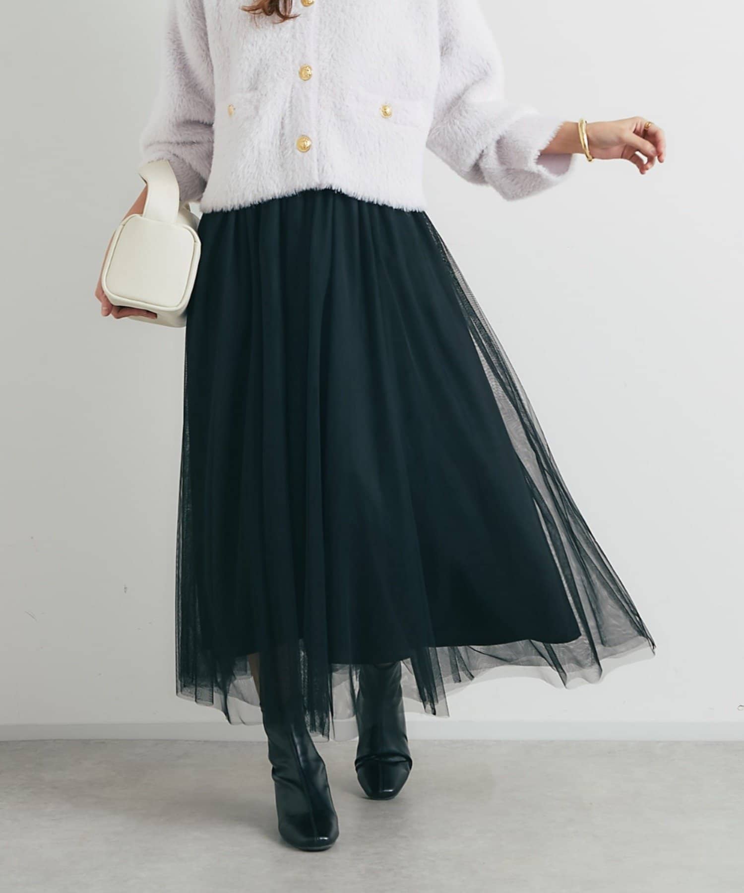 ・繊細なチュールを重ねた、ふわりと軽やかなシルエットで大人可愛い雰囲気のスカート♪