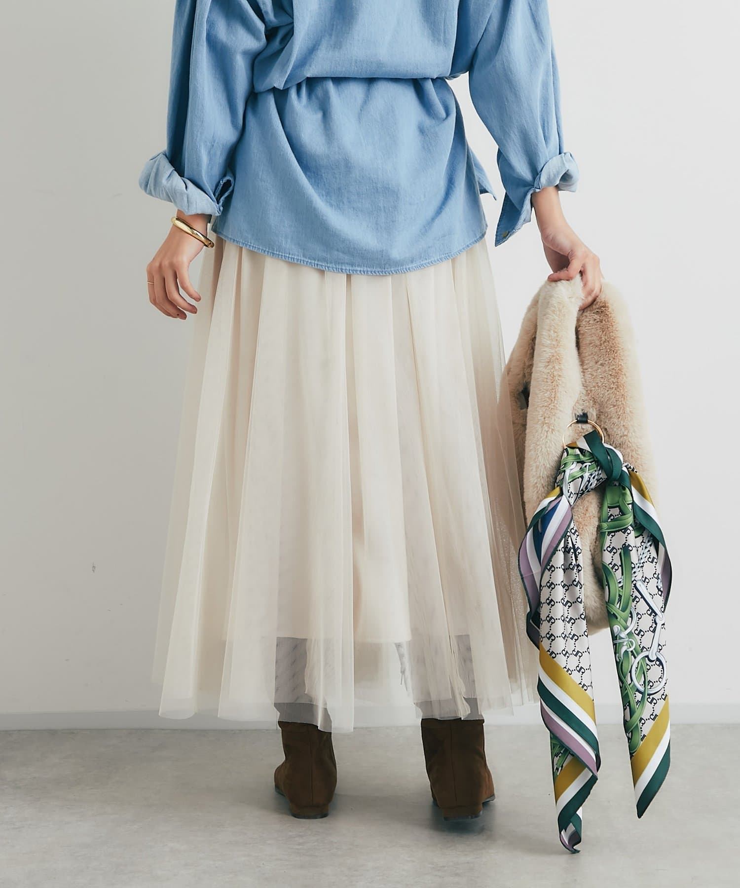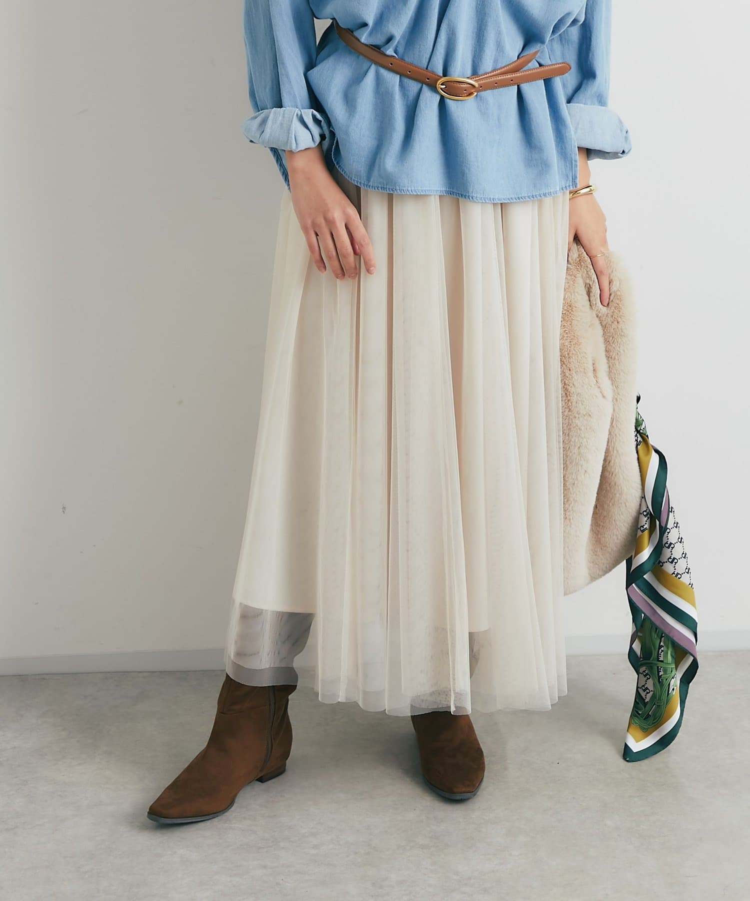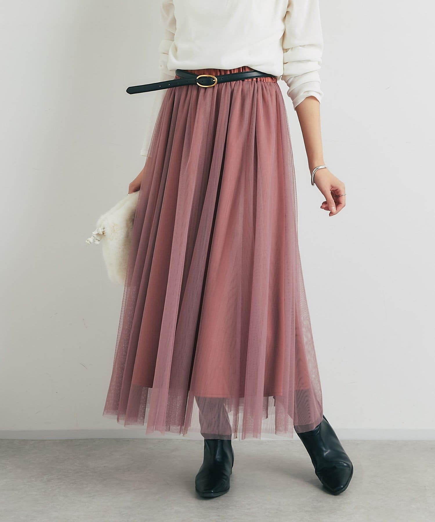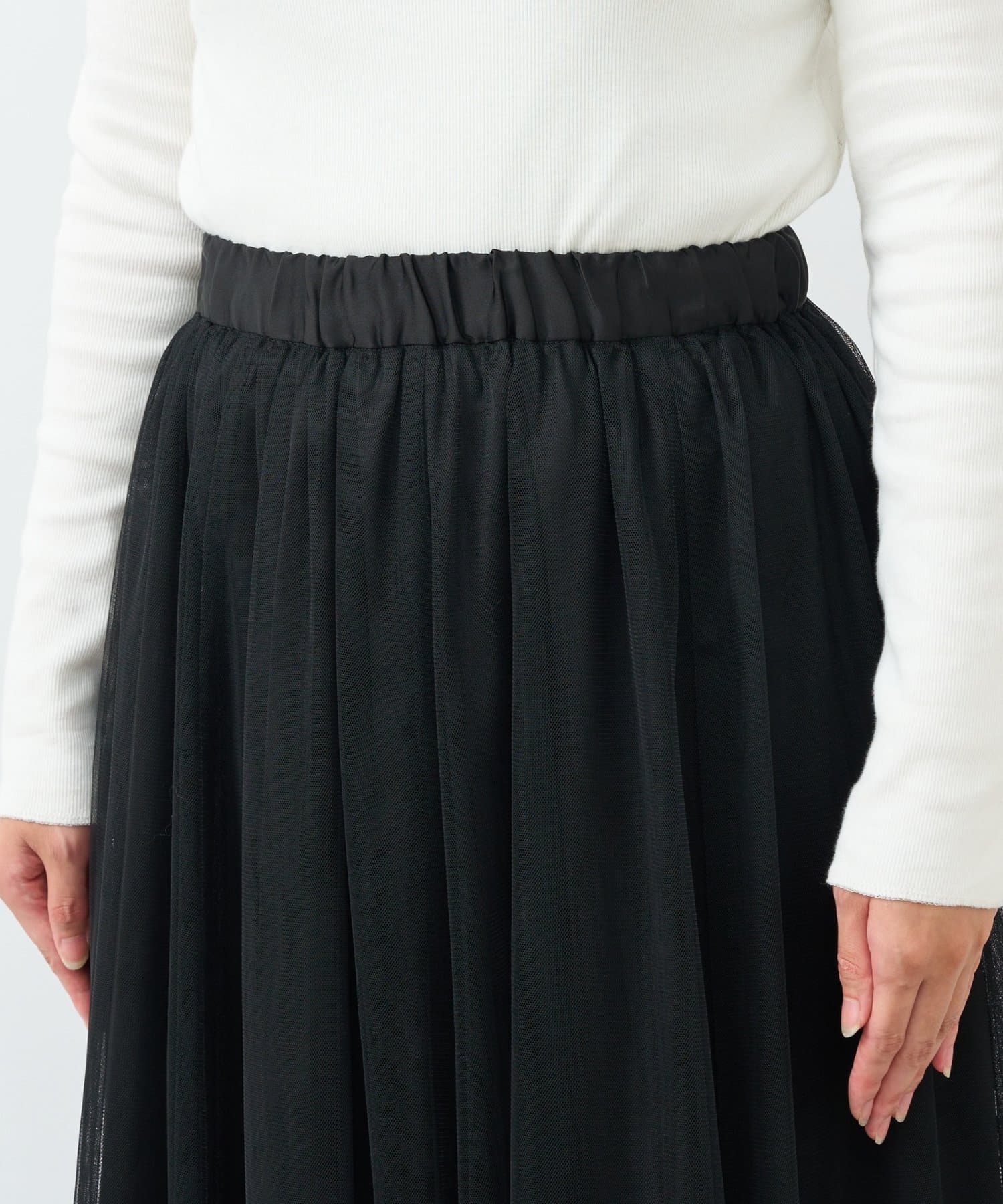 ・繊細なチュールを重ねた、ふわりと軽やかなシルエットで大人可愛い雰囲気のスカート♪