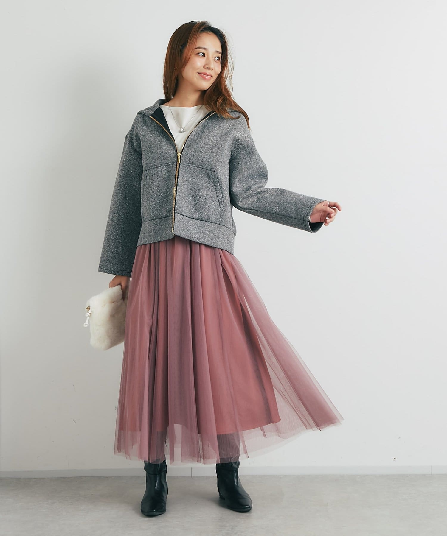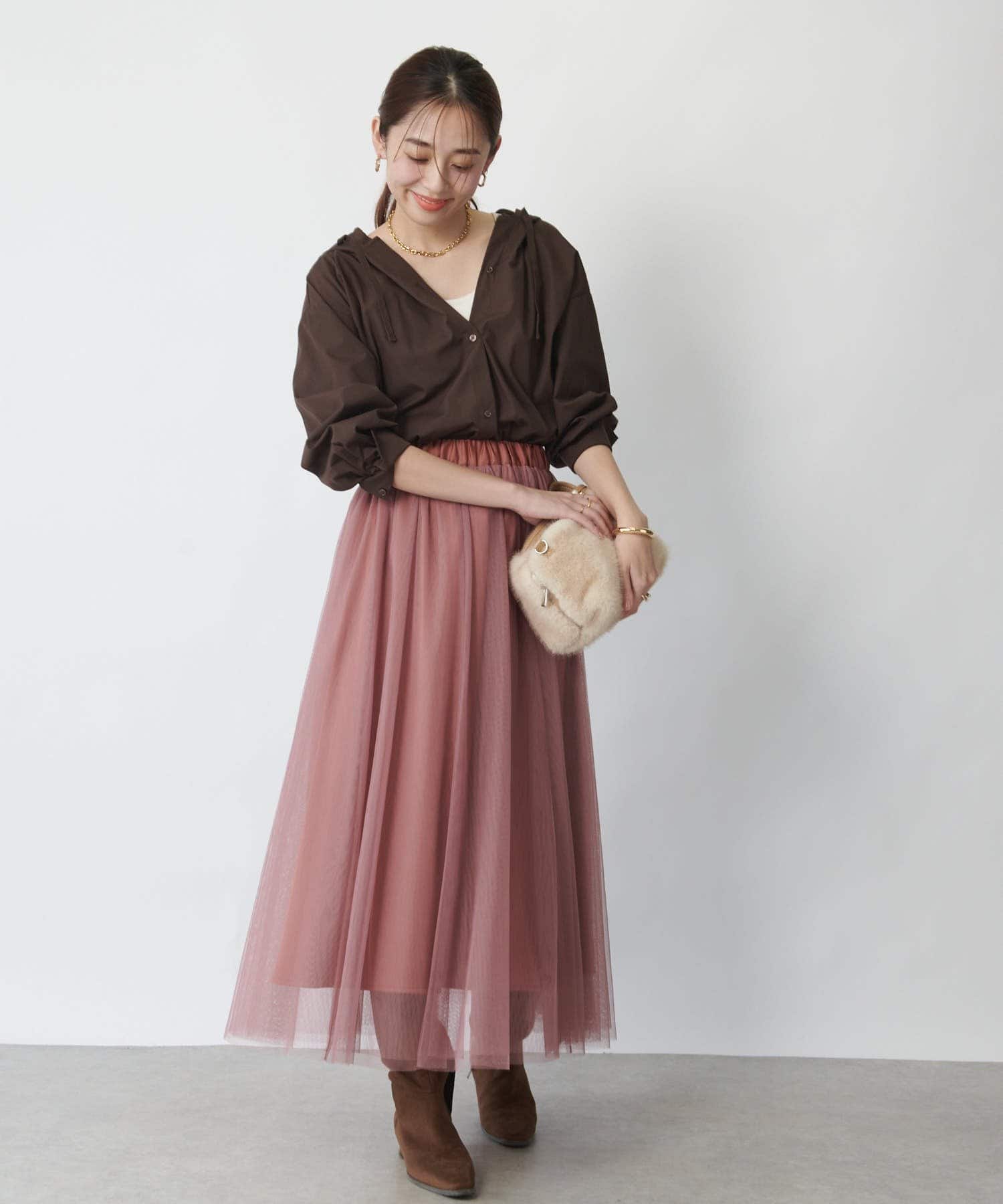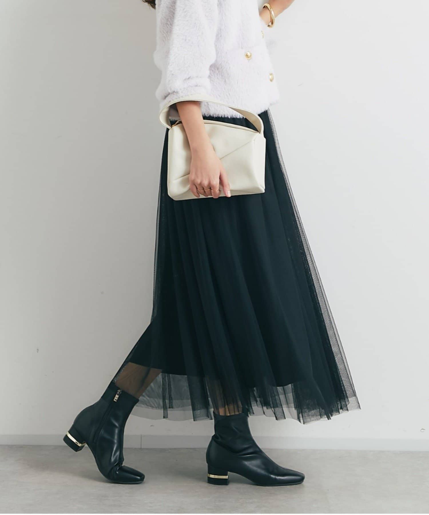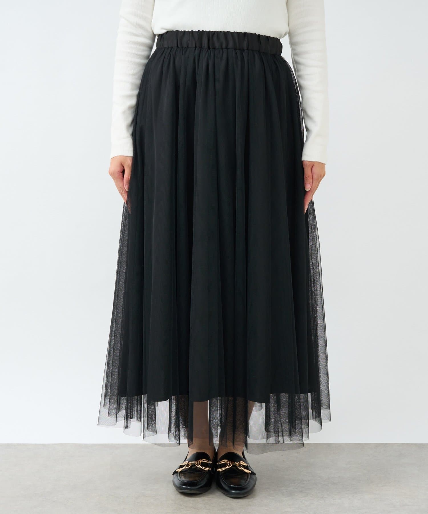 ・繊細なチュールを重ねた、ふわりと軽やかなシルエットで大人可愛い雰囲気のスカート♪