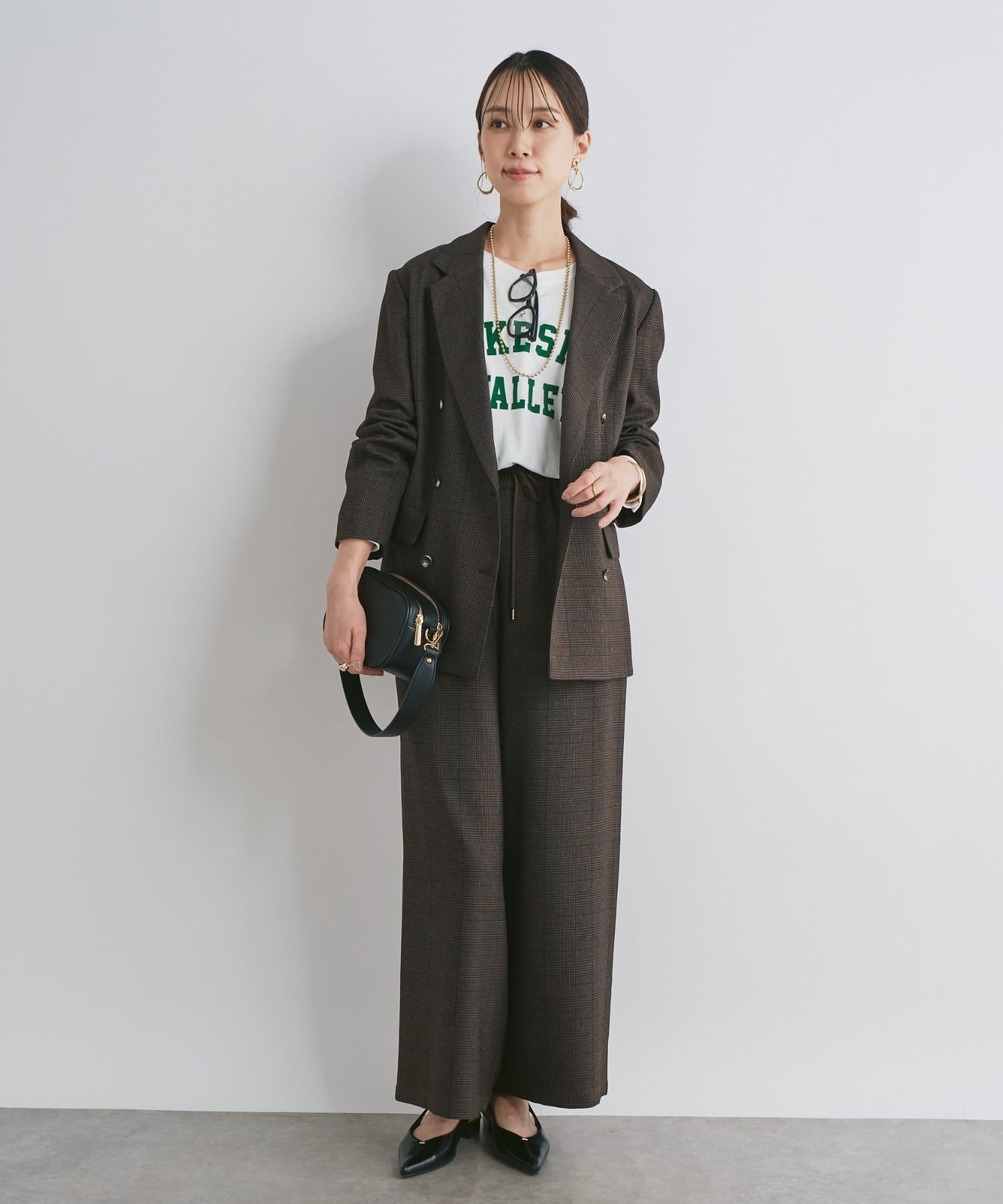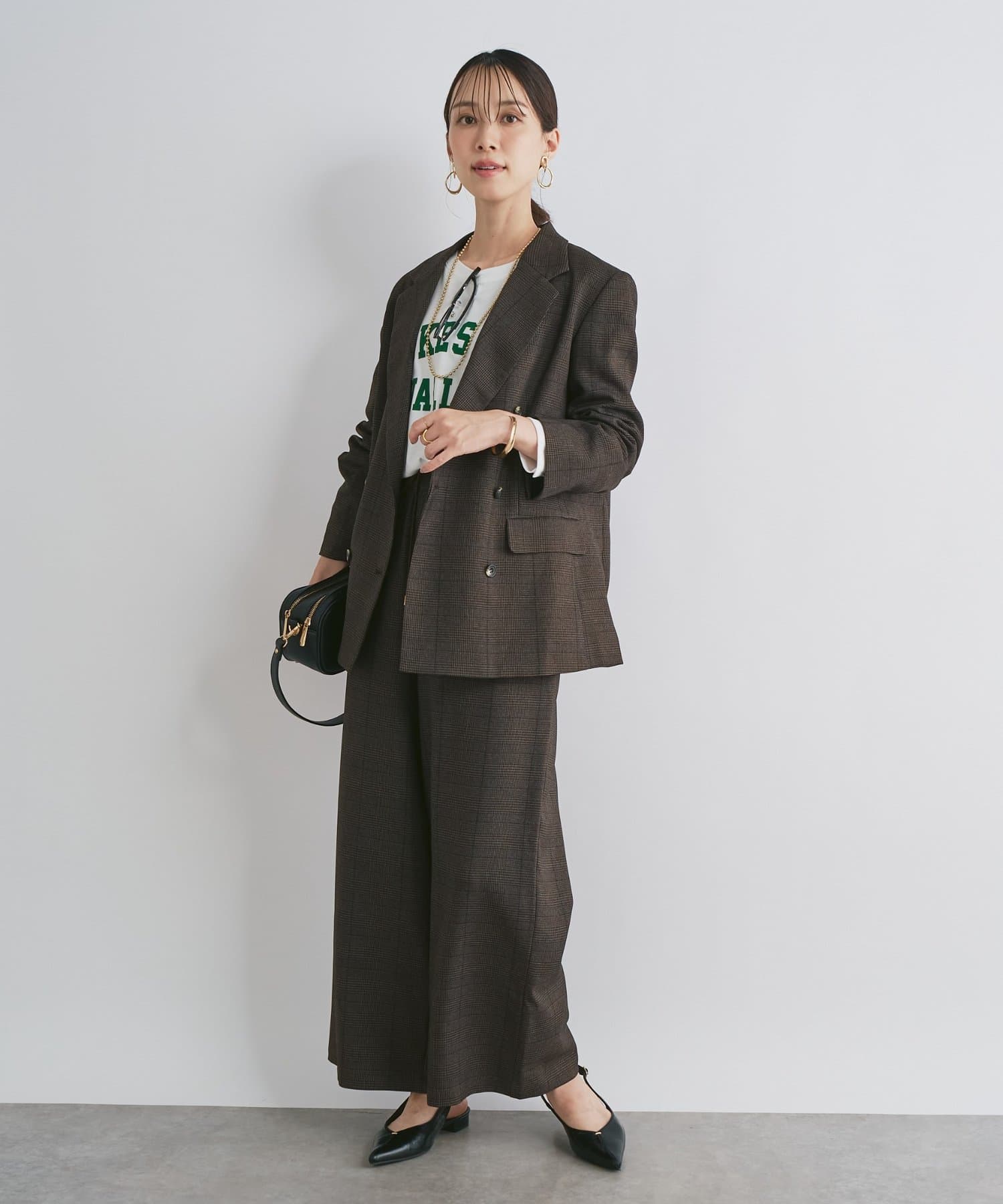セットアップコーデは、きちんと感のある雰囲気にまとめてくれるのでオフィスシーンでも活用いただけます。