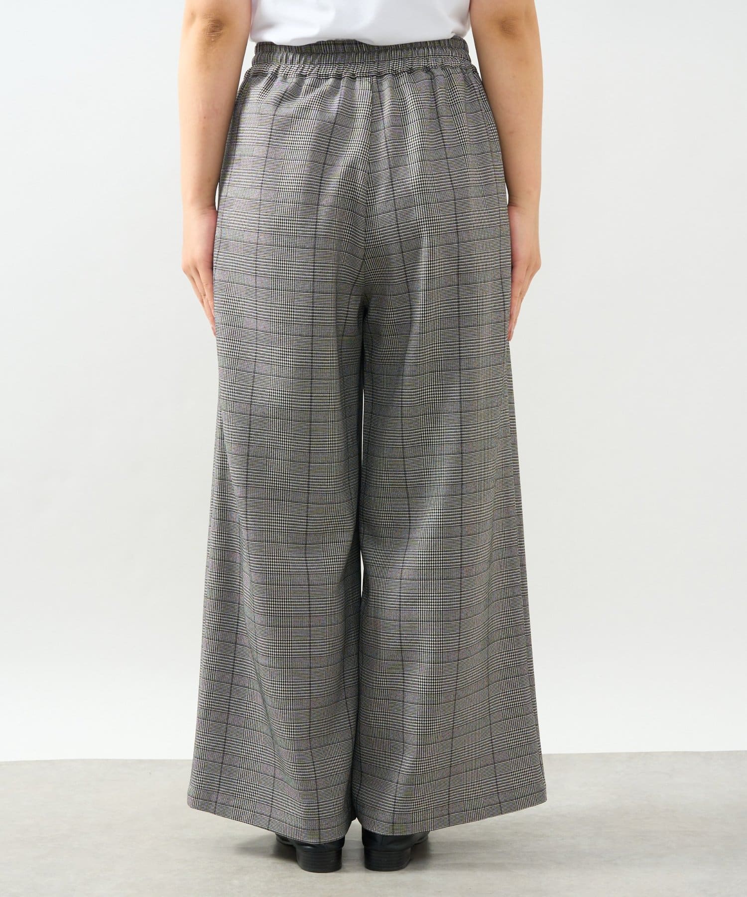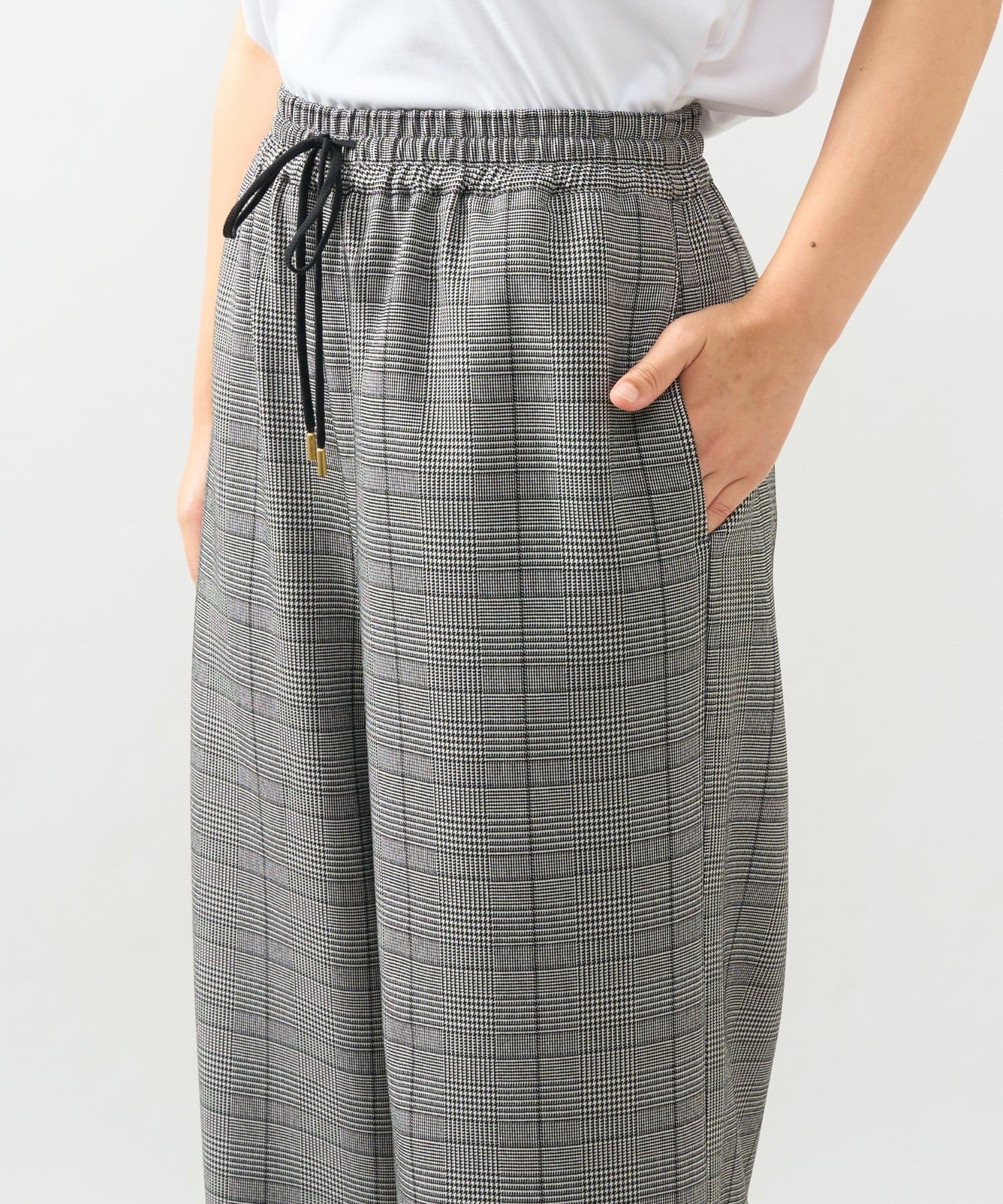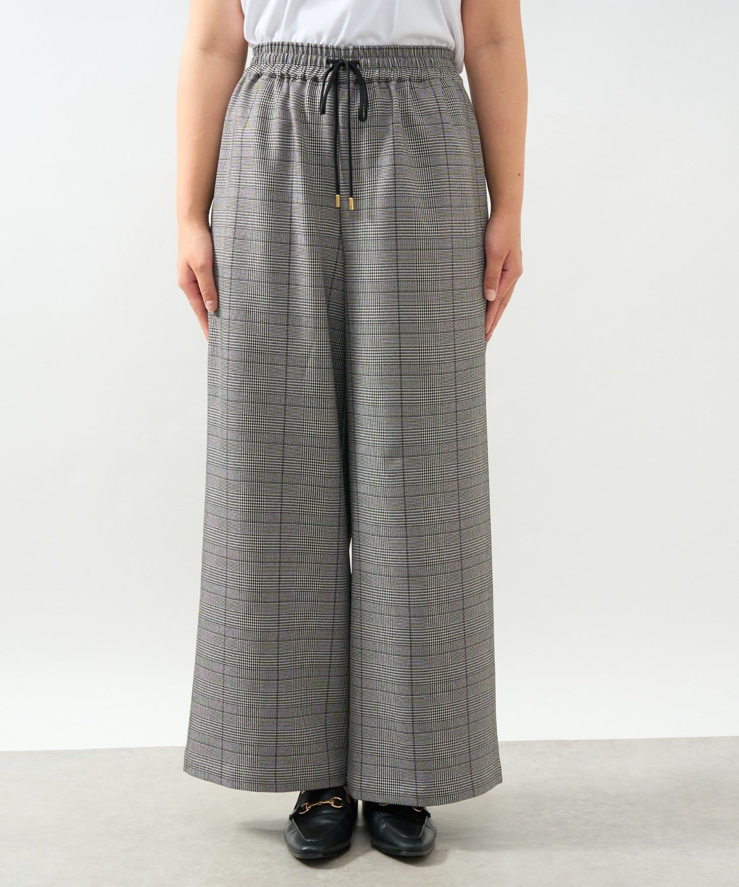 ・ クラシカルグレンチェック柄生地で仕立てられており、ウエストゴムで楽ちんな履き心地です。