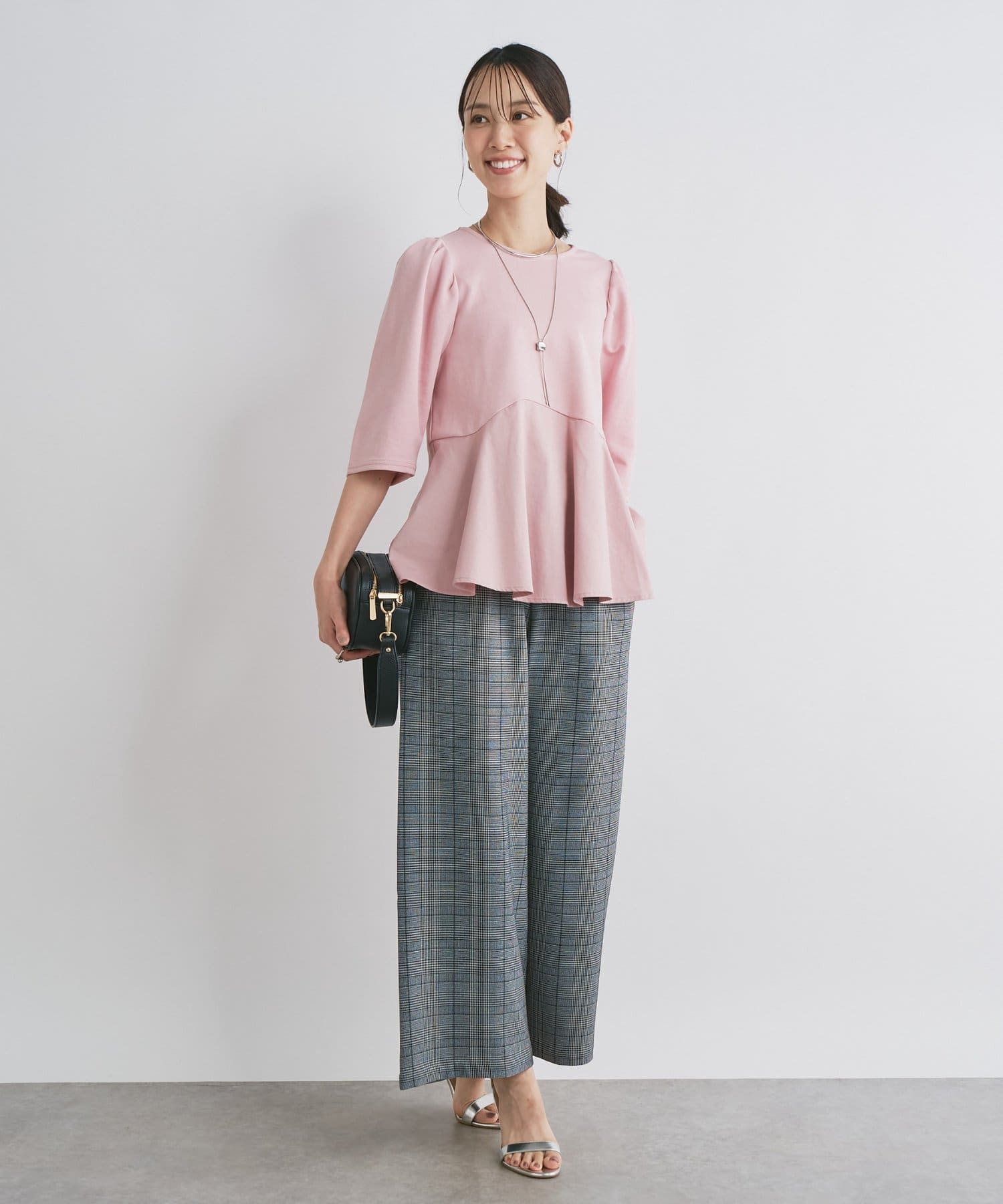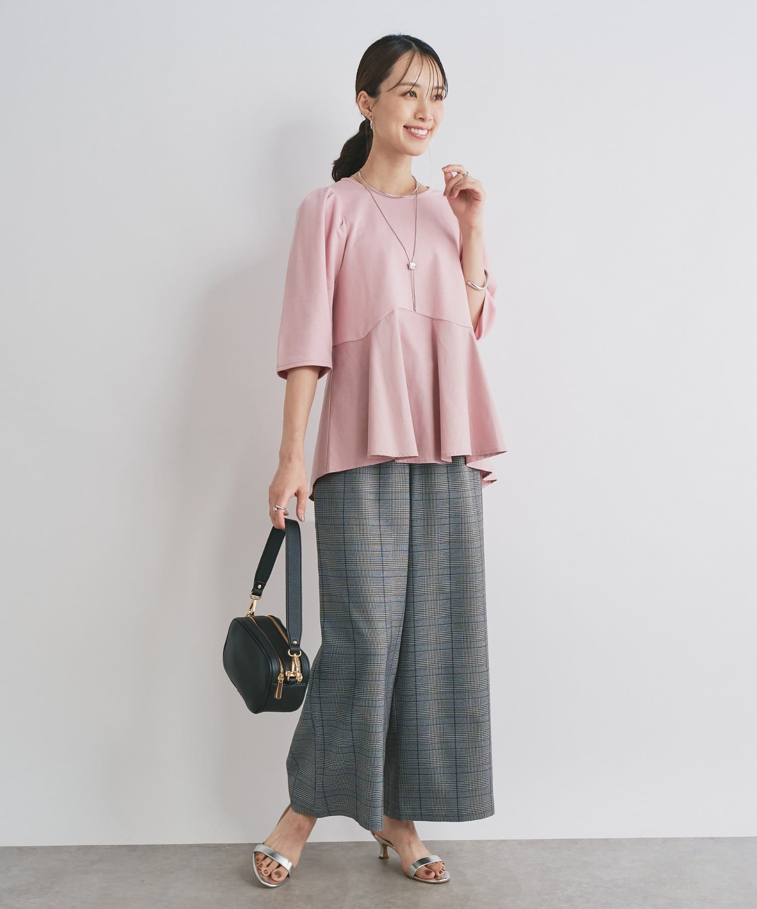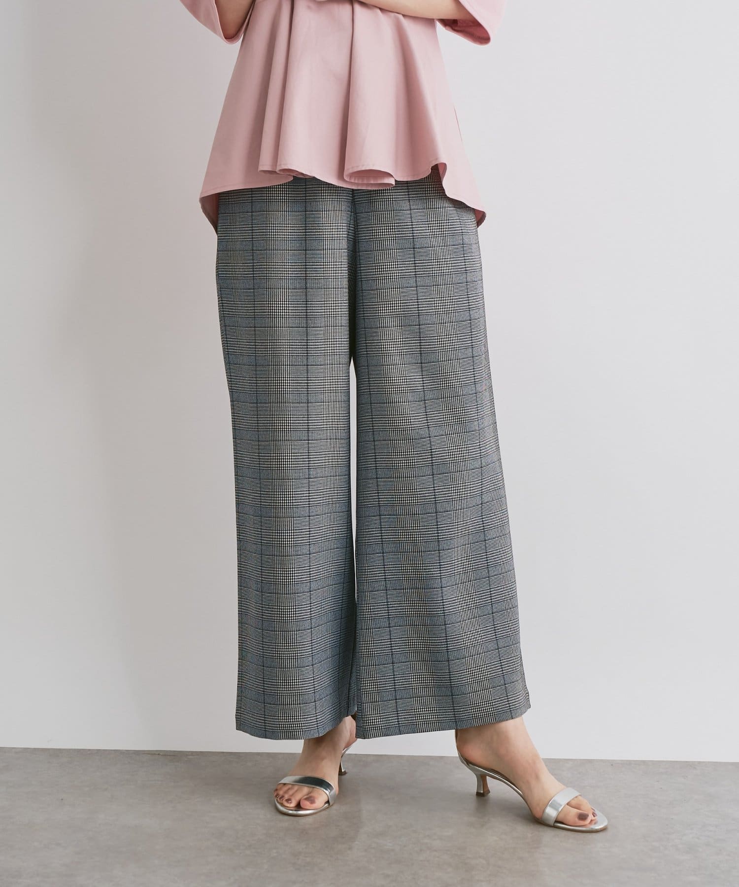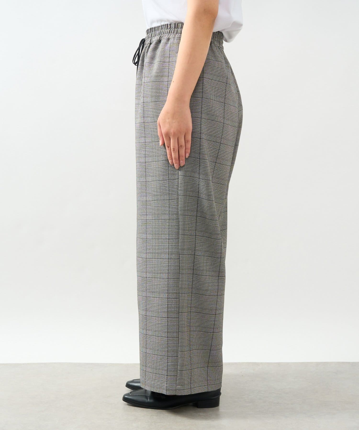 ・ クラシカルグレンチェック柄生地で仕立てられており、ウエストゴムで楽ちんな履き心地です。