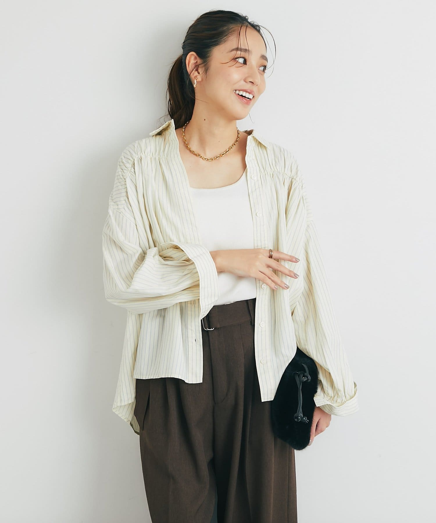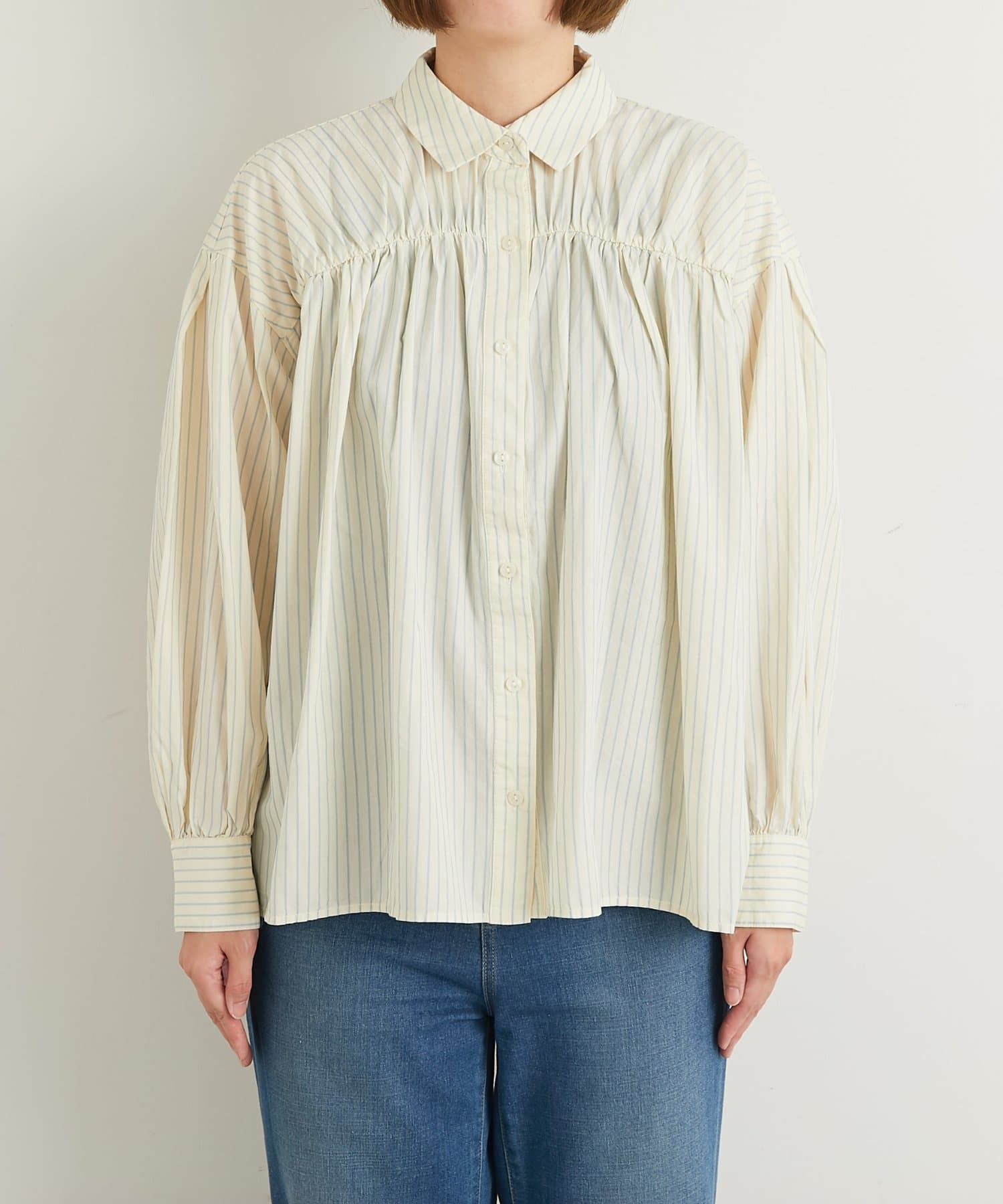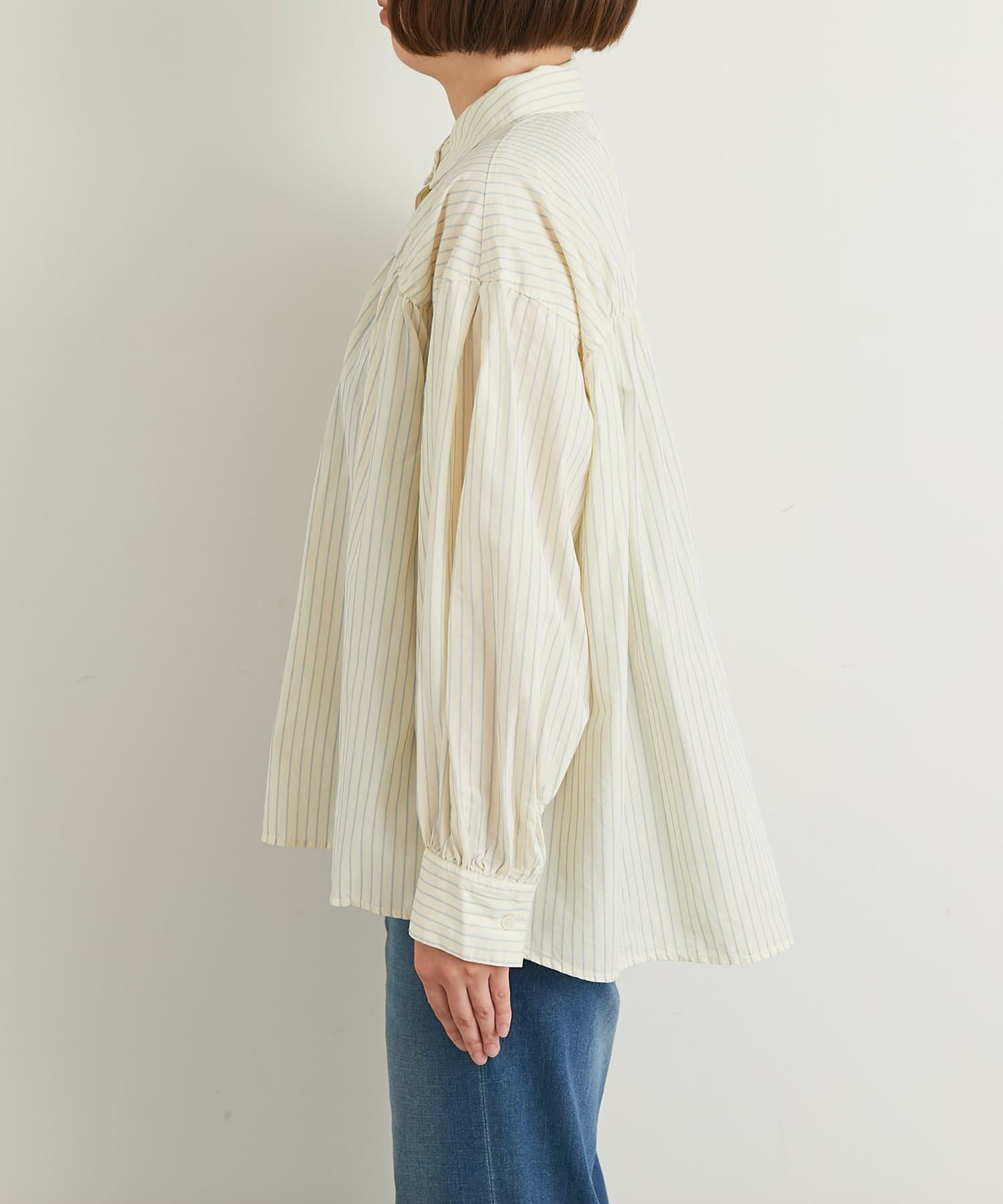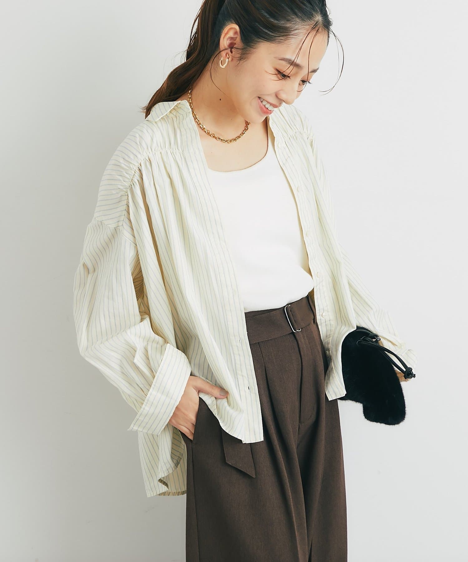《デイリーに活躍◎》ギャザーストライプシャツ