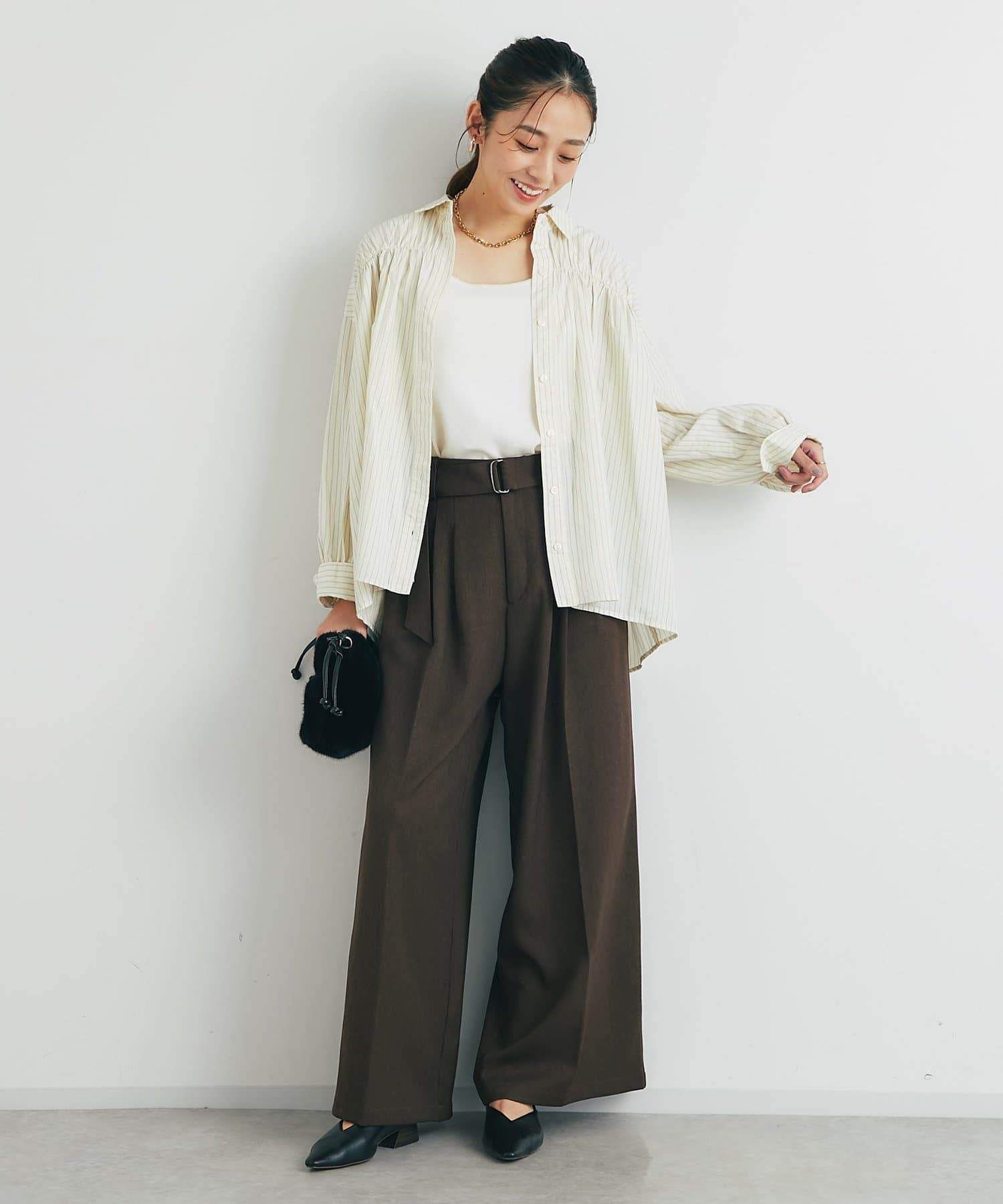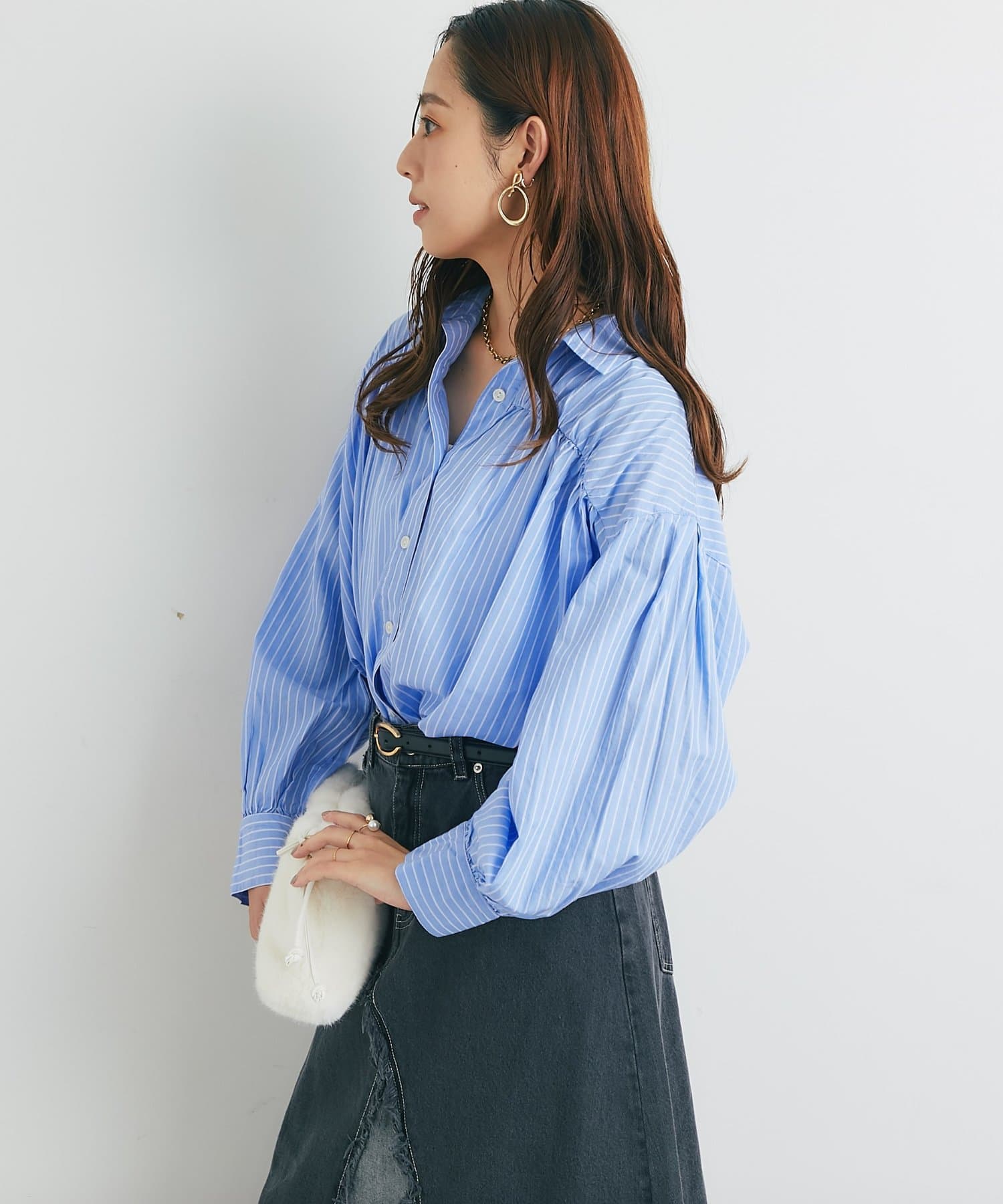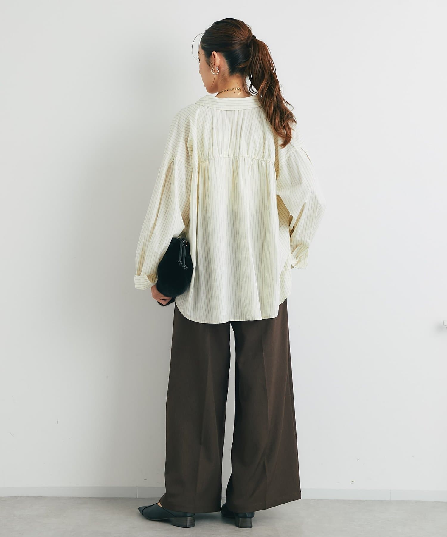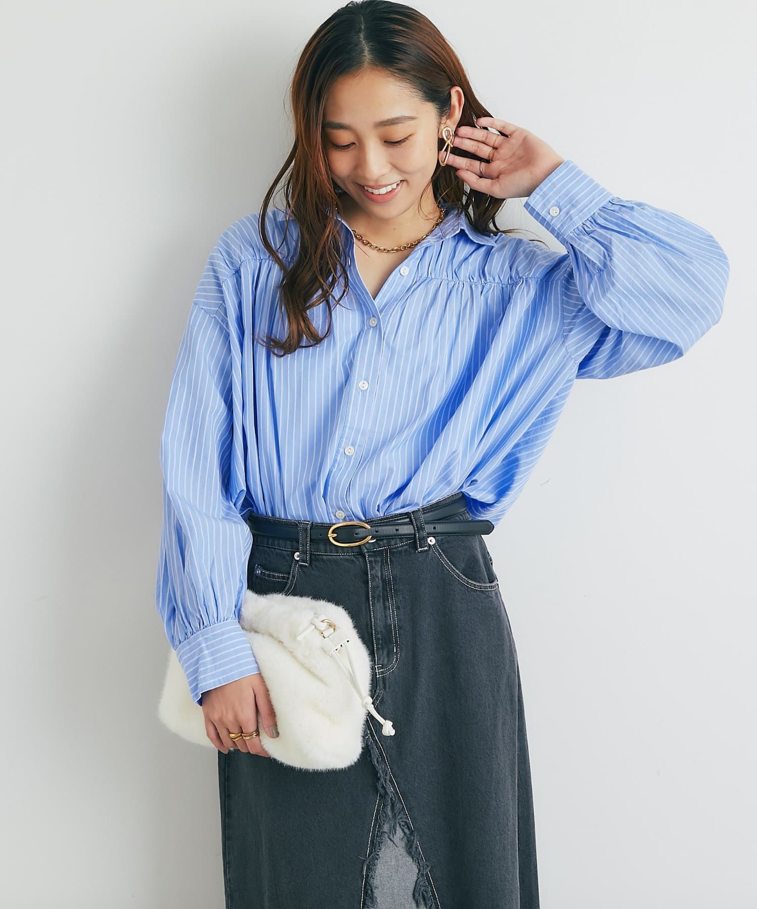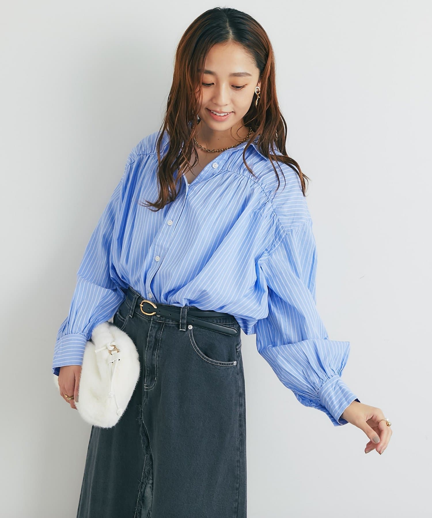 《デイリーに活躍◎》ギャザーストライプシャツ