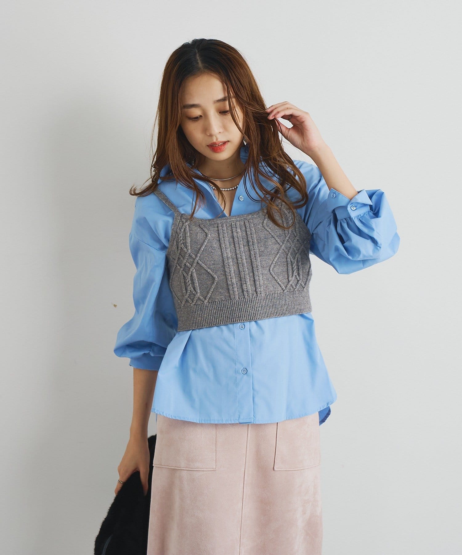《トレンドライクに◎》ニットビスチェsetハイカウントシャツ