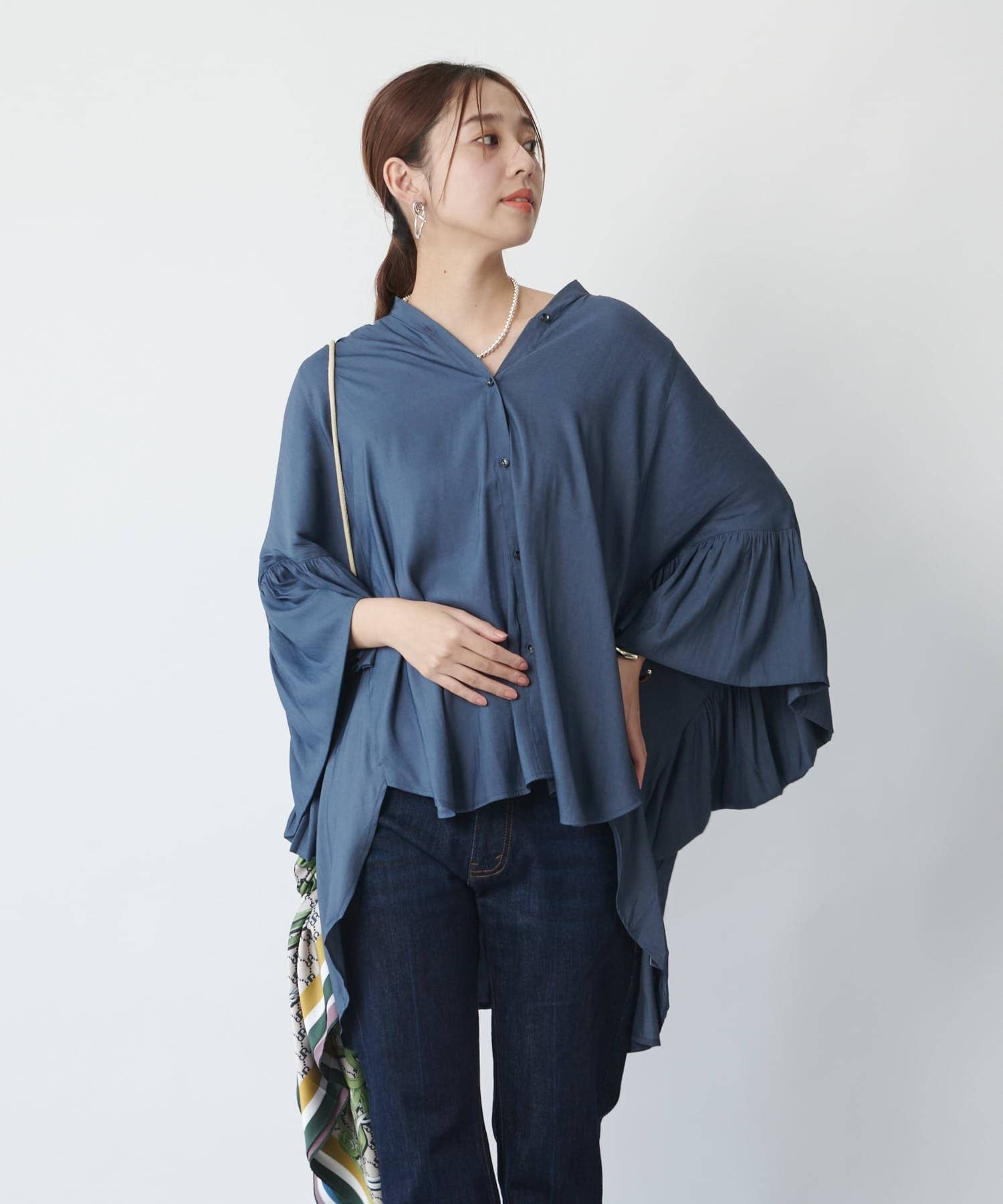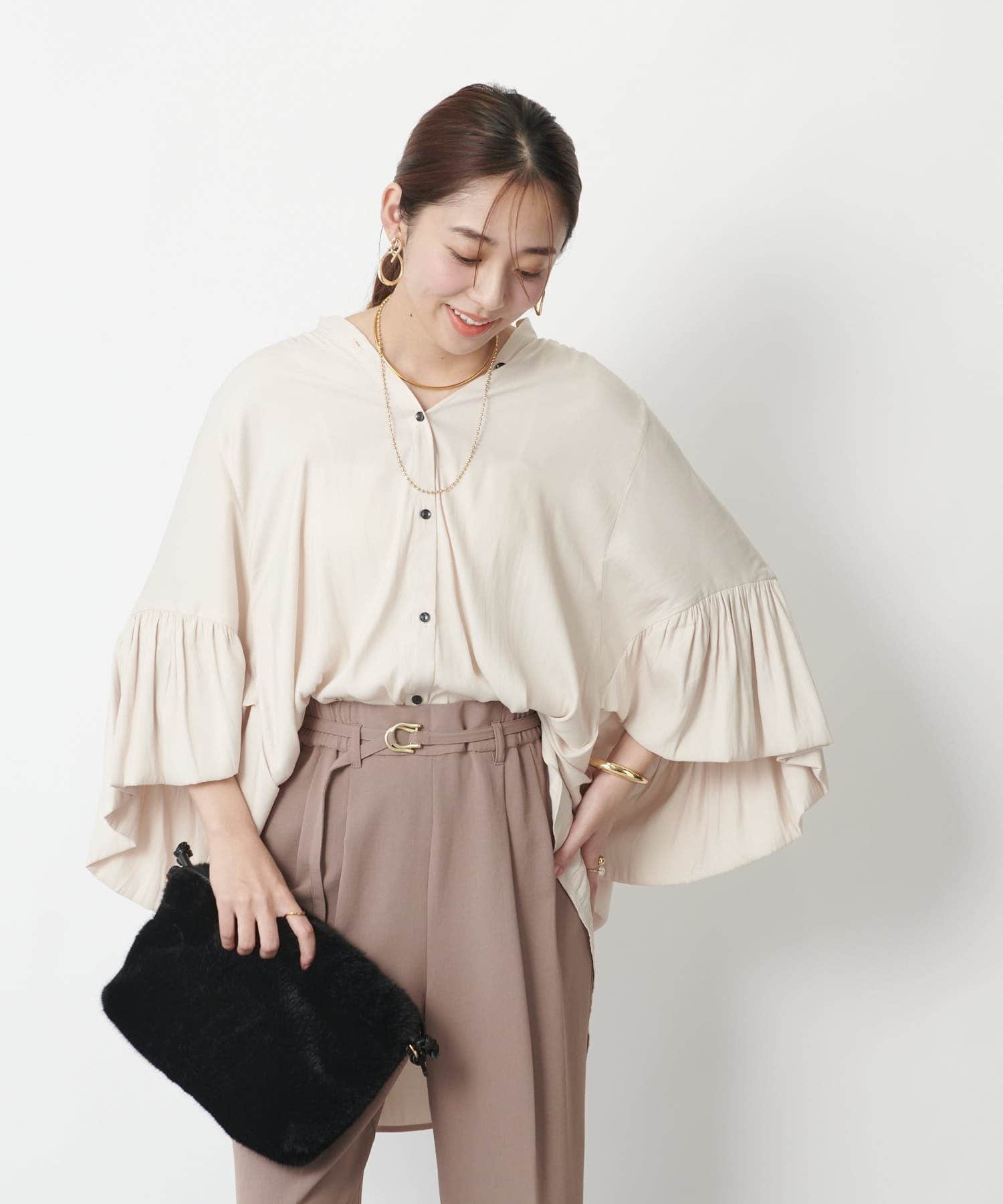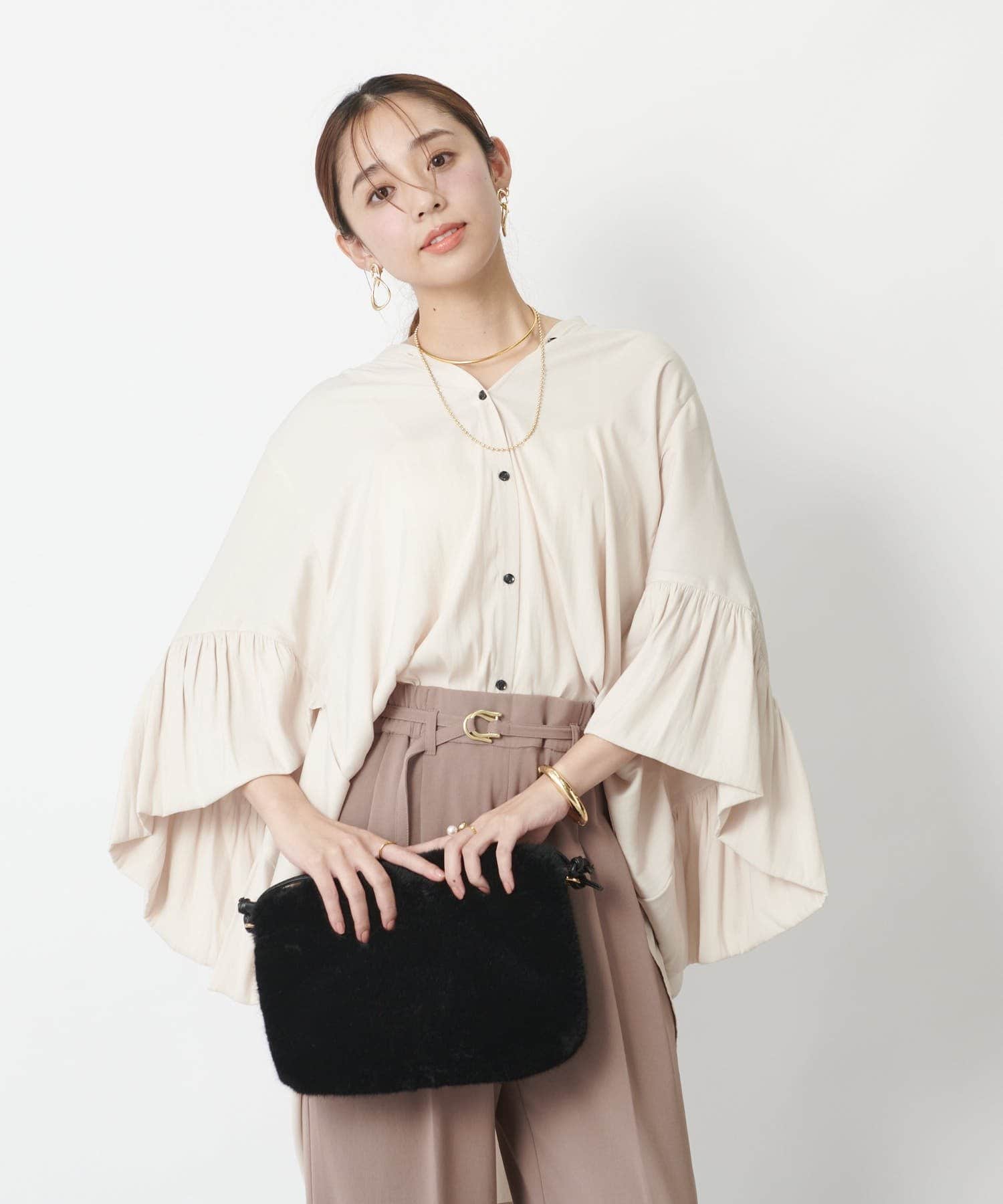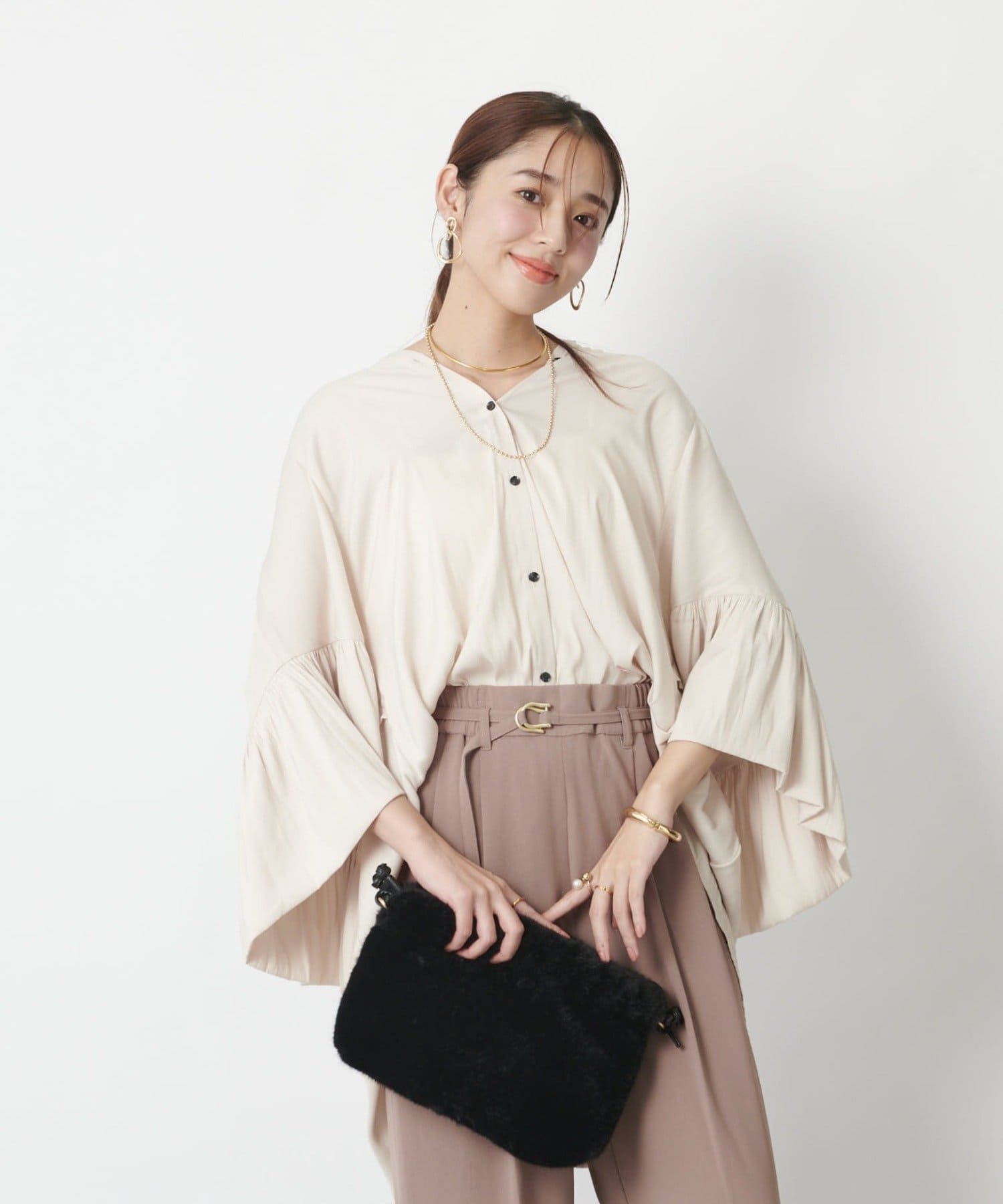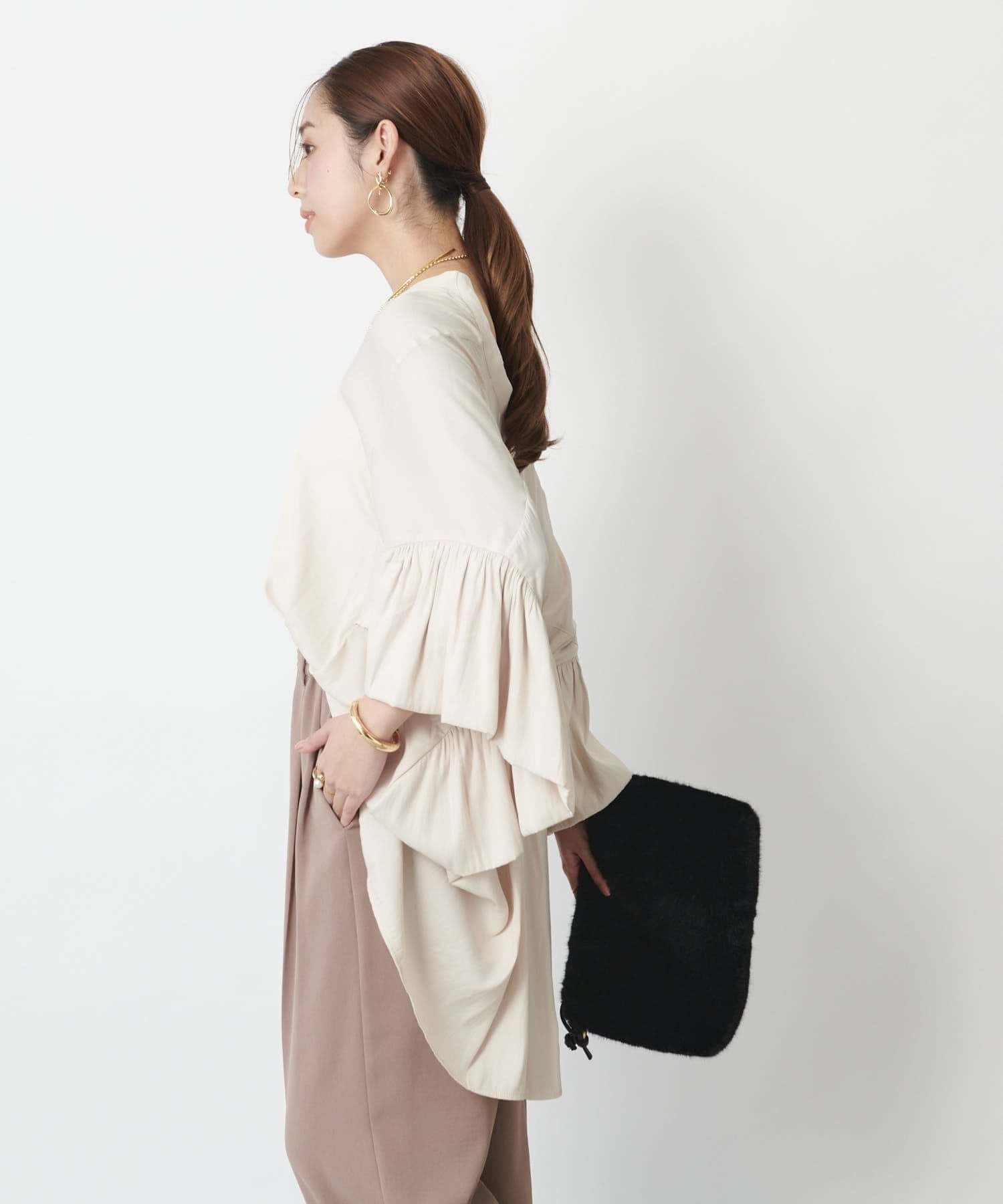 ・フレアーに広がるスリーブデザインが目を惹く、大人可愛いムードを盛り上げてくれるブラウス♪
