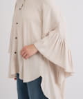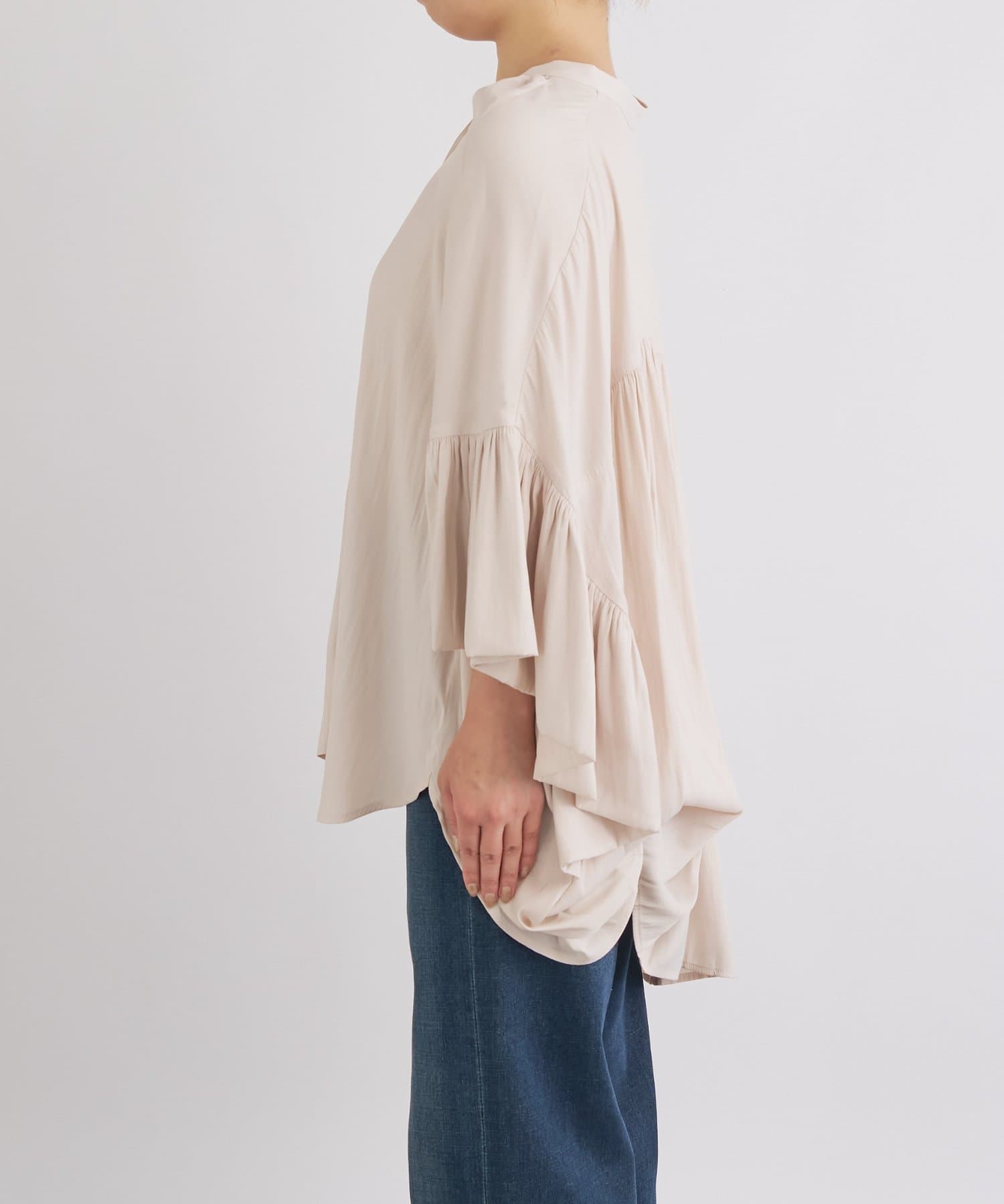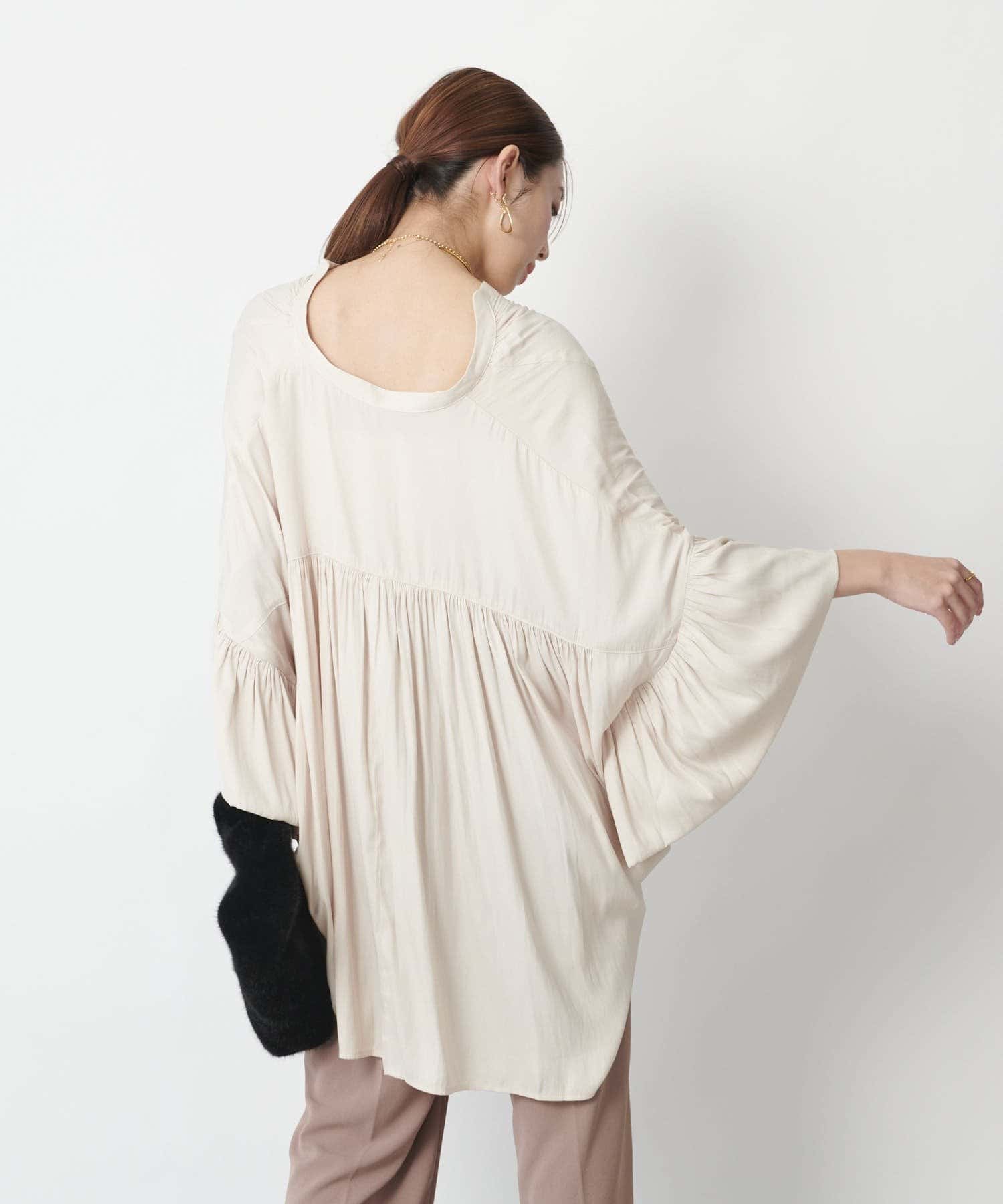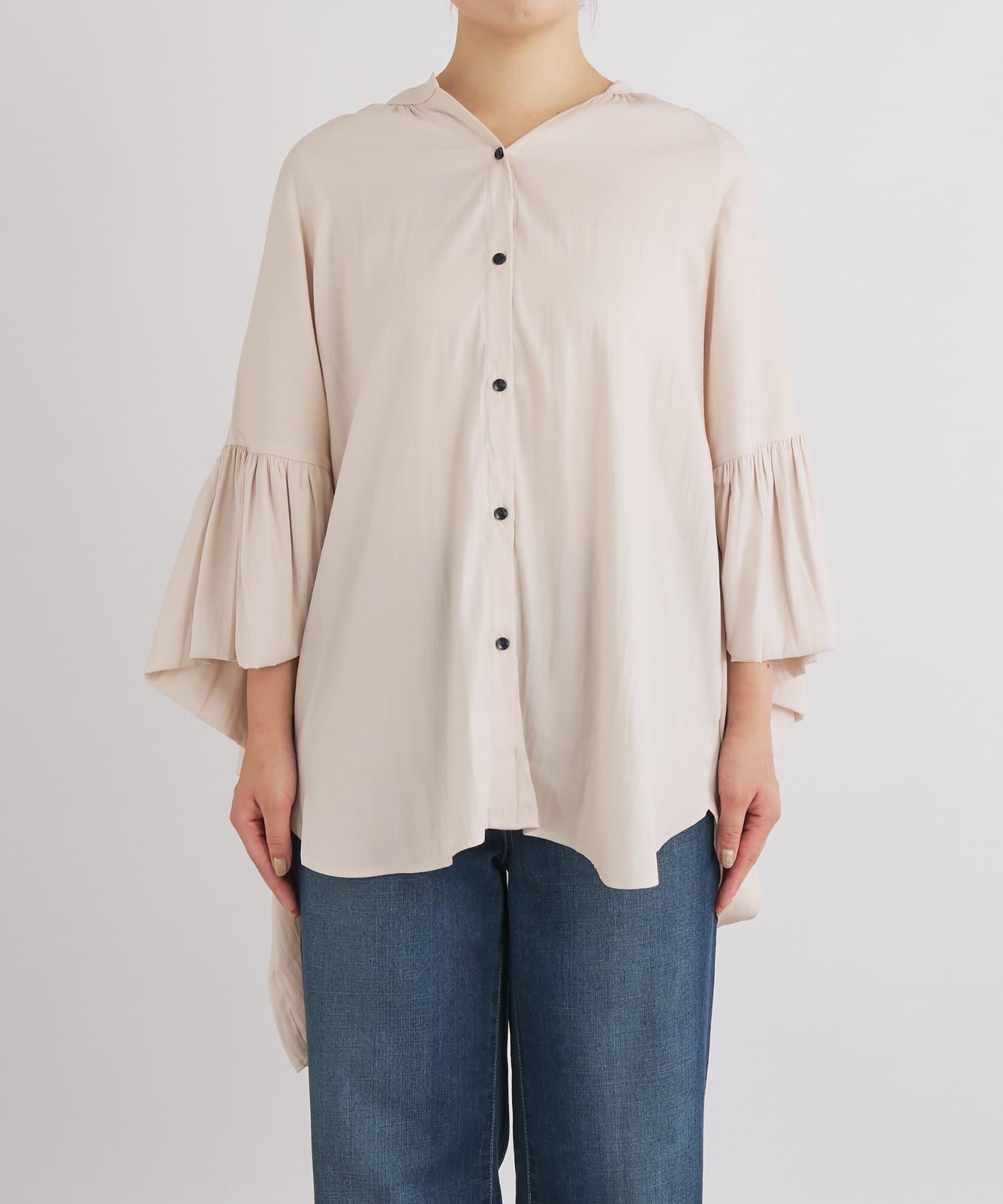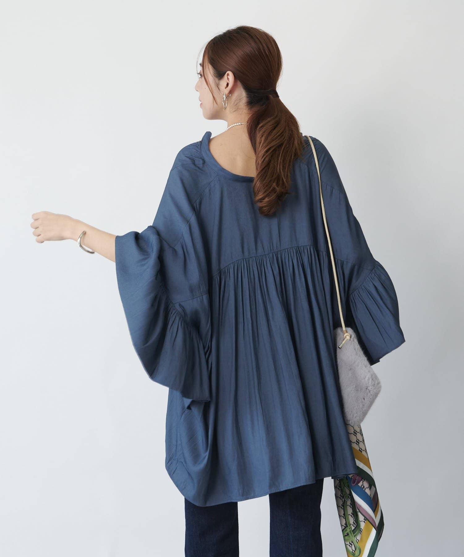 ・フレアーに広がるスリーブデザインが目を惹く、大人可愛いムードを盛り上げてくれるブラウス♪