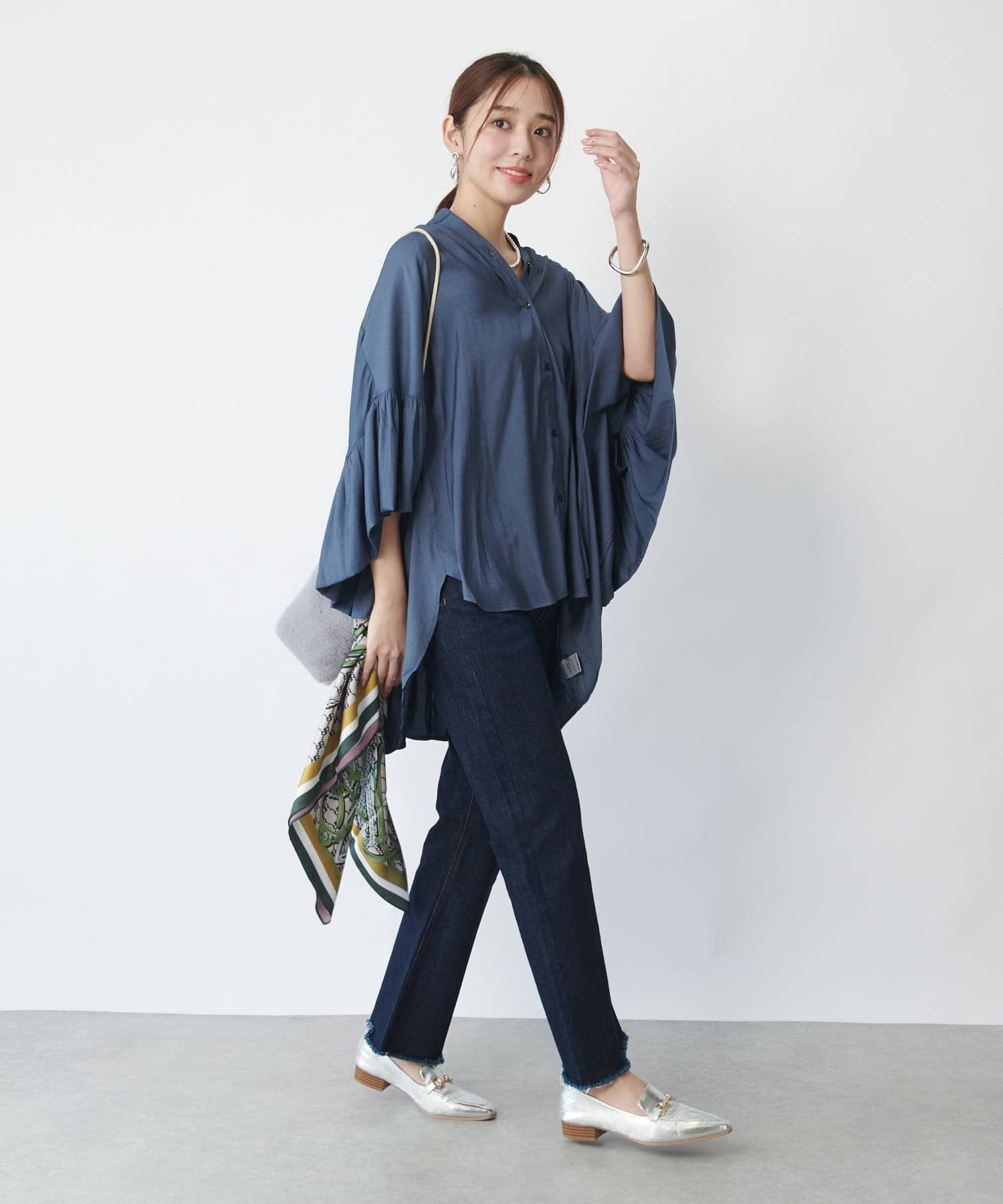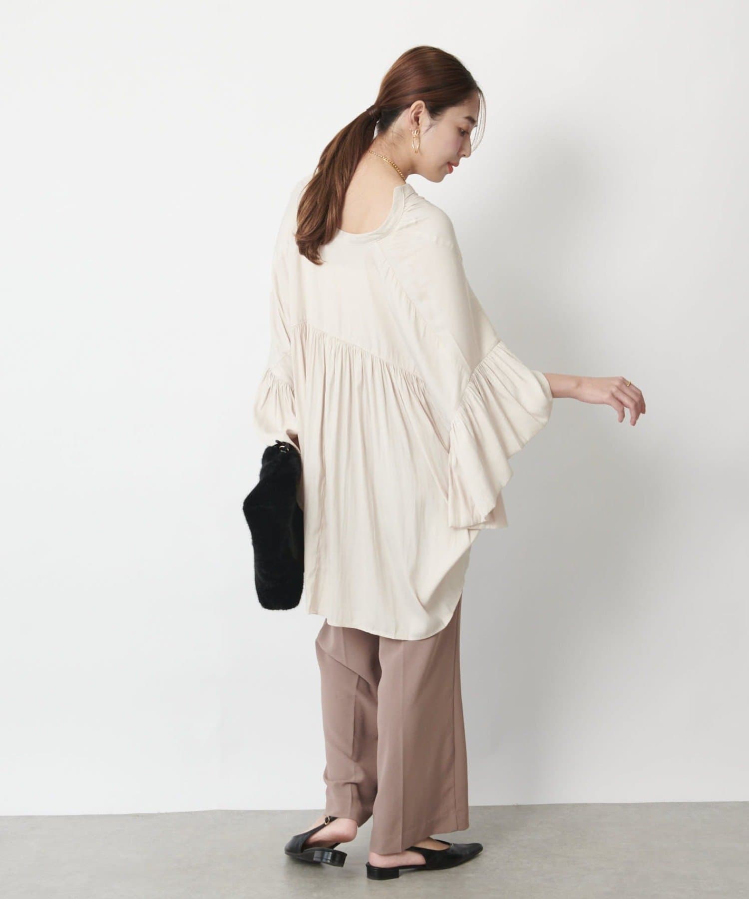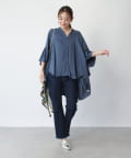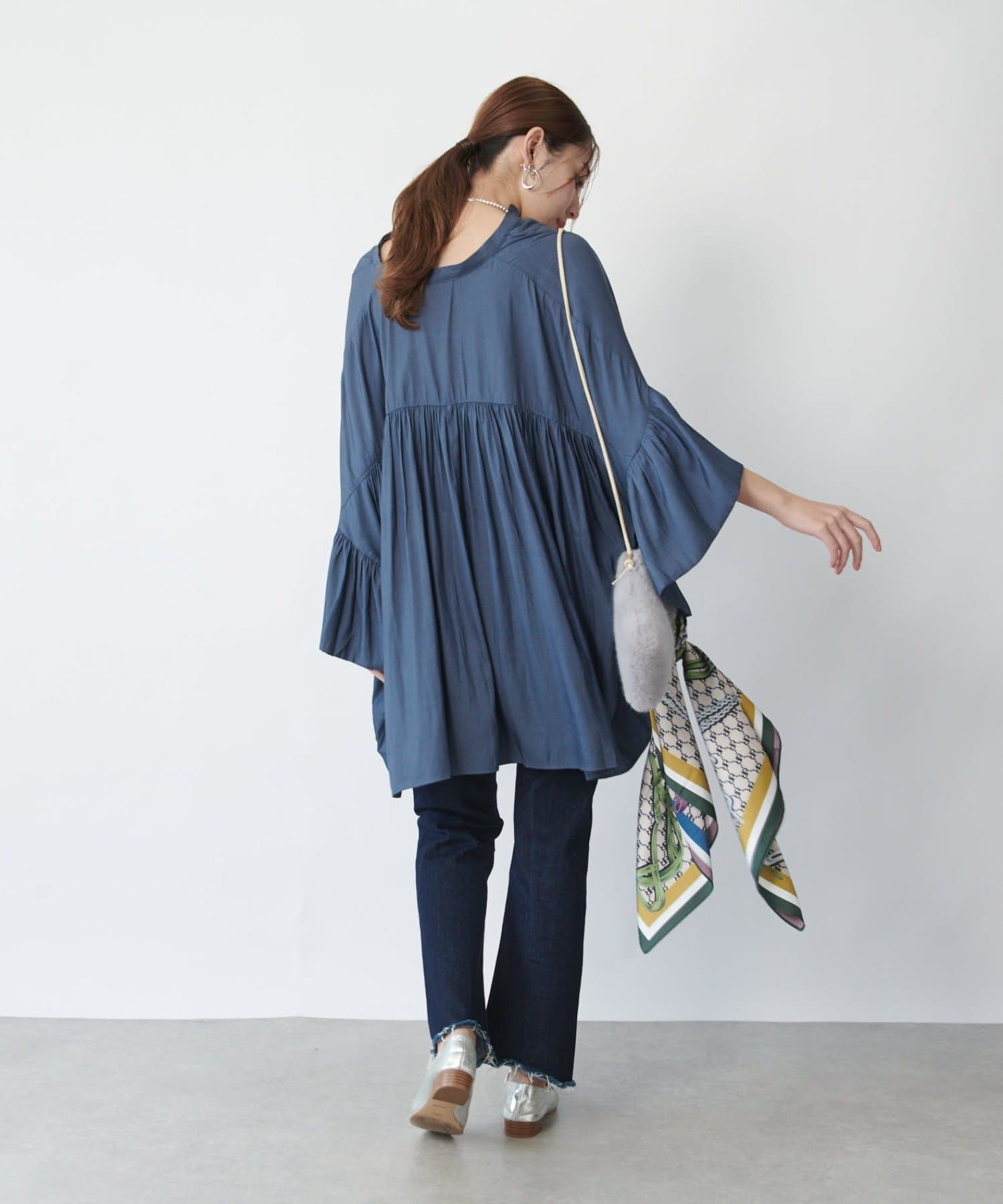 ・全体的にゆとりのあるシルエットとチュニック丈で、さりげなく体型カバーも叶います。