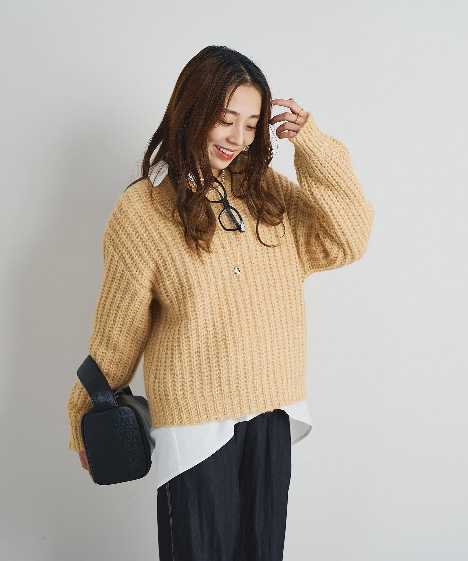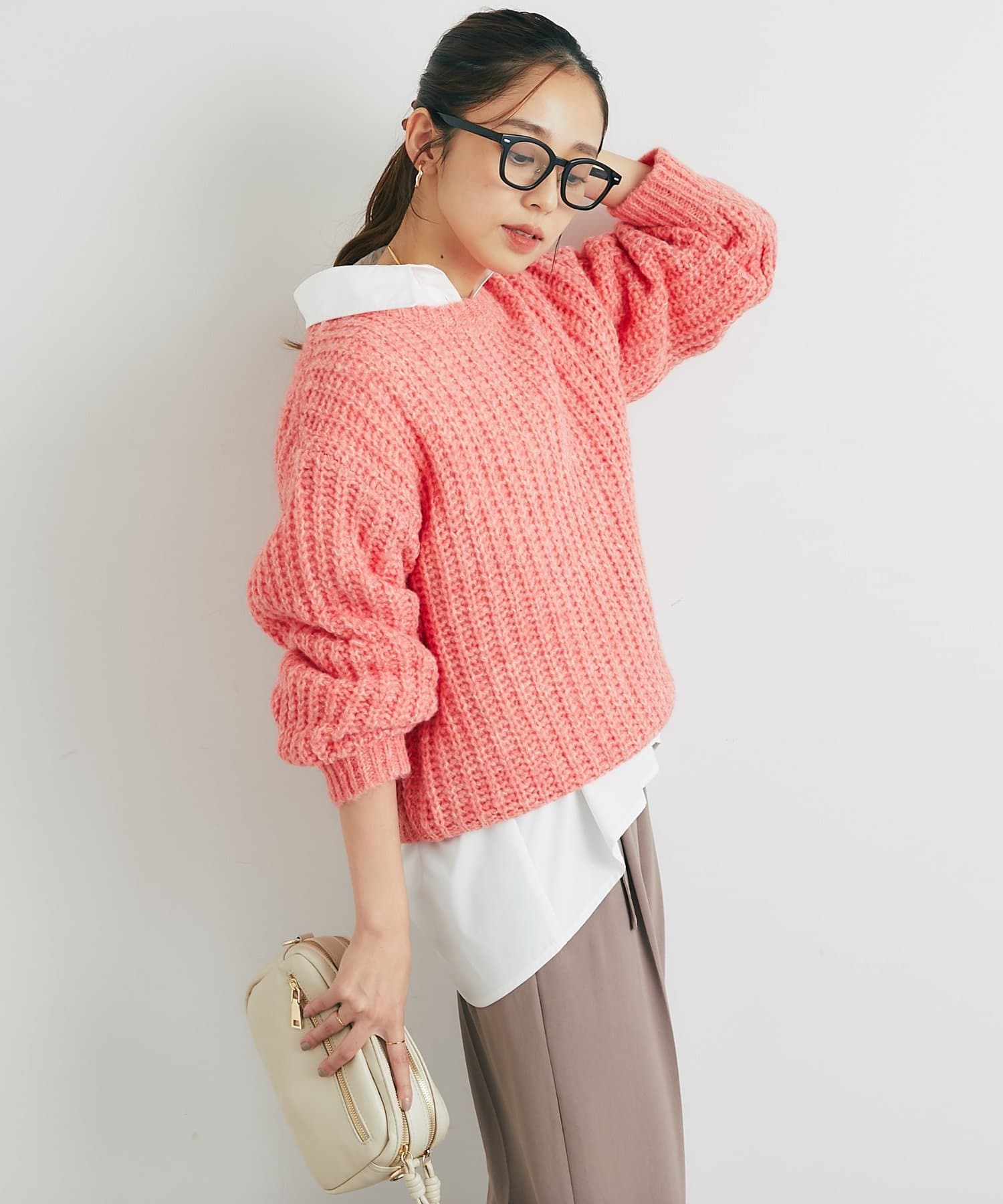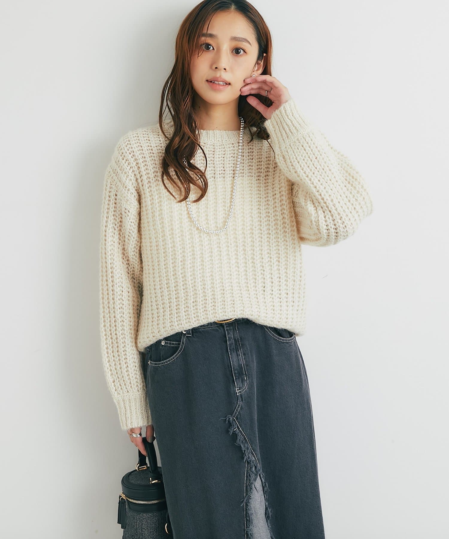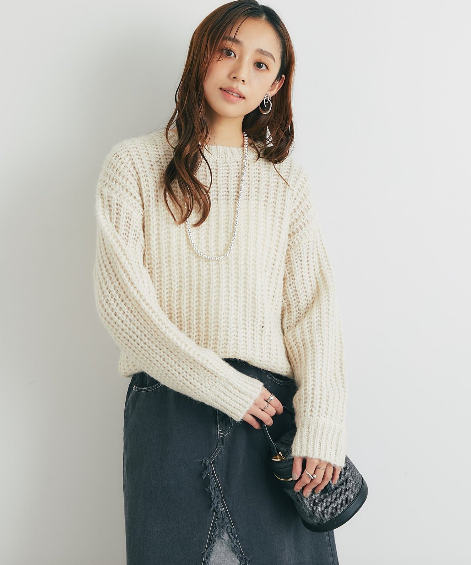 《ふわふわな着心地》ボールドへアリーヤーンニット