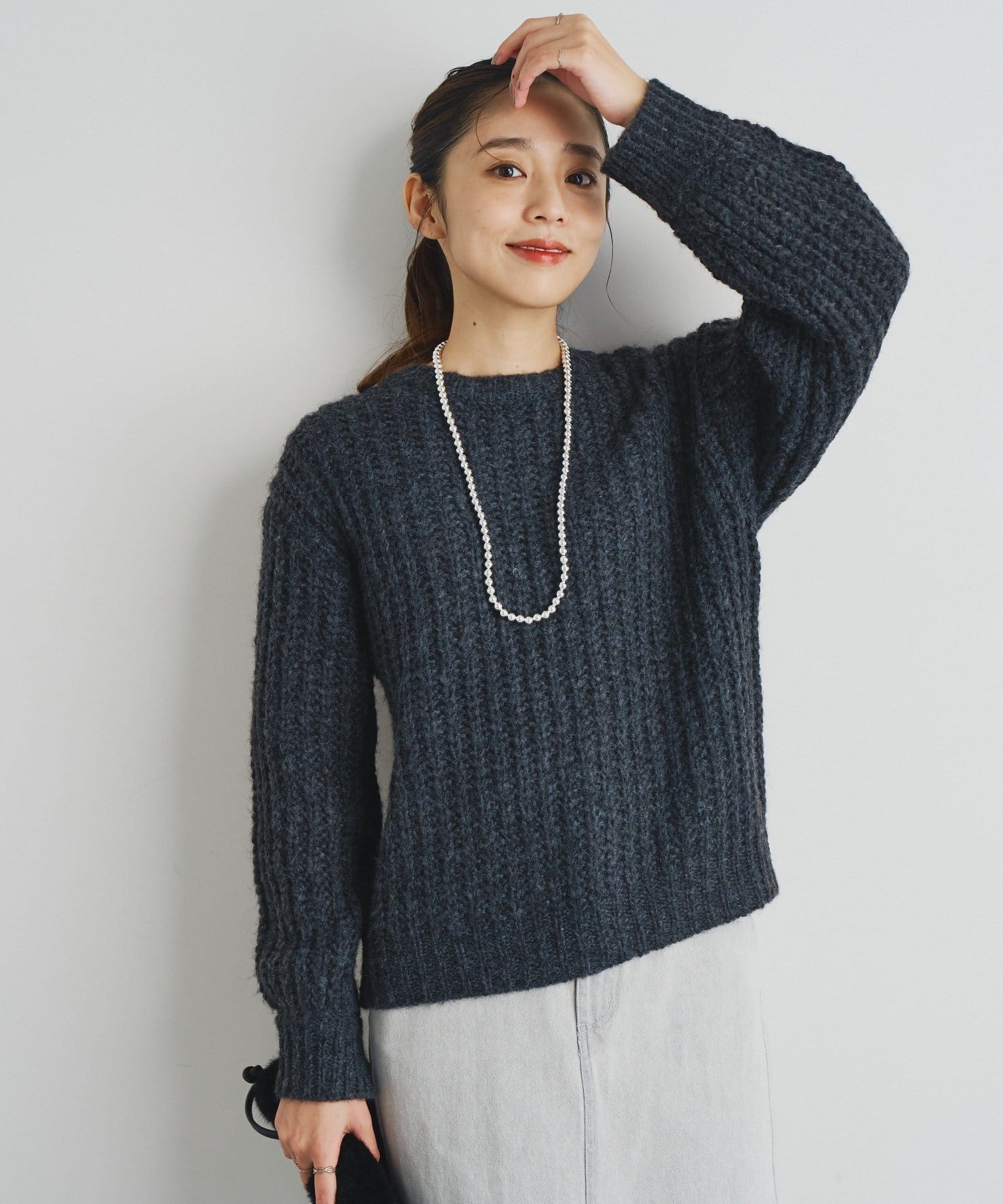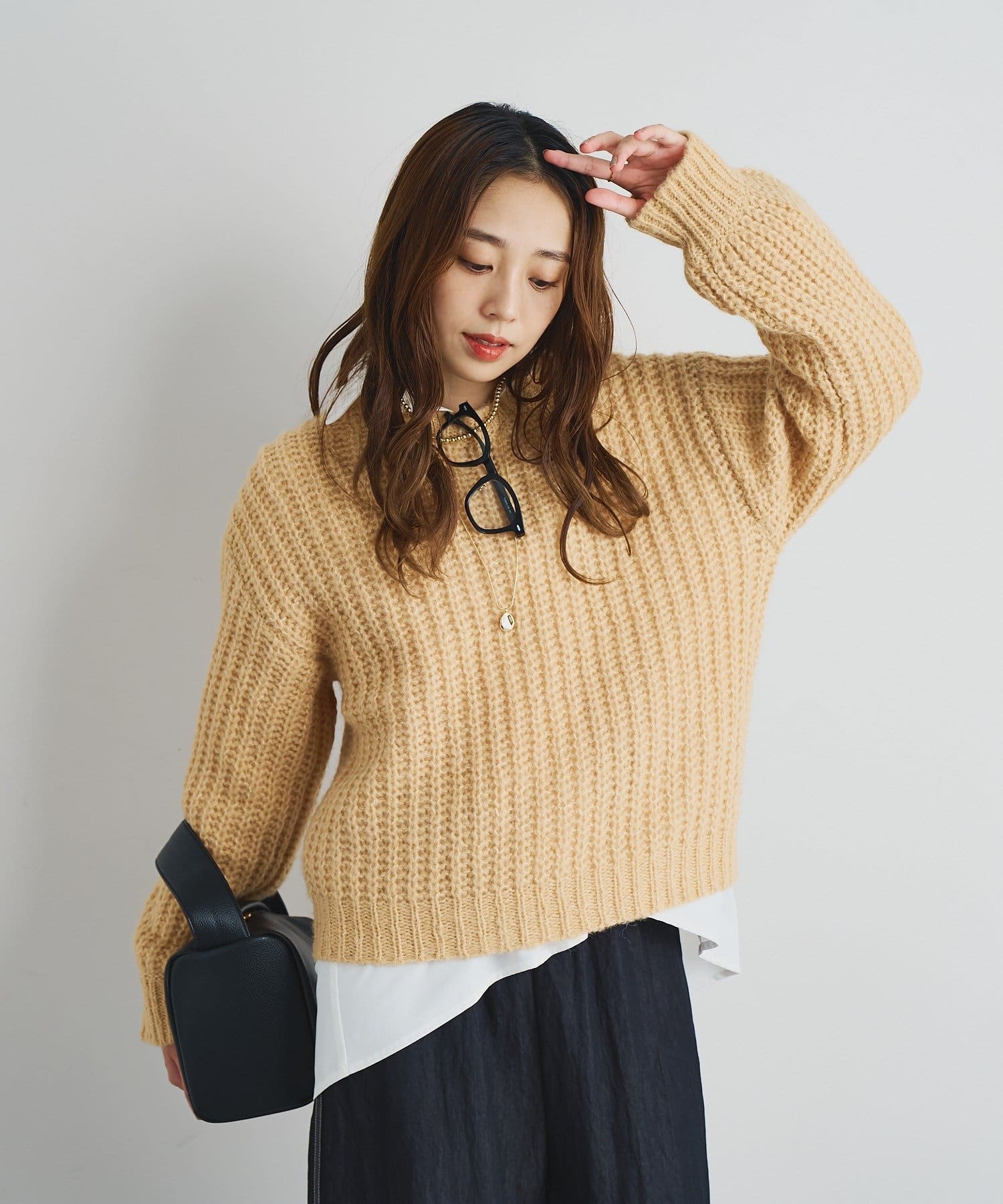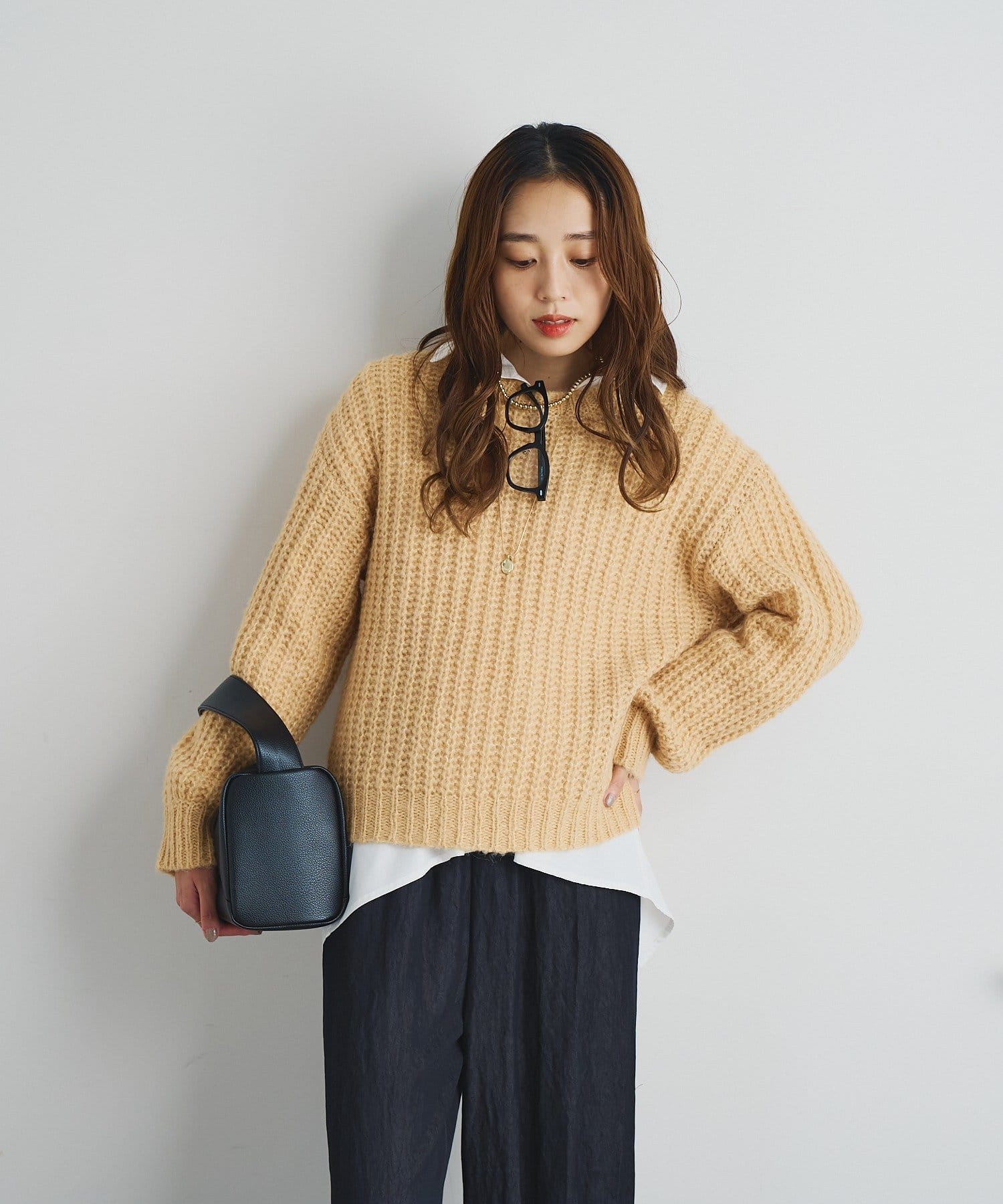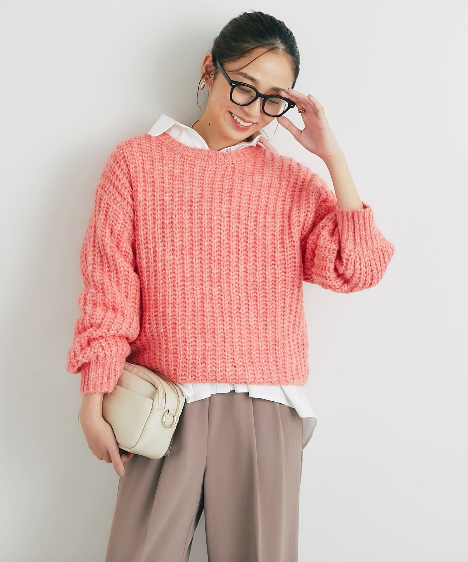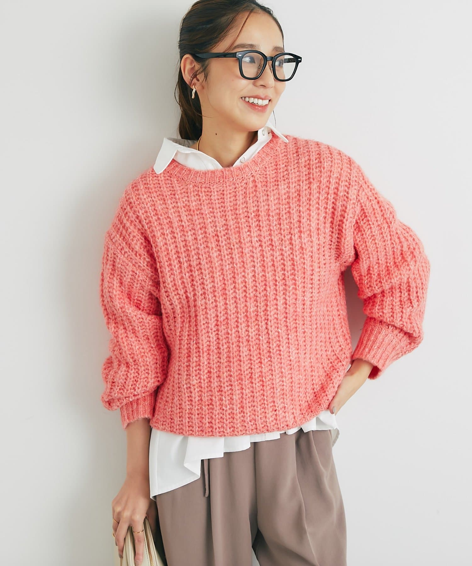 《ふわふわな着心地》ボールドへアリーヤーンニット