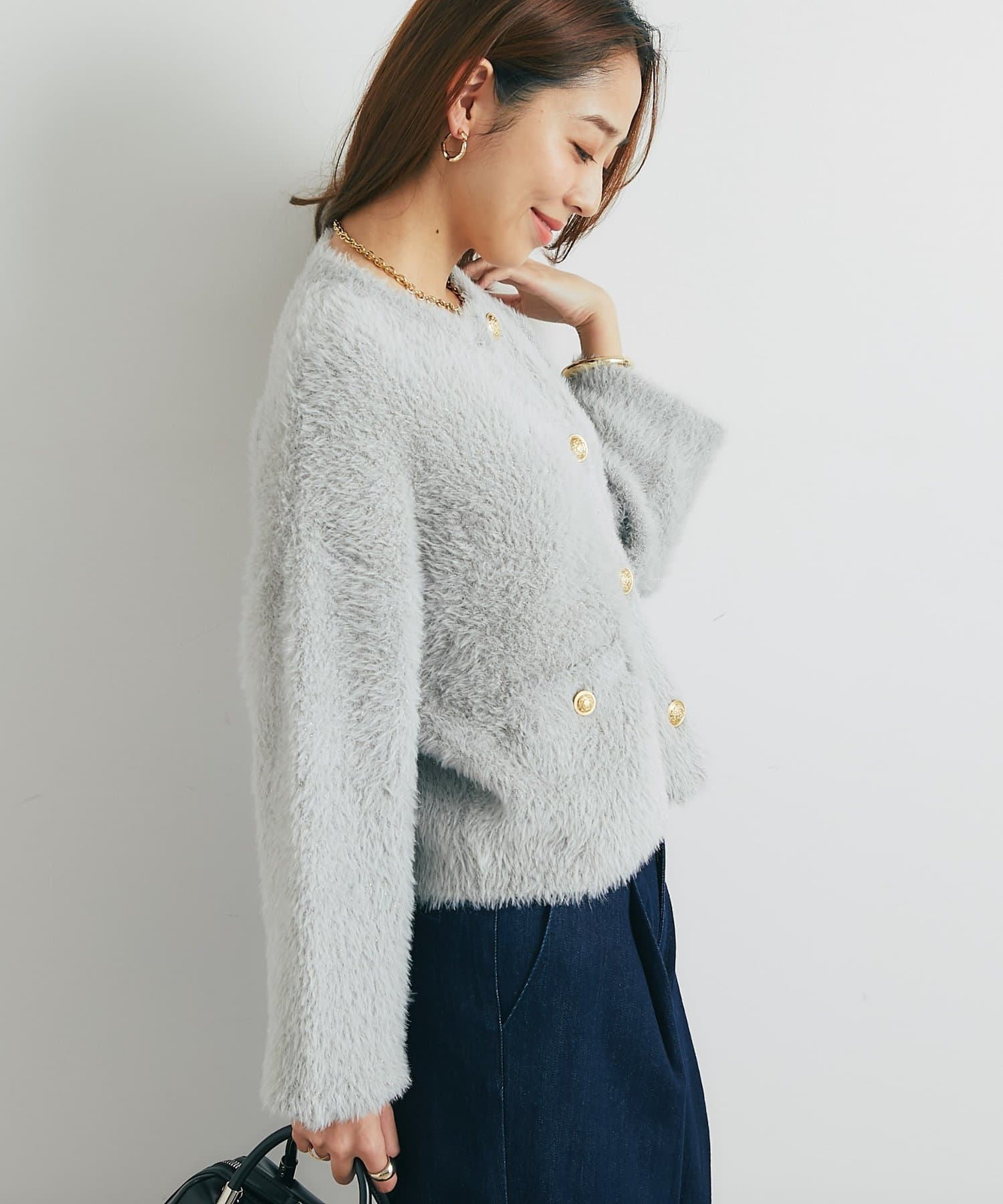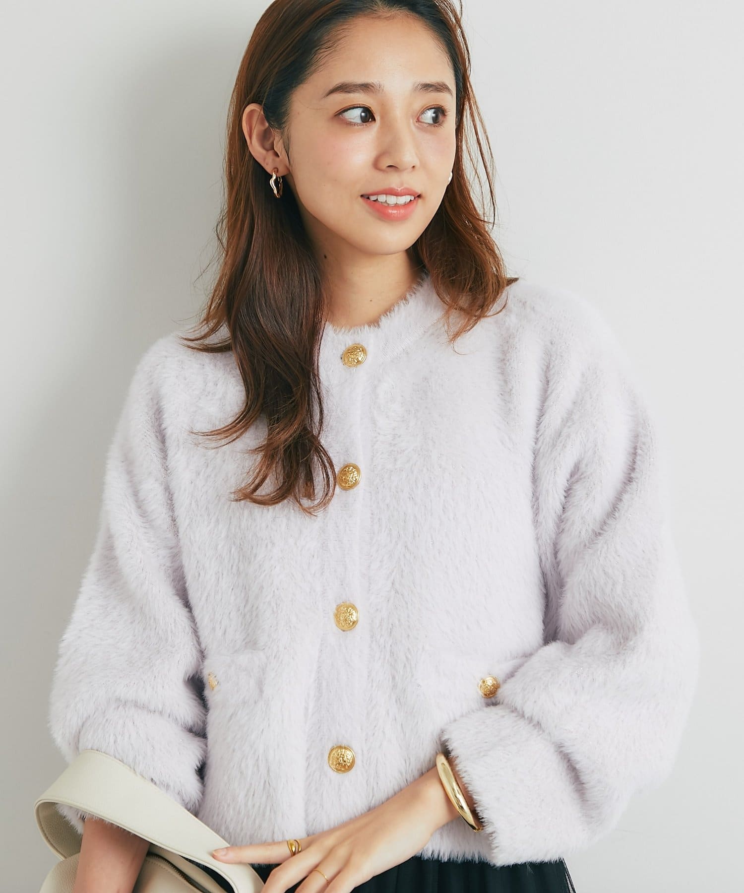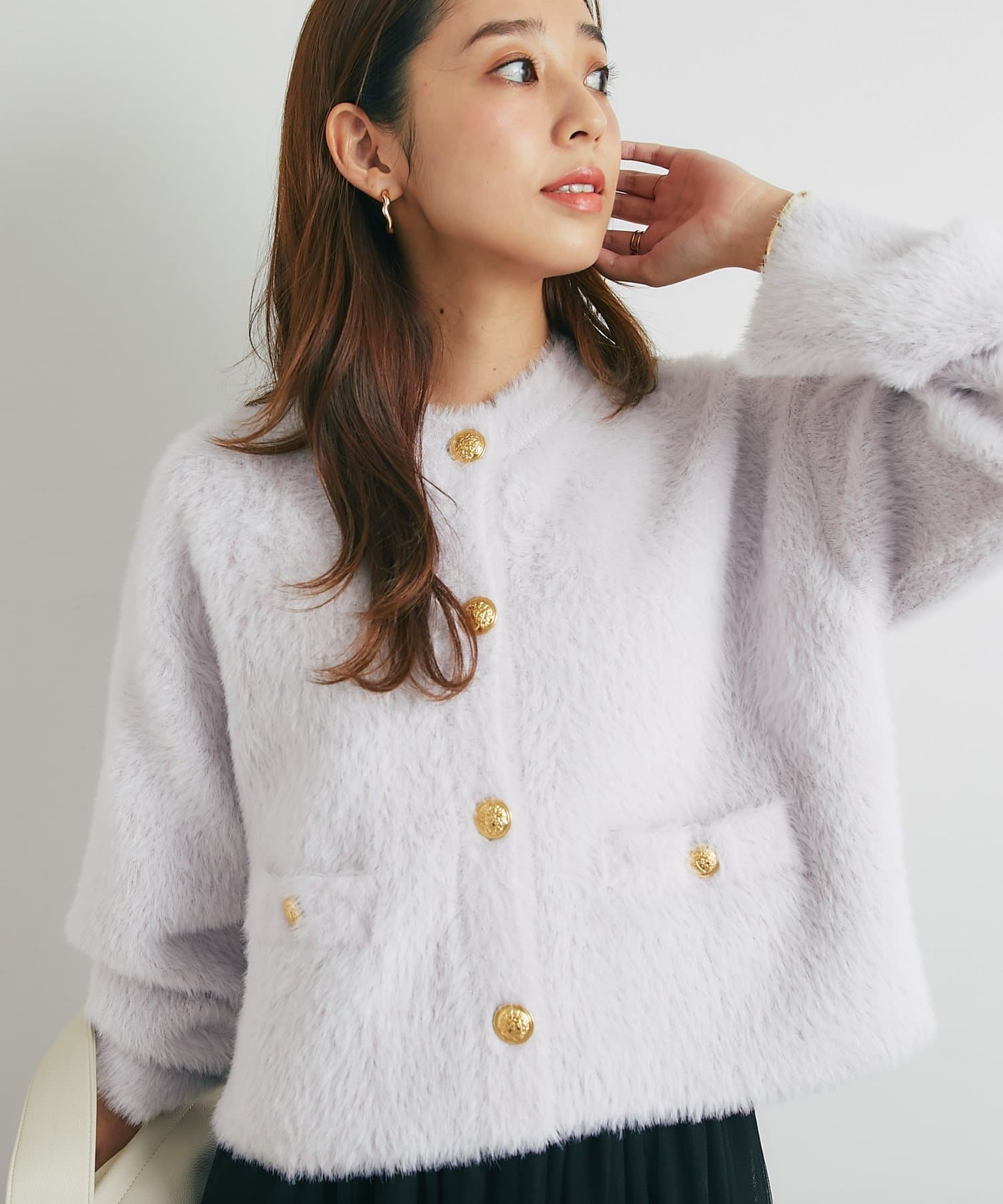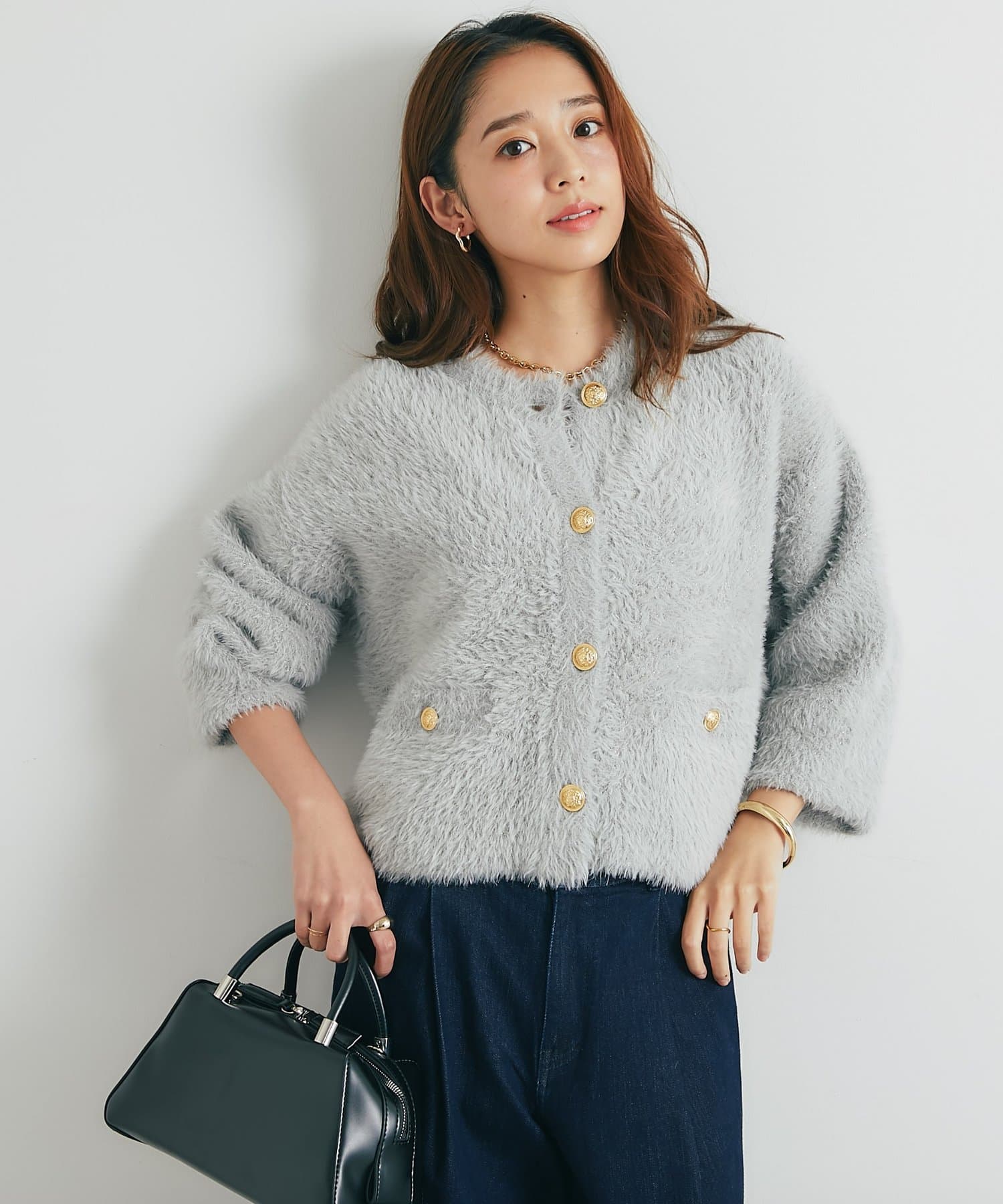 ・ふわっとやわらかなシャギー素材で贅沢に仕上げられた、上品な印象を与えてくれるカーディガン。