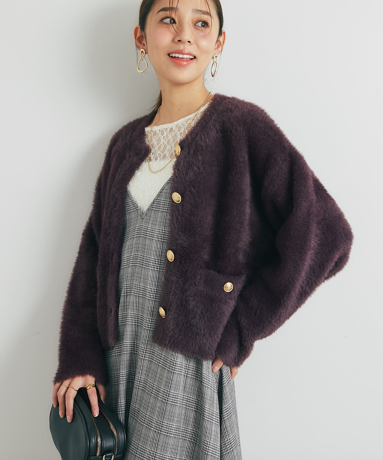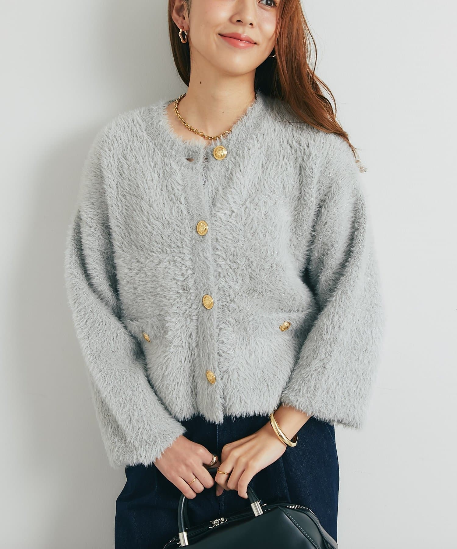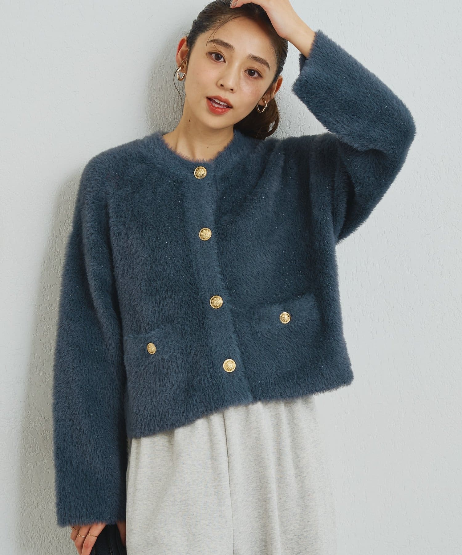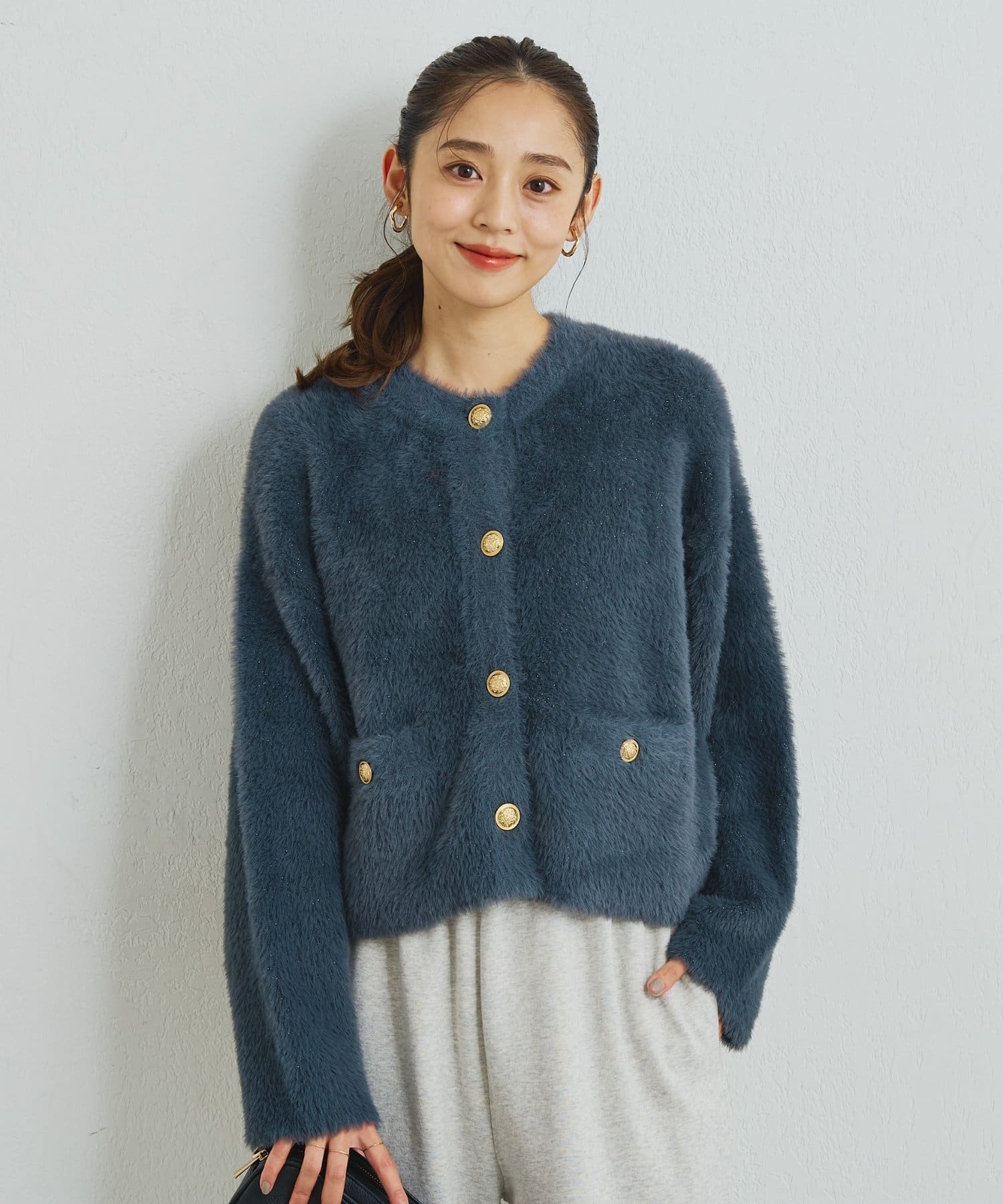 ・ふわっとやわらかなシャギー素材で贅沢に仕上げられた、上品な印象を与えてくれるカーディガン。