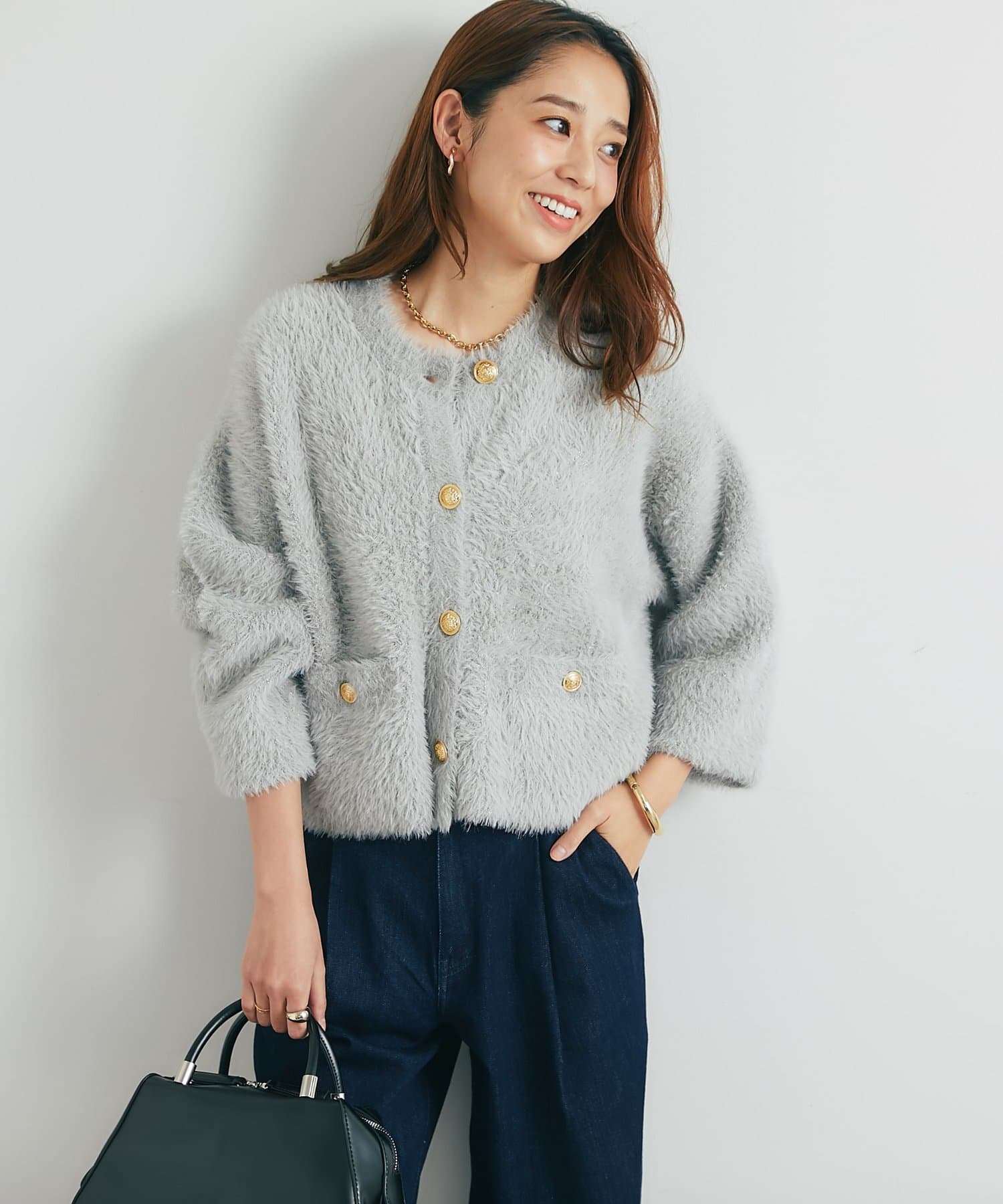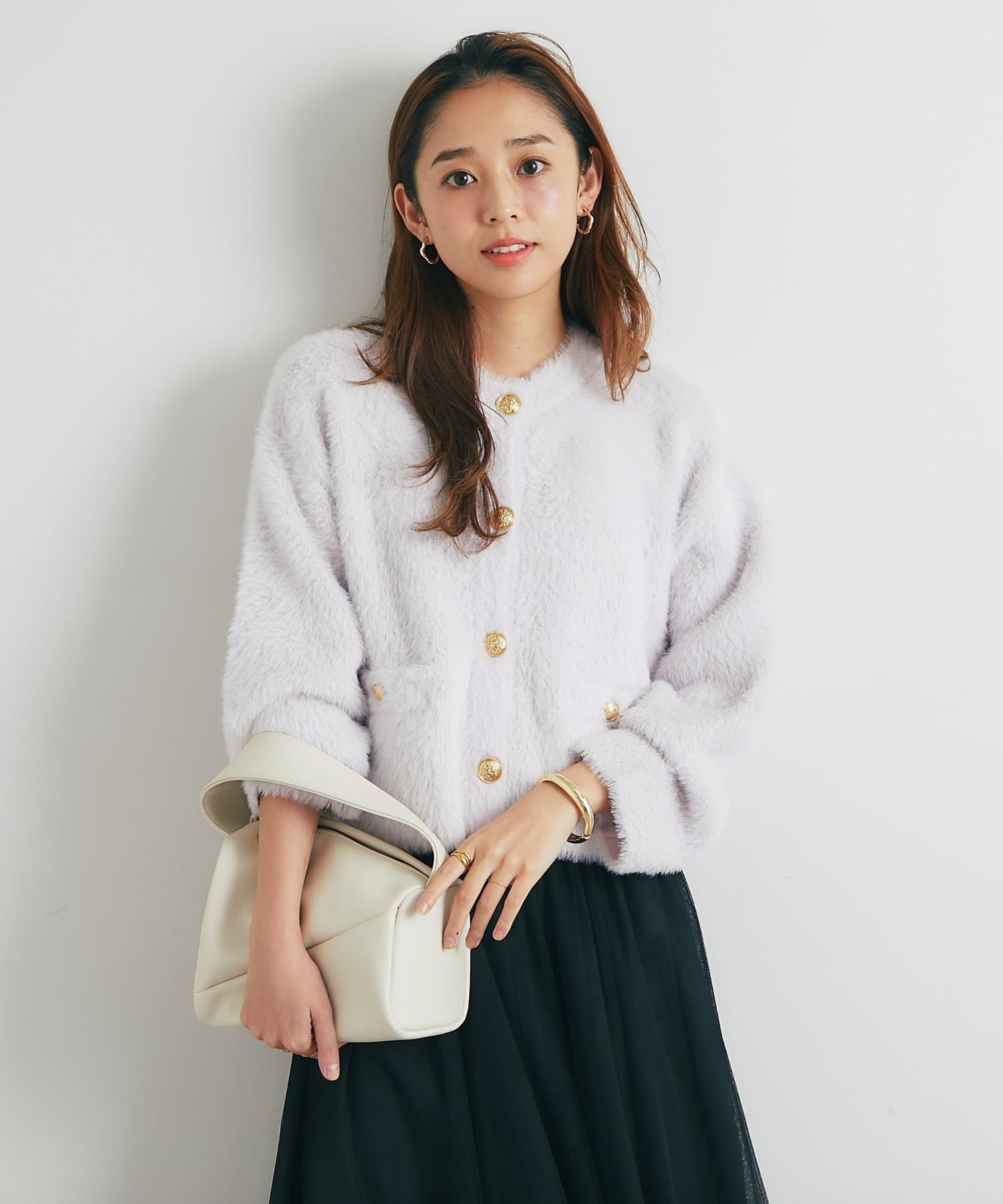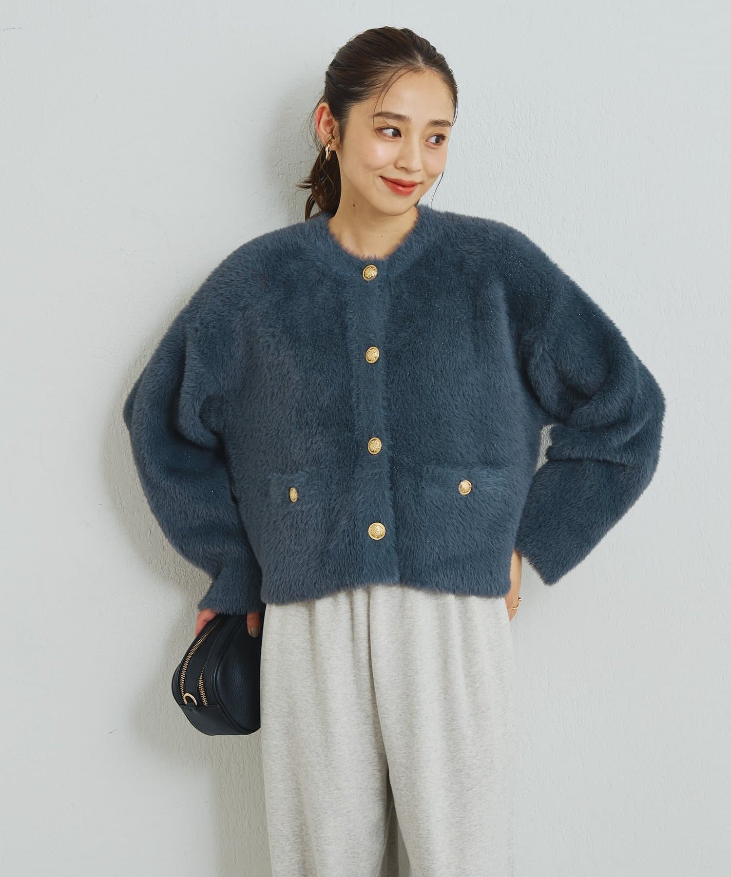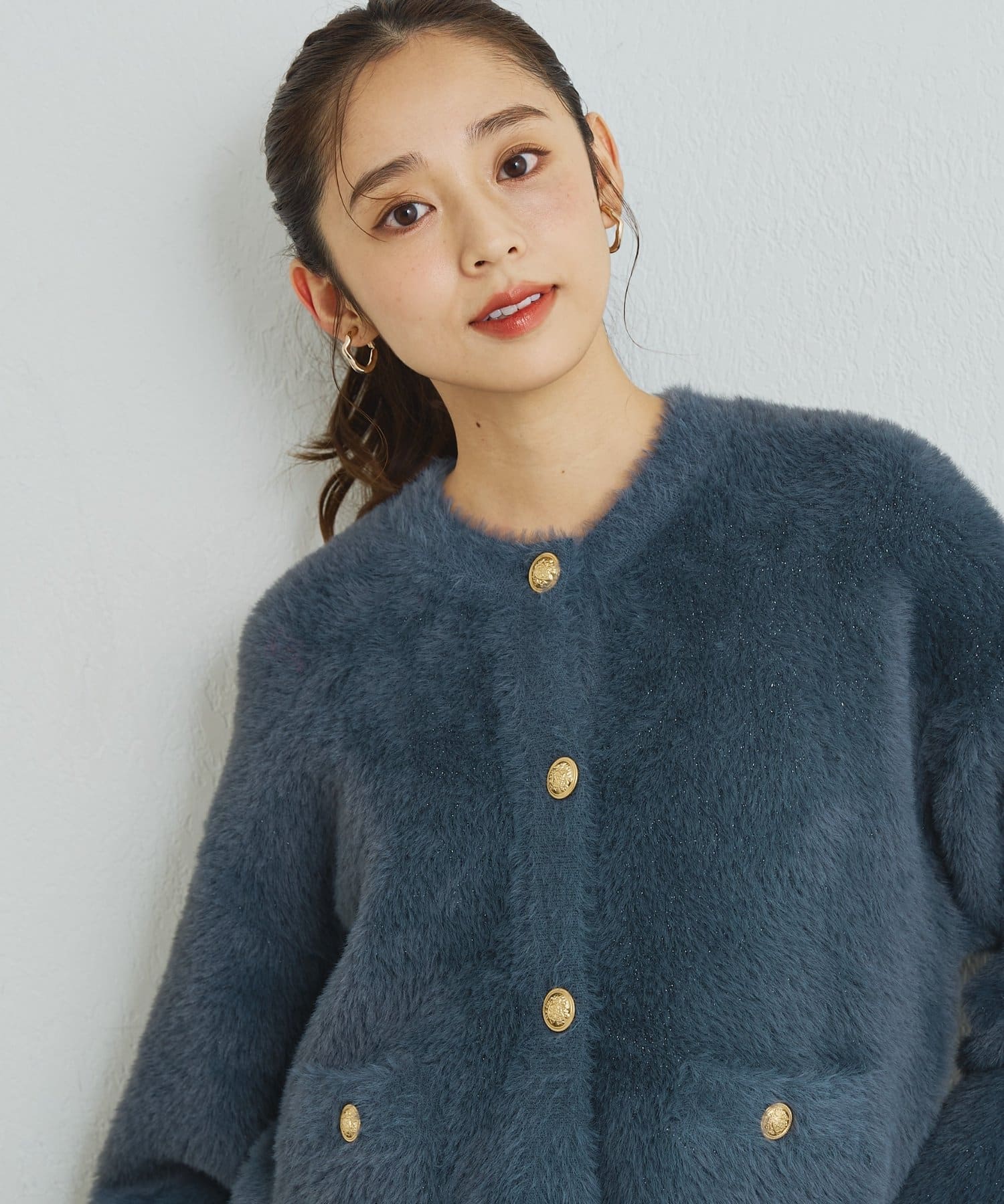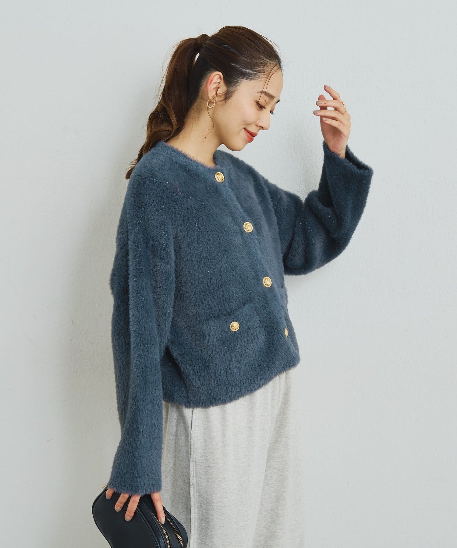 ・ふわっとやわらかなシャギー素材で贅沢に仕上げられた、上品な印象を与えてくれるカーディガン。