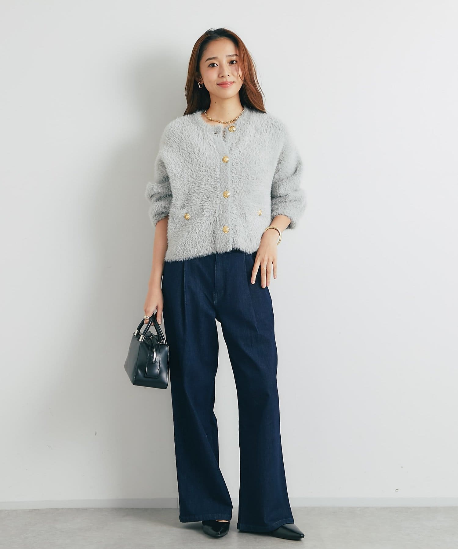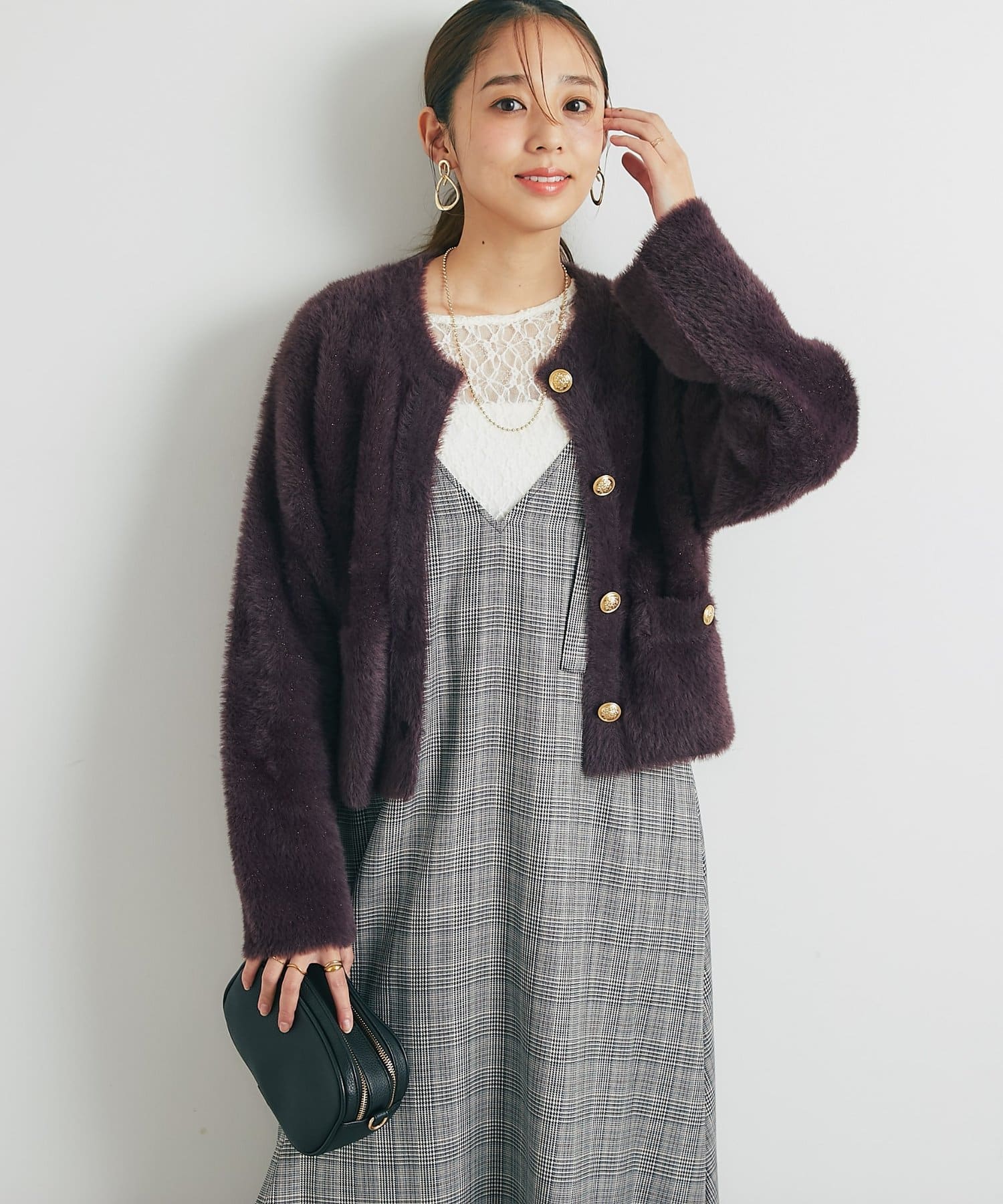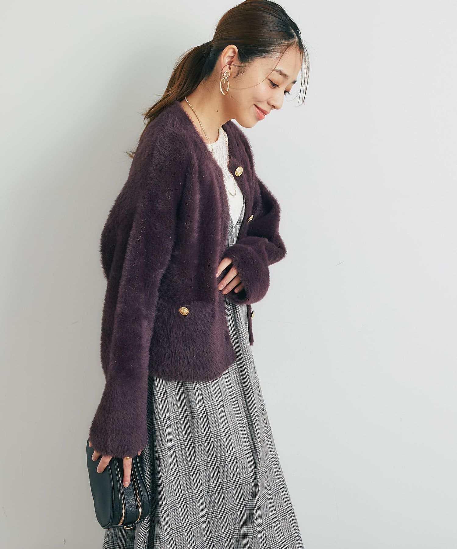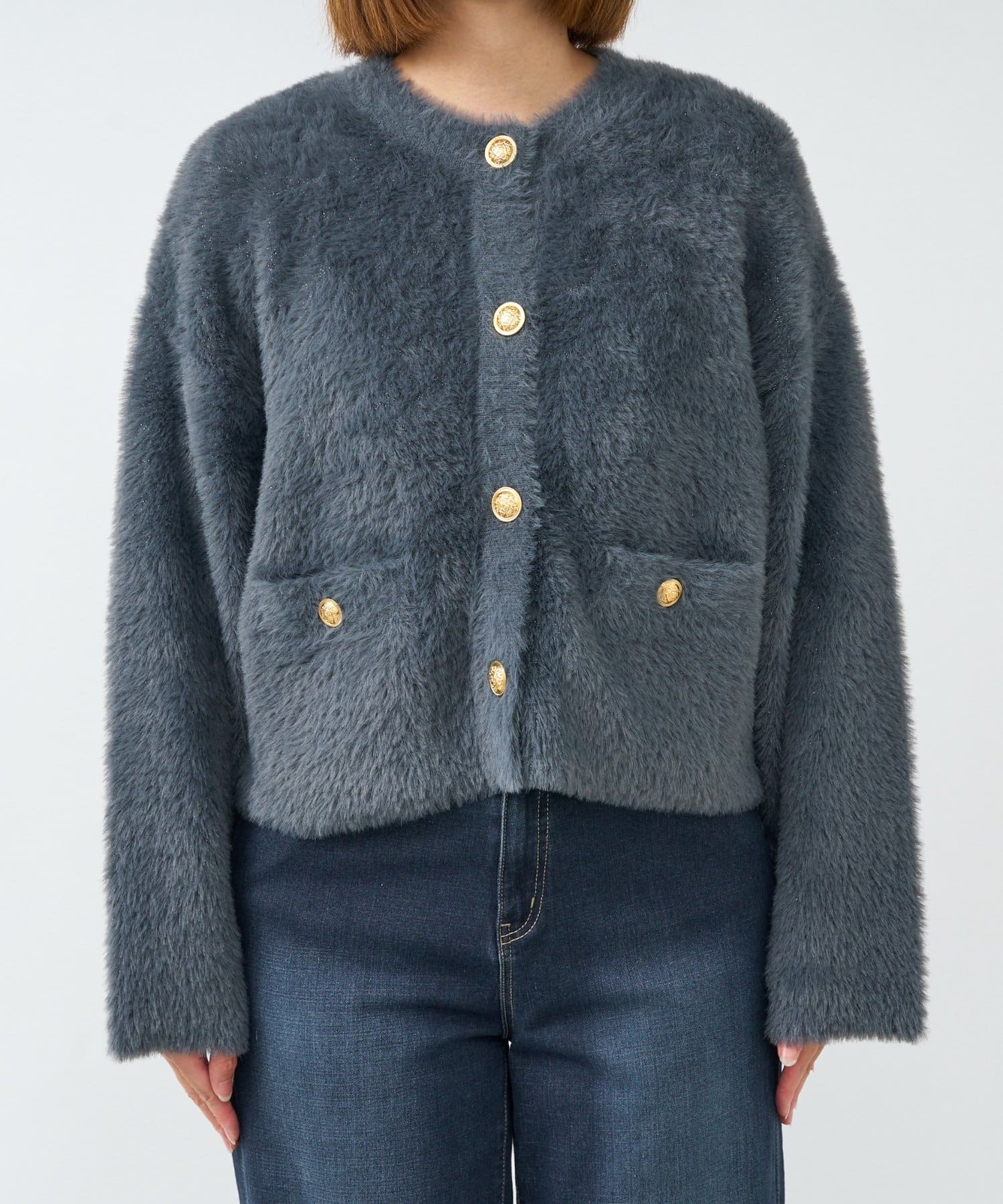 ・ふわっとやわらかなシャギー素材で贅沢に仕上げられた、上品な印象を与えてくれるカーディガン。