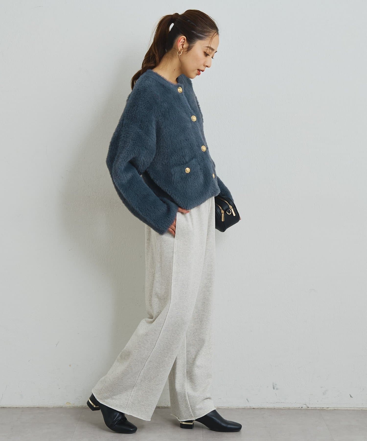 ・フロントの金釦が華やかなアクセントになり、いつもの着こなしをワンランク上に引き上げてくれます。