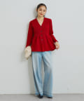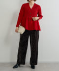 ・深めのVネックがデコルテをより美しく見せ、抜け感をプラスしてくれます。