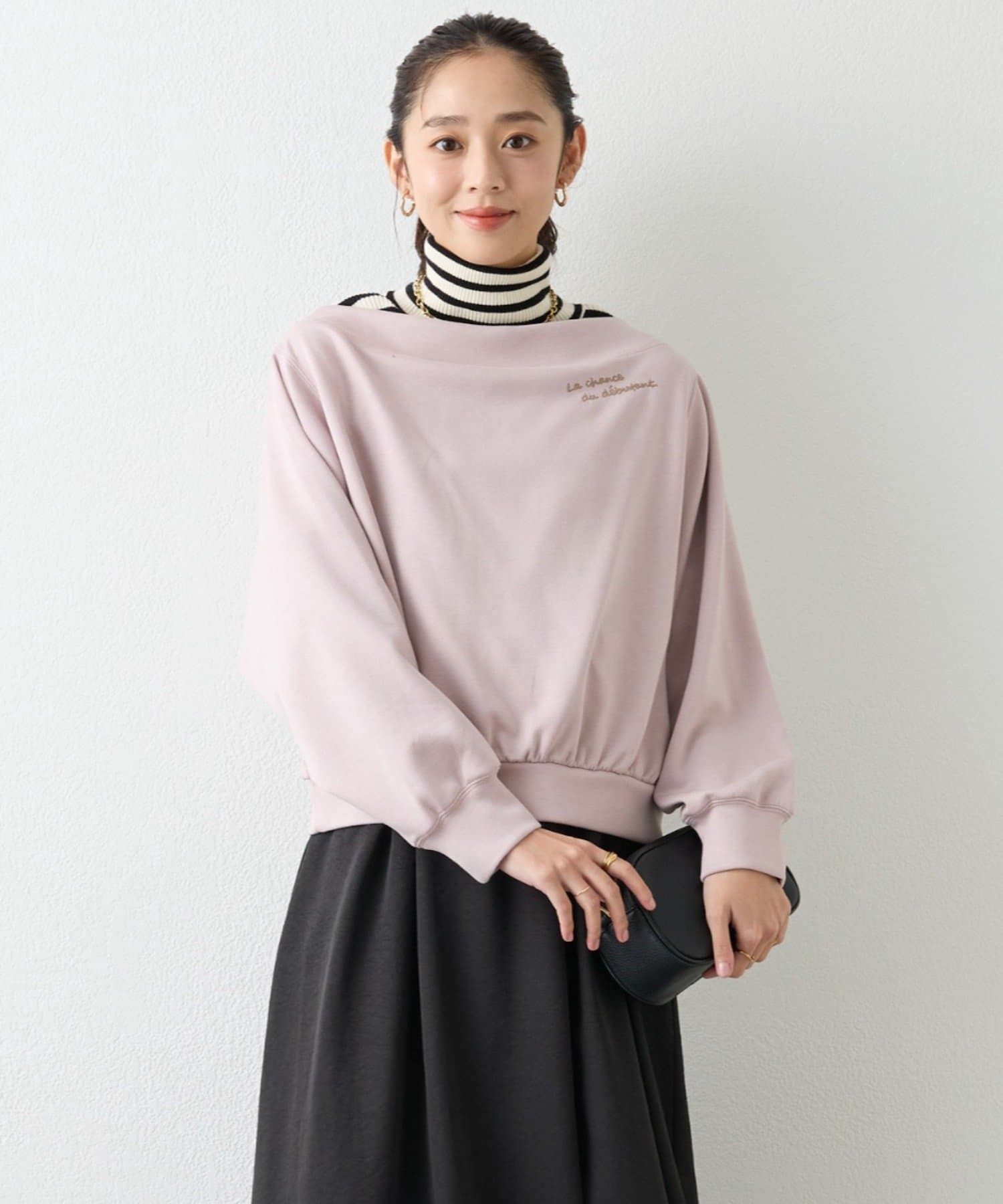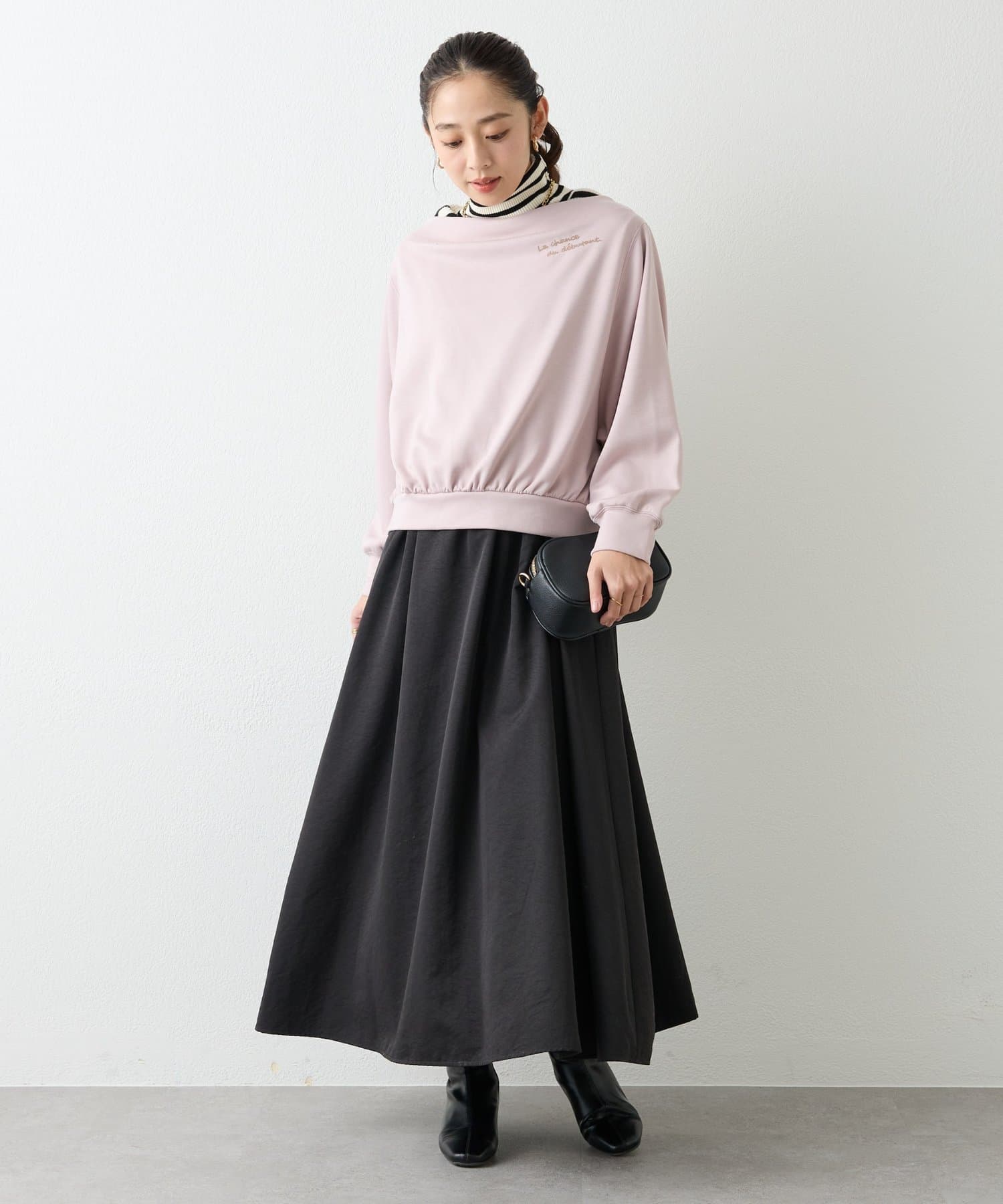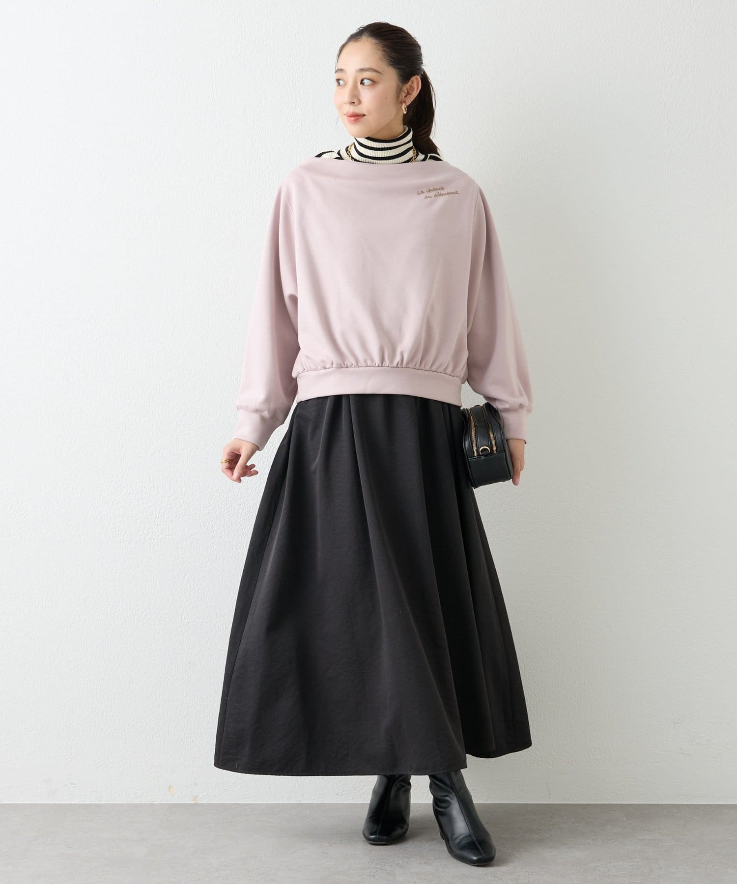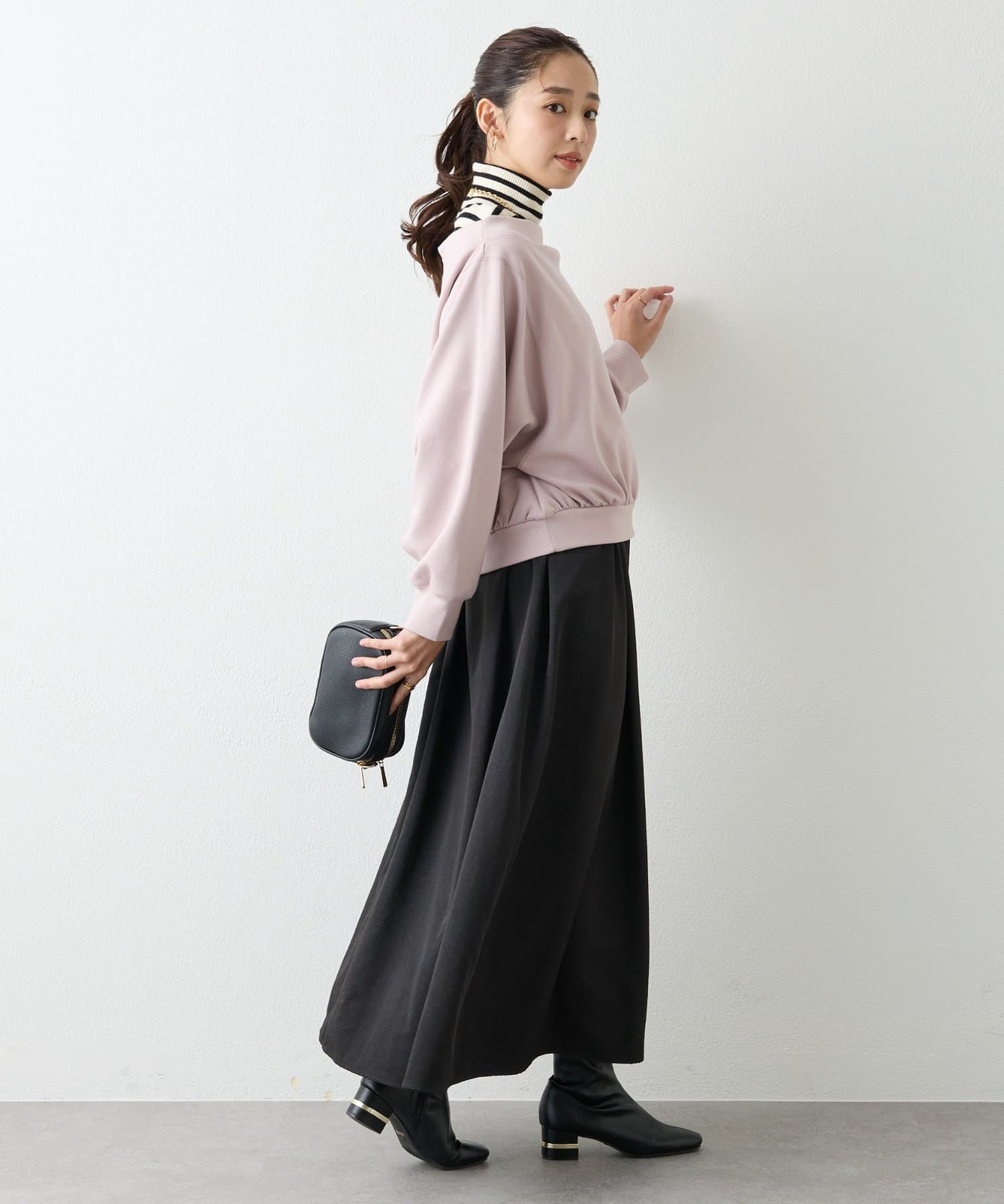 フレアスカートやプリーツスカートと合わせると、より女性らしい着こなしに。