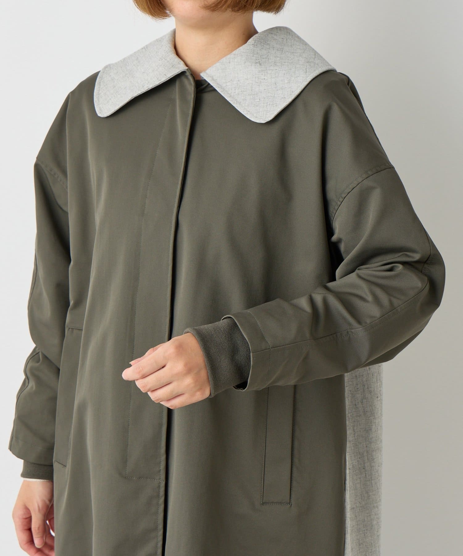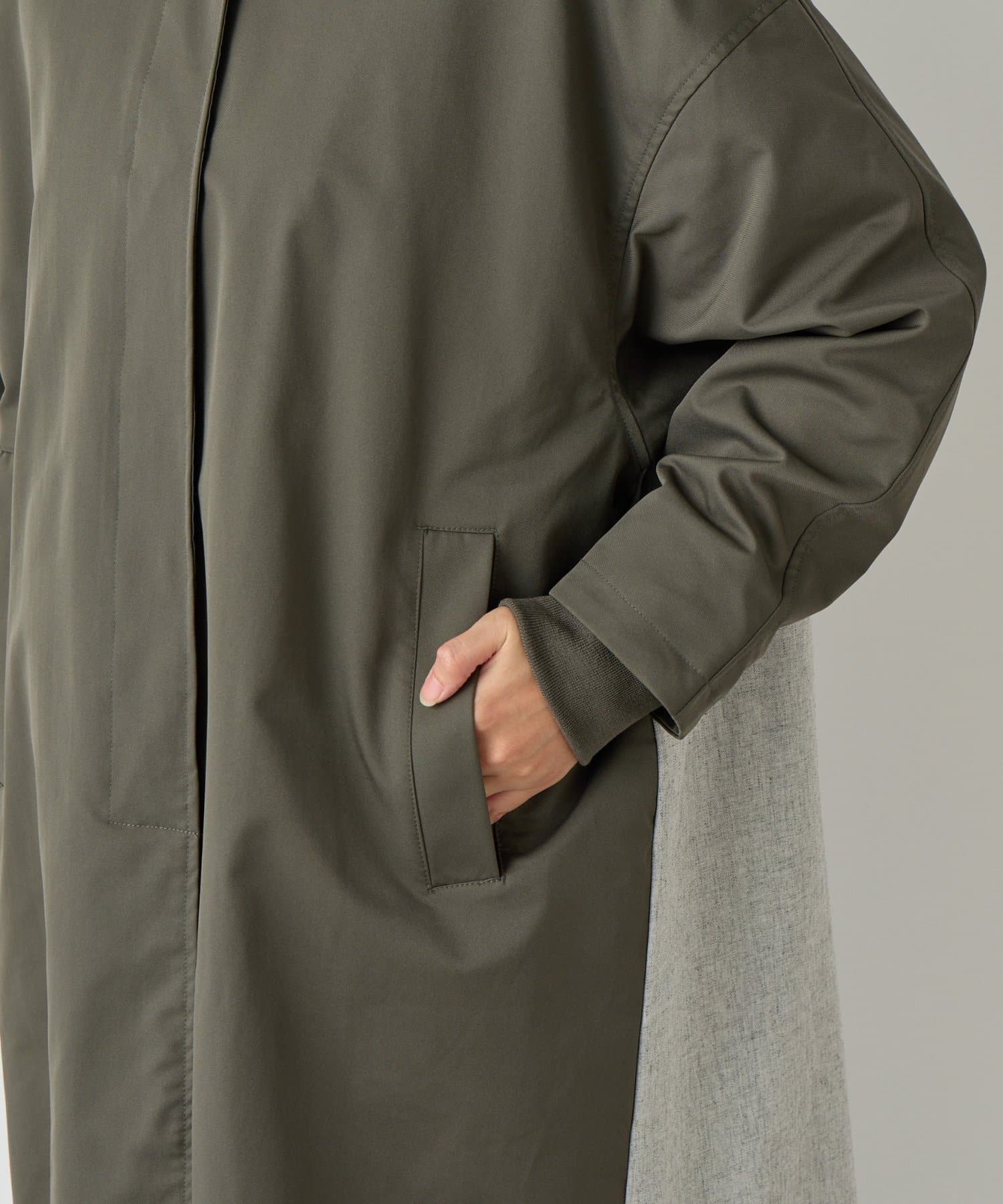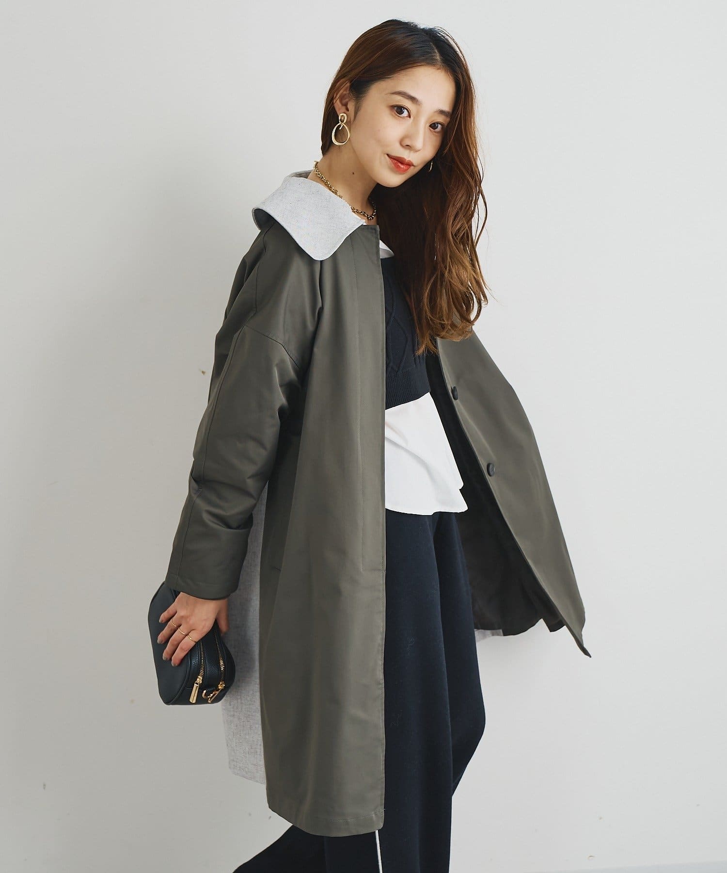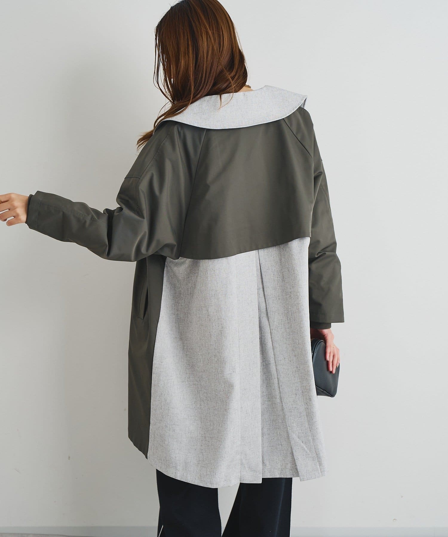 ・異素材を組み合わせたデザインが洗練された大人の遊び心を演出するコート。