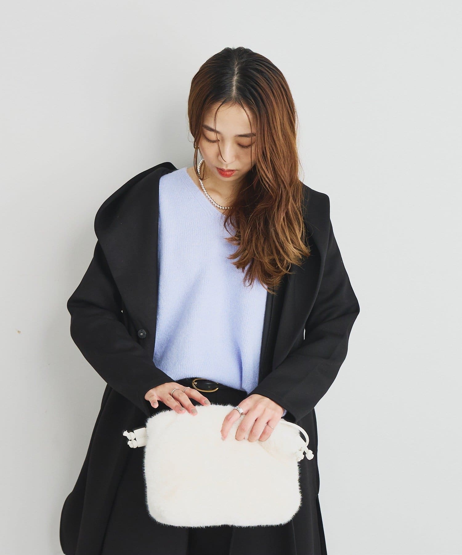 甘めのワンピやレイヤードスタイルにもふわっと羽織るだけで、こなれ感のある雰囲気に。