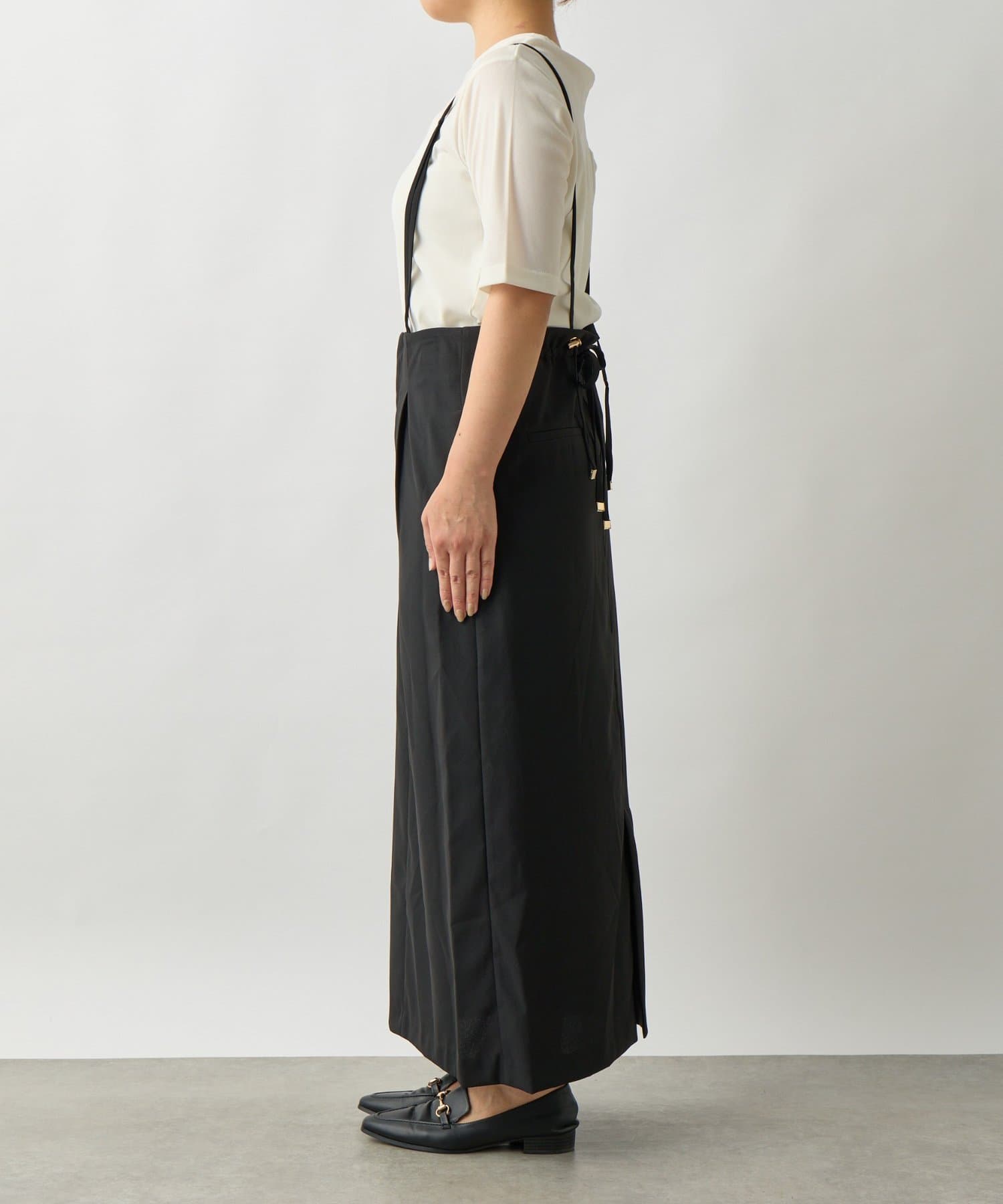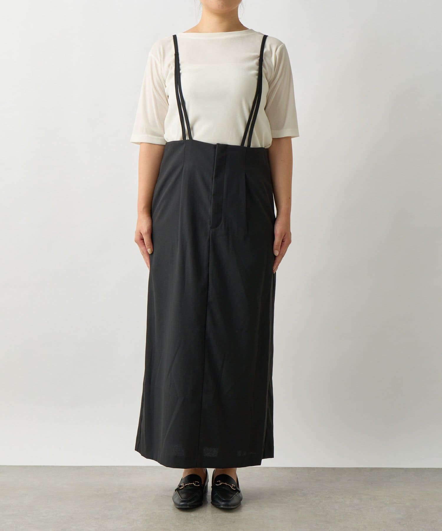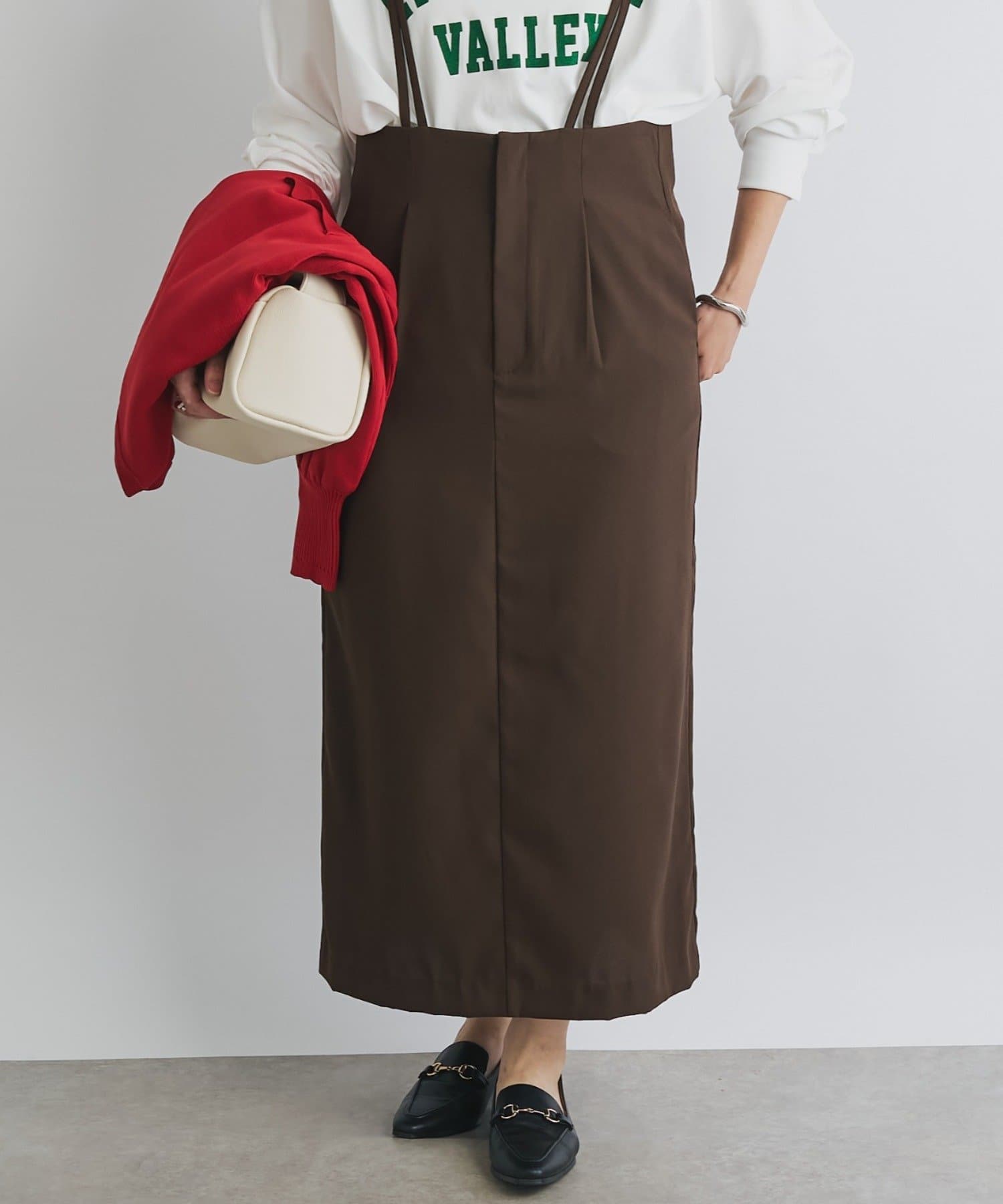 ・リラックス感のあるシルエットが魅力のサロペットスカートは、着心地の良さとスタイルアップ効果を両立します。