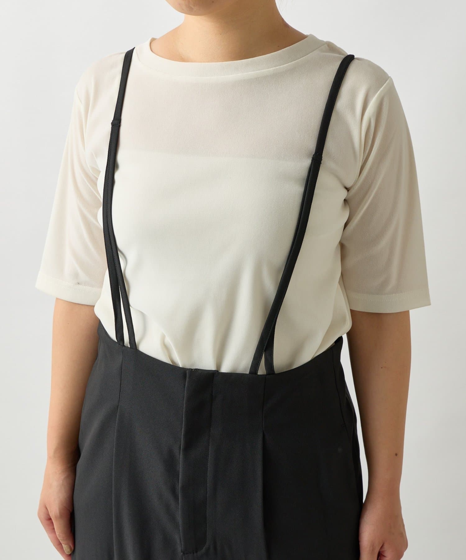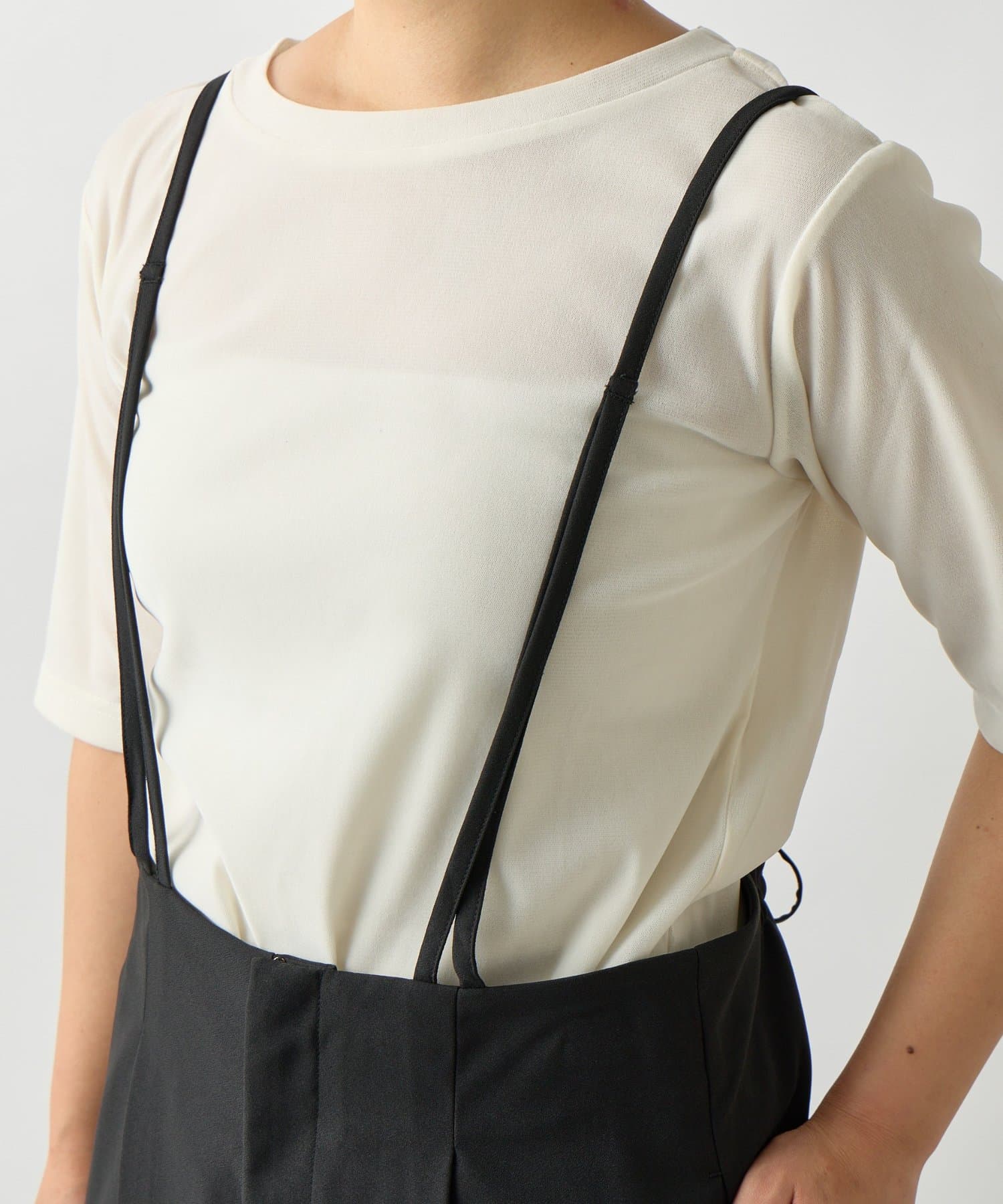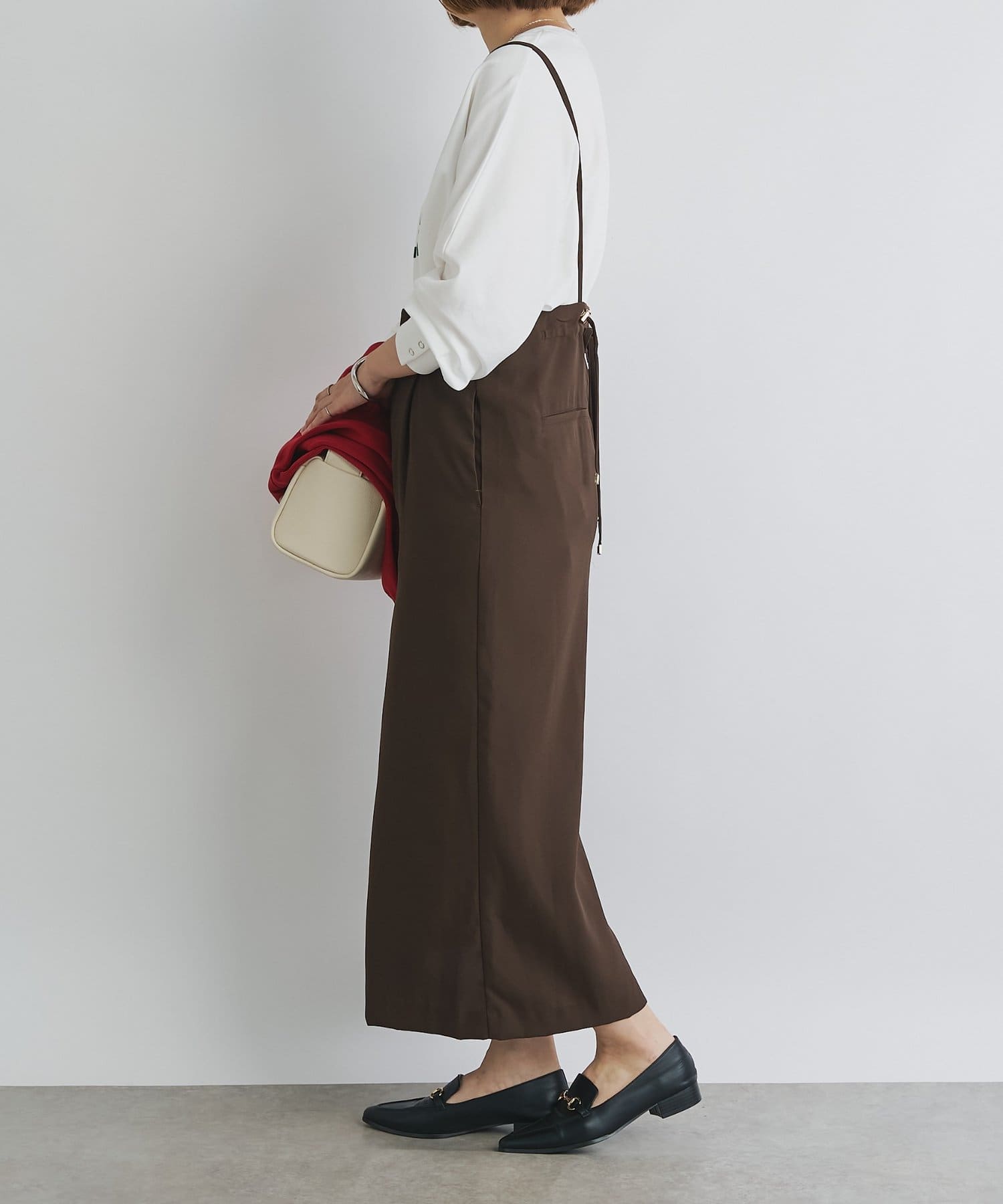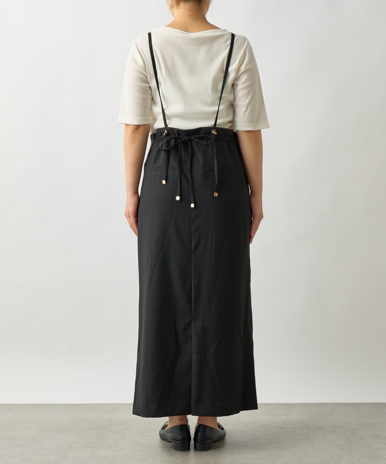 ・リラックス感のあるシルエットが魅力のサロペットスカートは、着心地の良さとスタイルアップ効果を両立します。
