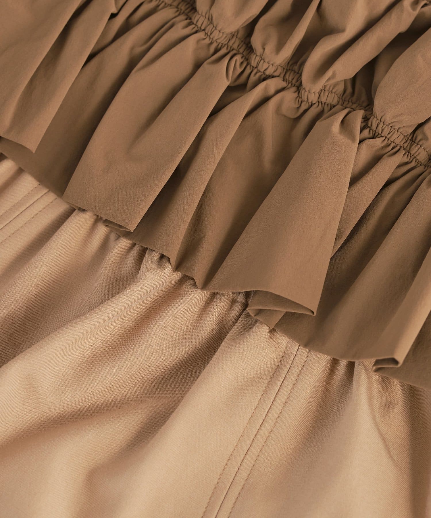 ・ギャザーを寄せたフリルデザインと異素材仕上げが目を惹く、フェミニンな印象をプラスしてくれるワンピース。