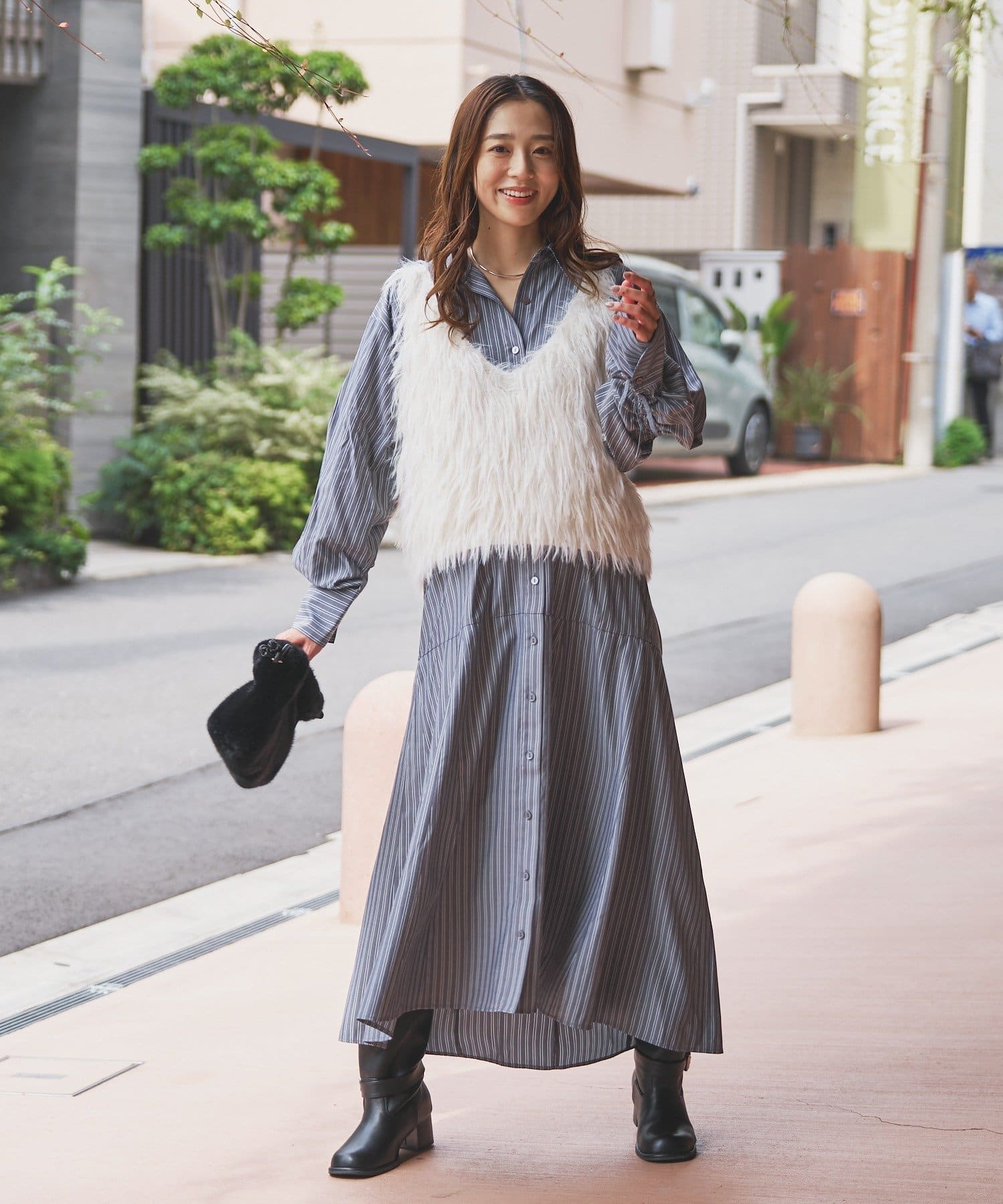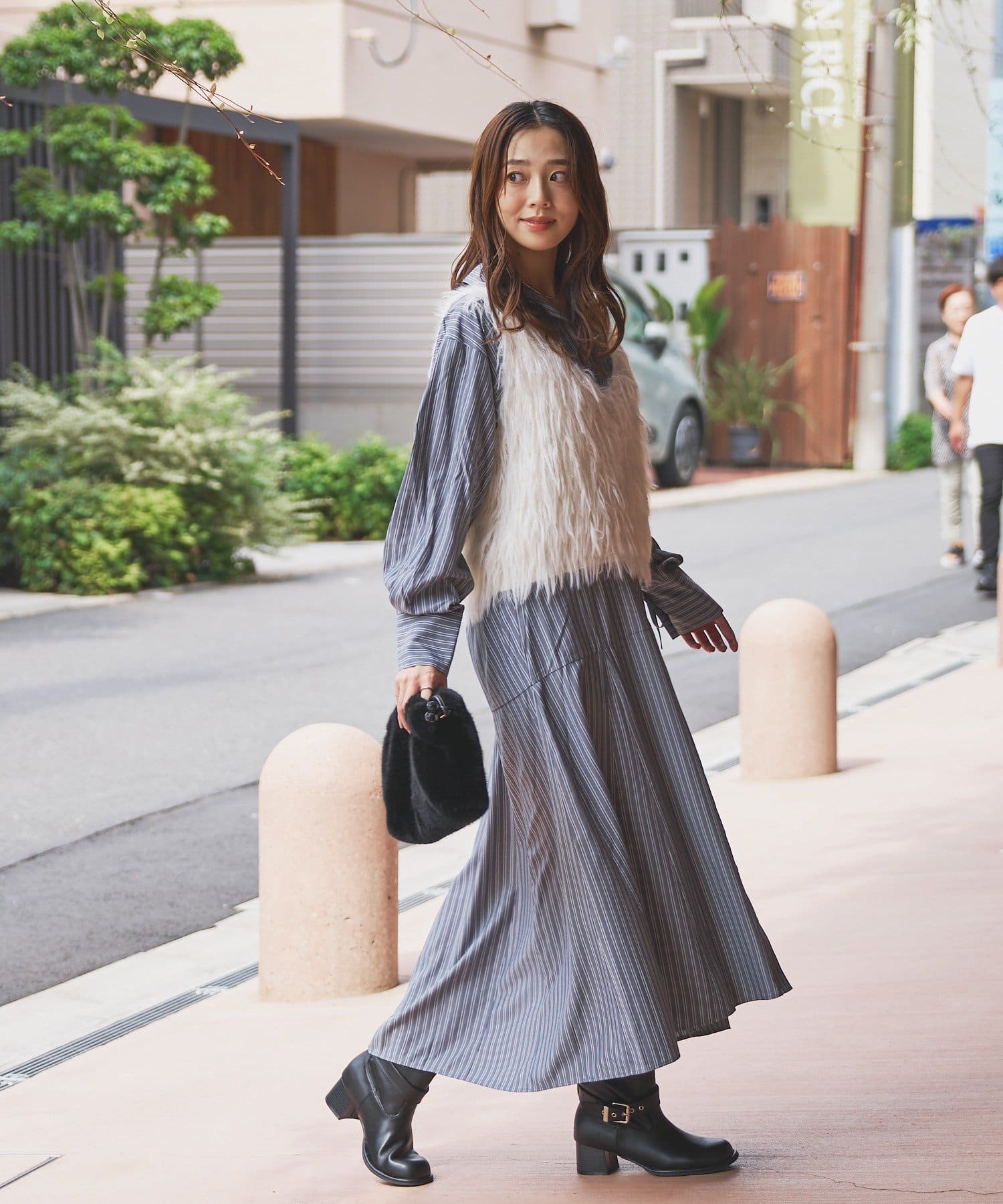 《主役級アイテム◎》ストライプマーメイドシャツワンピース