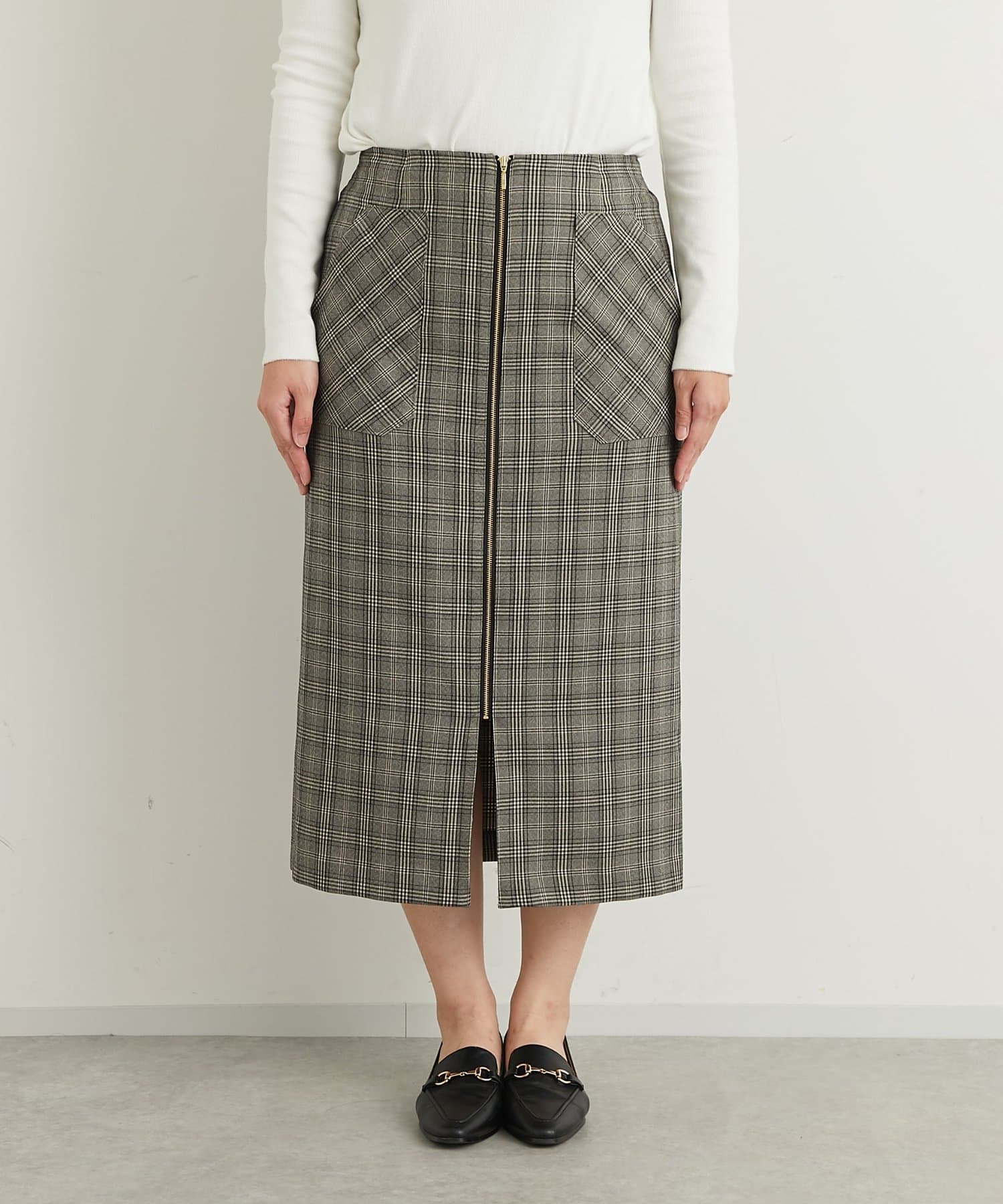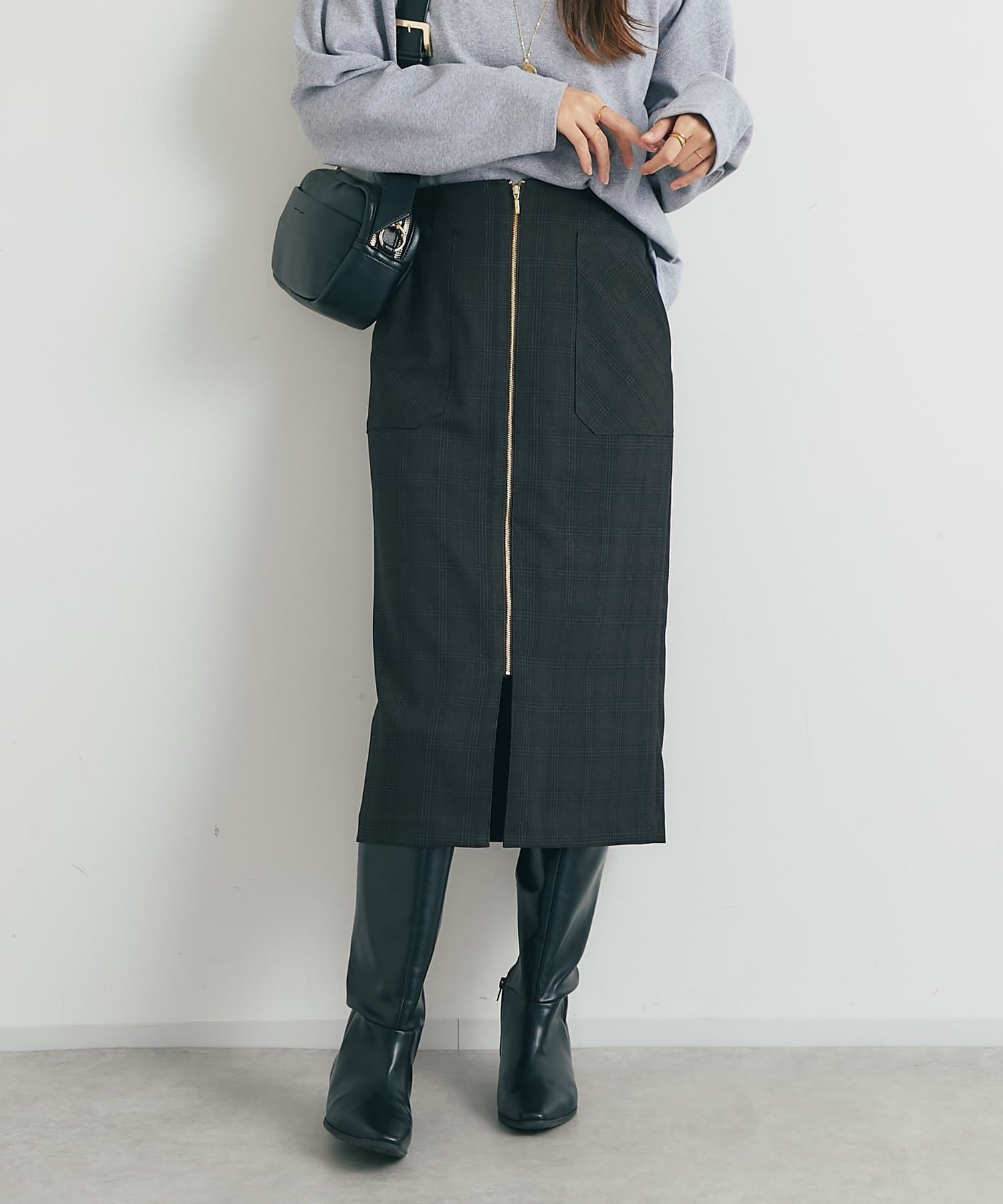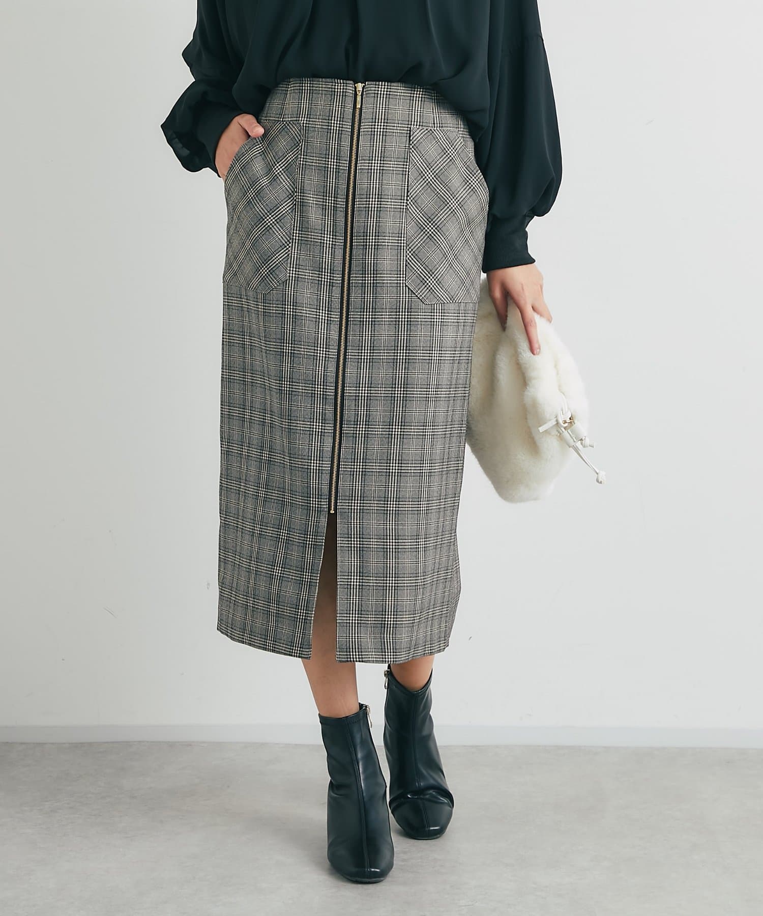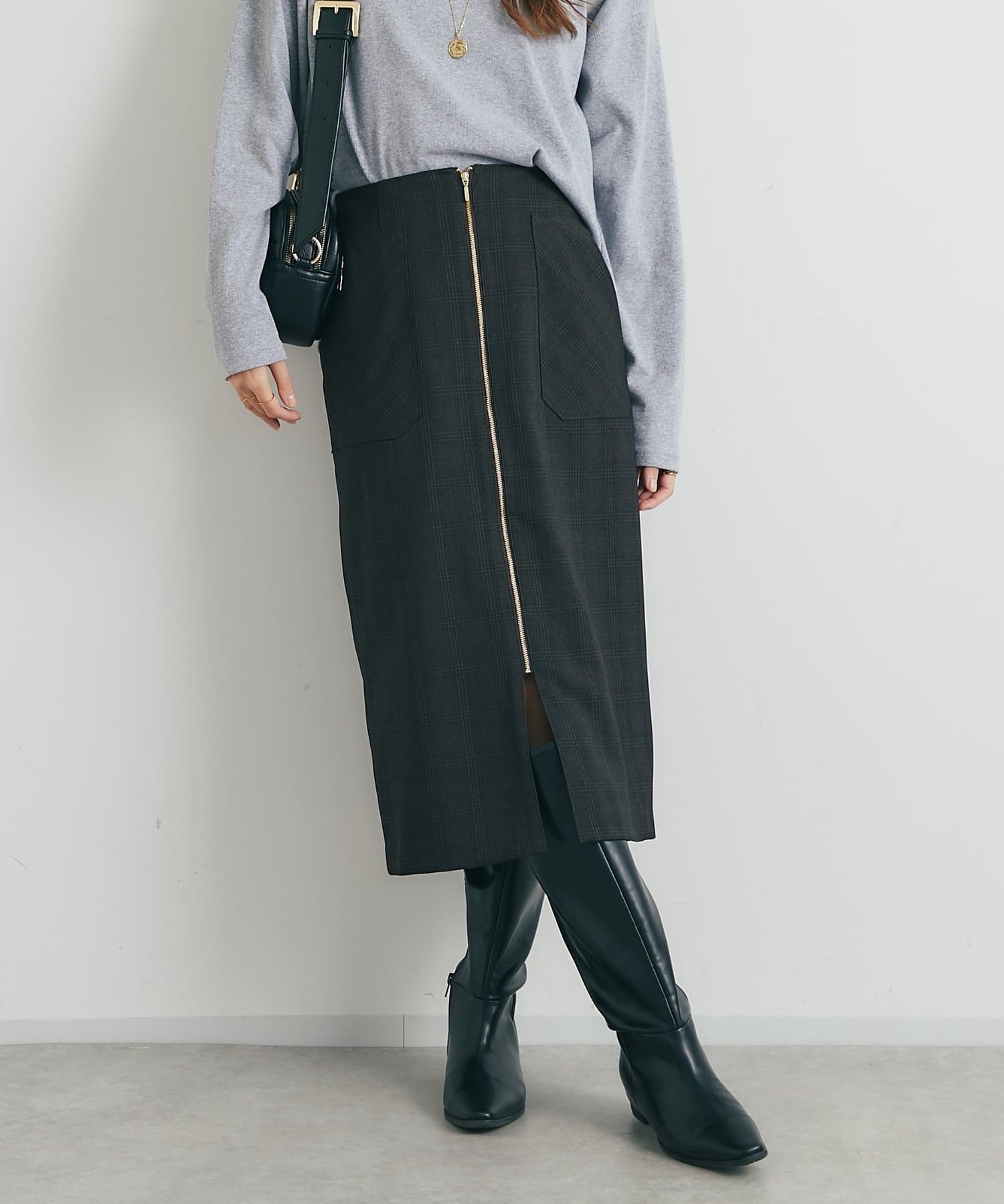 《トレンドライクに◎》フロントジップチェックナロースカート