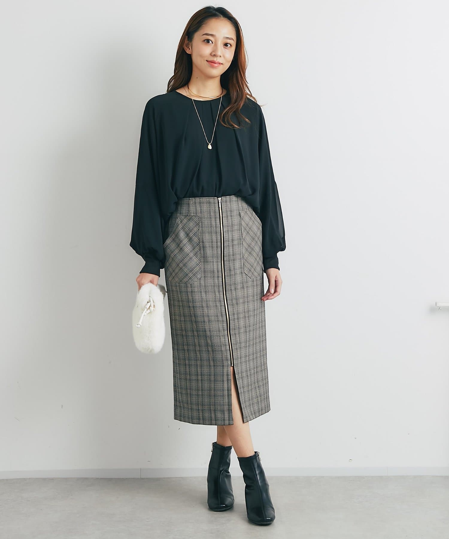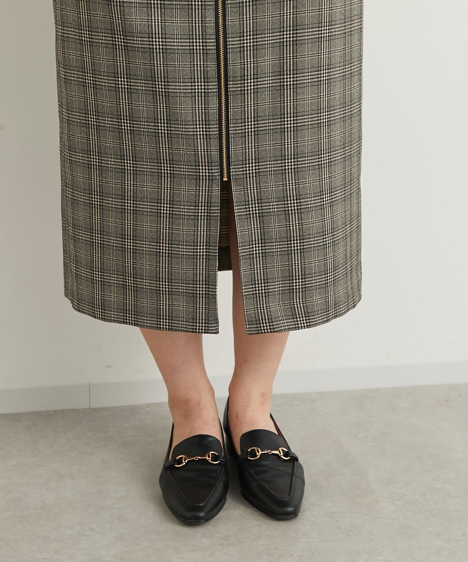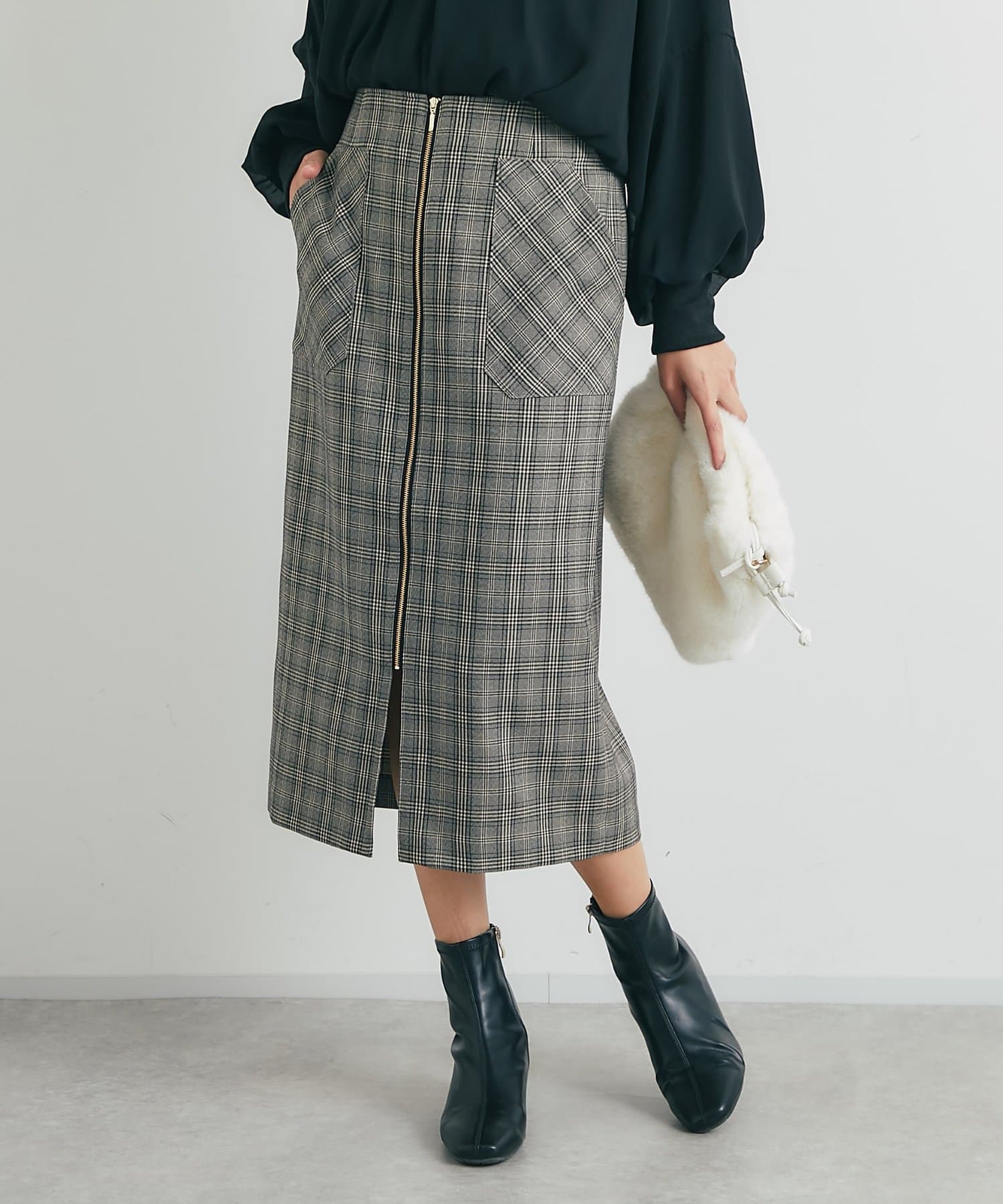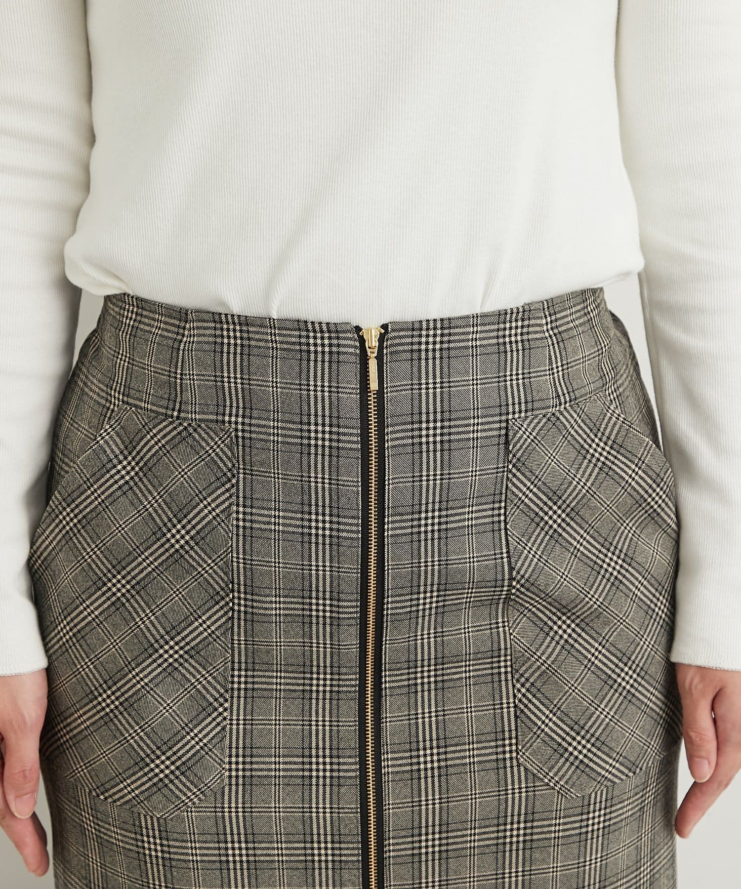 《トレンドライクに◎》フロントジップチェックナロースカート